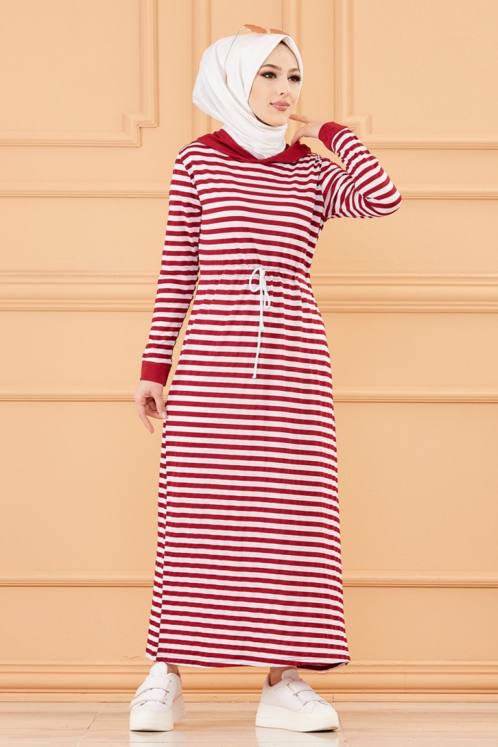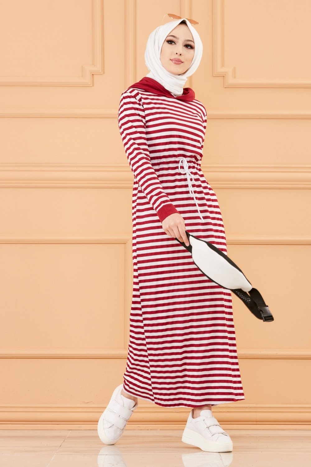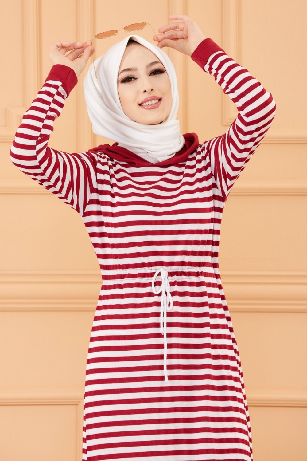 Robe à capuche et lien de serrage (Vêtement moderne pour femme voilée) - Couleur rayures bordeaux Vetement & Accessoire