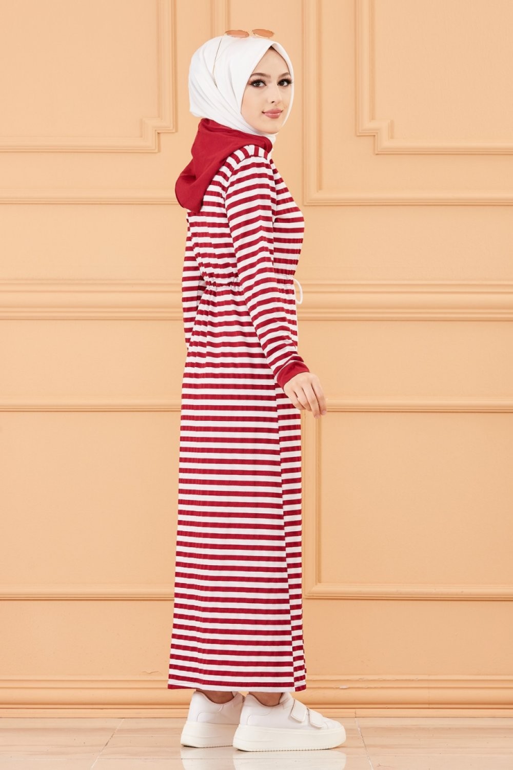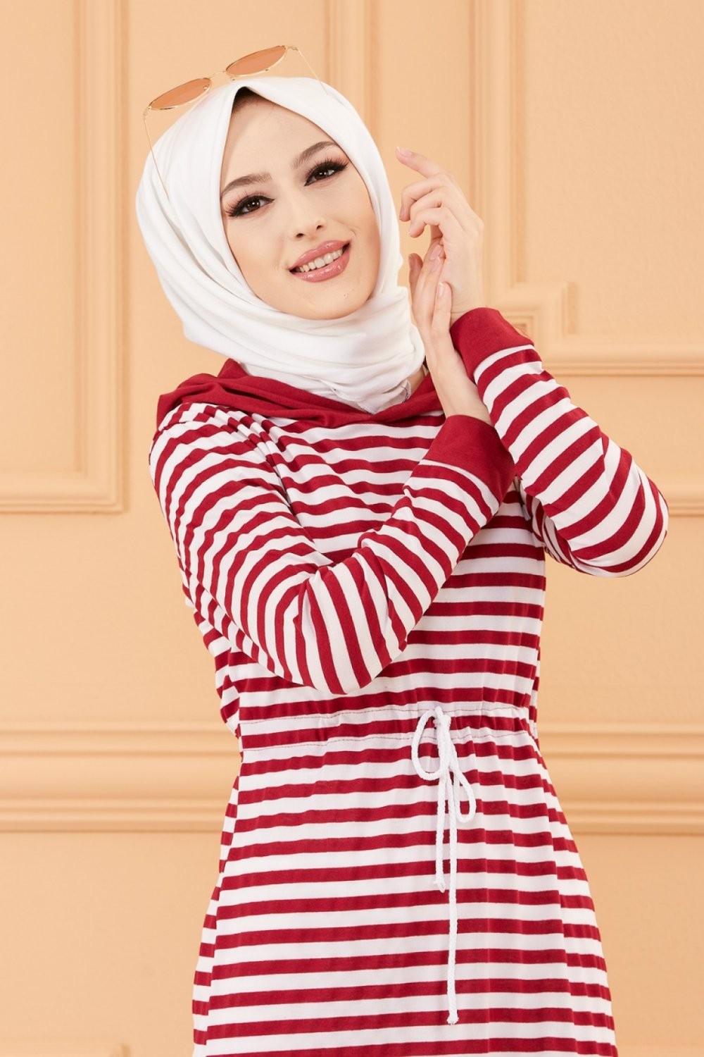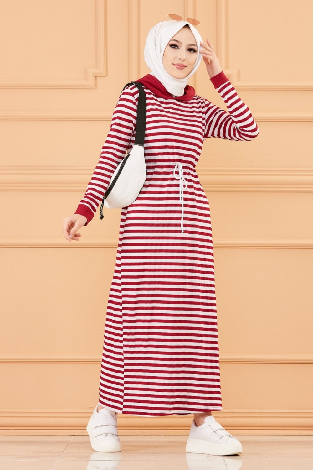 Robe à capuche et lien de serrage (Vêtement moderne pour femme voilée) - Couleur rayures bordeaux Vetement & Accessoire
