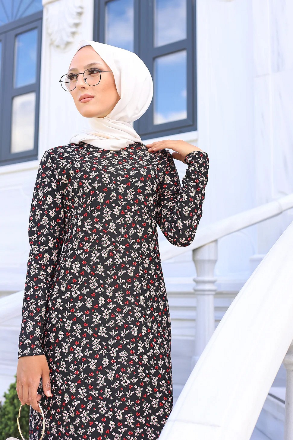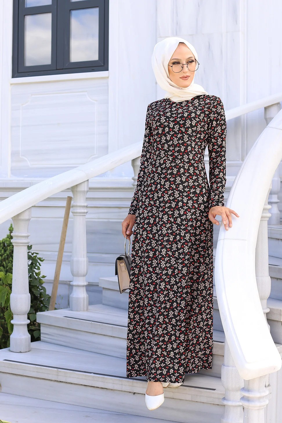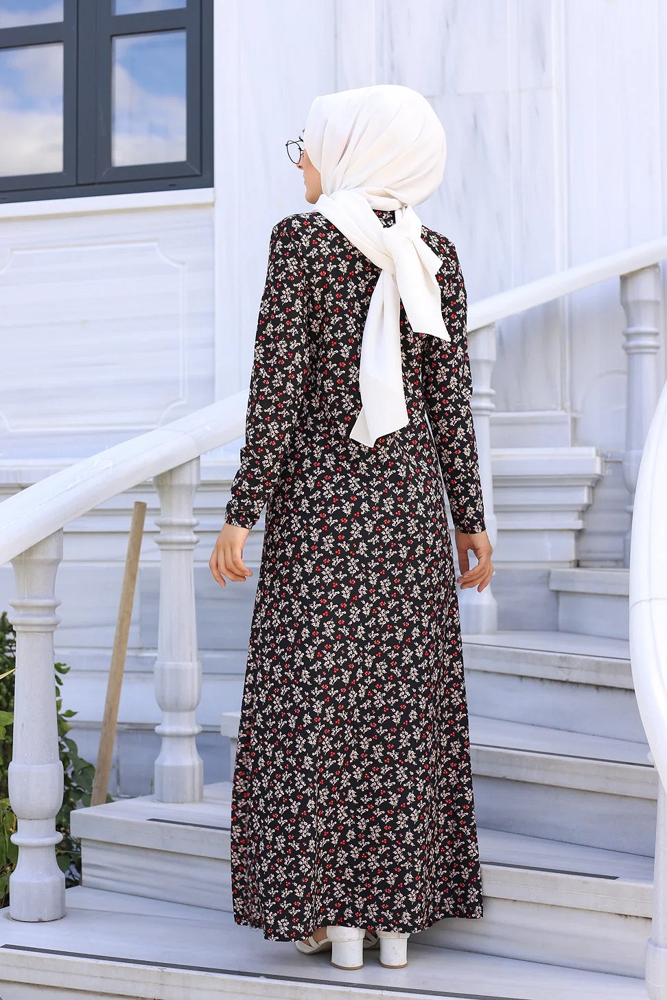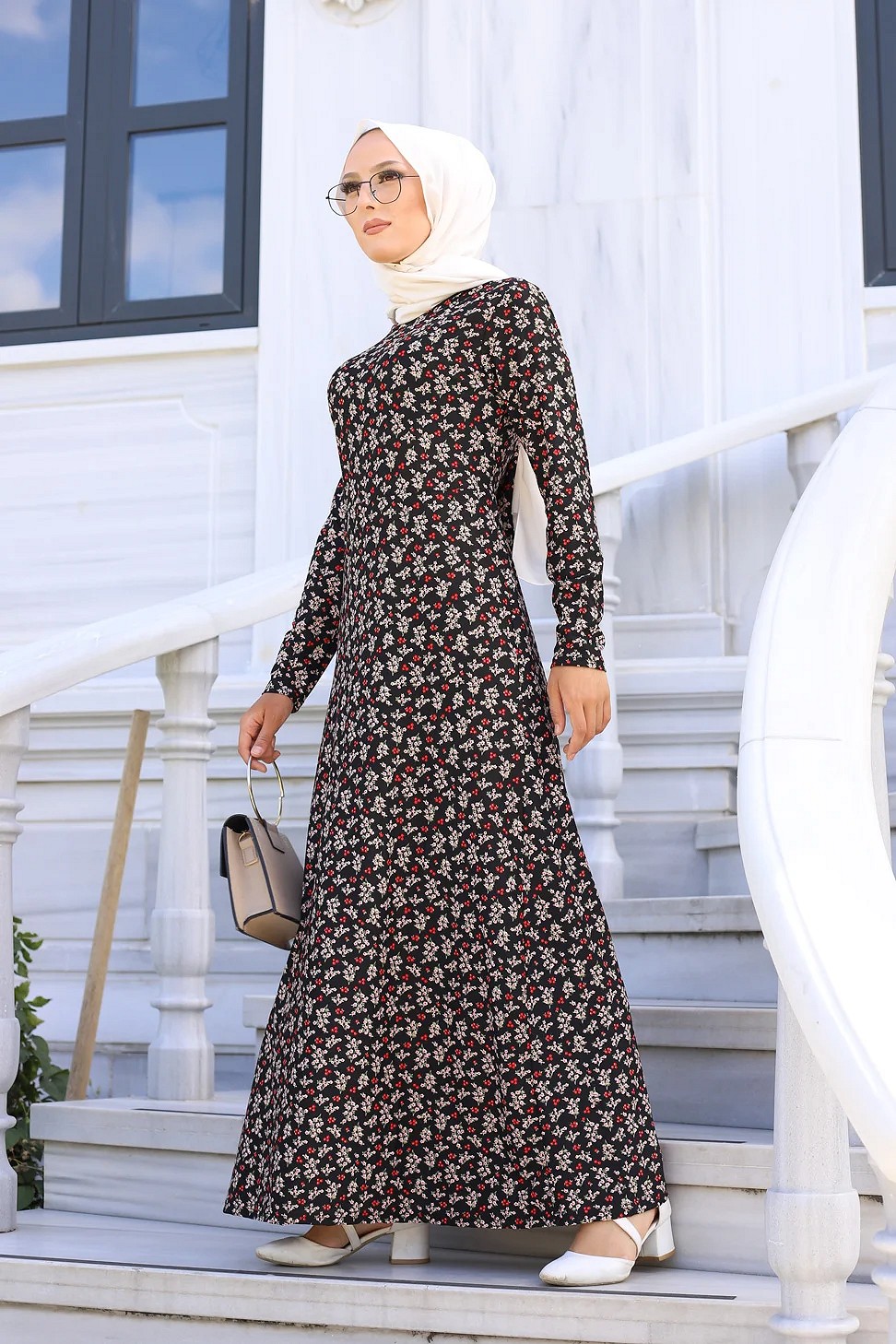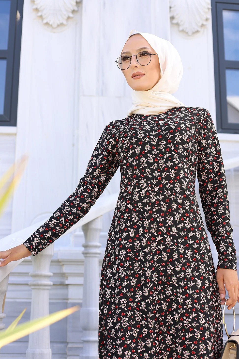 Robe à fleurs (motifs fleuris) - Vêtements pour femme voilée en ligne - Couleur noire Vetement & Accessoire