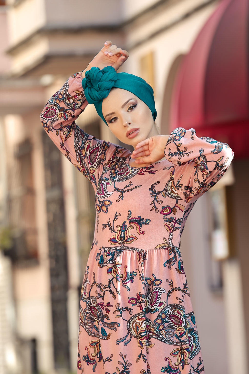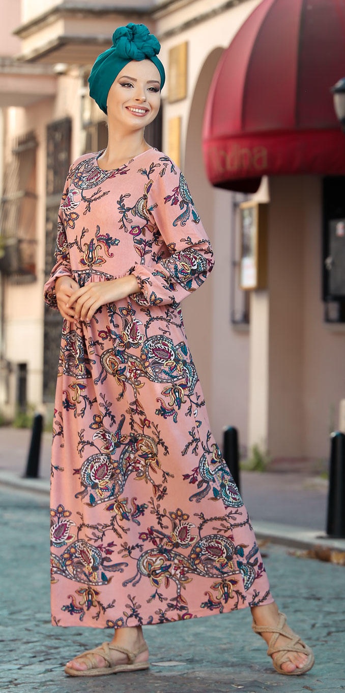 Robe a motifs cachemire couleur Rose (Vetement long et mastour pour femme)