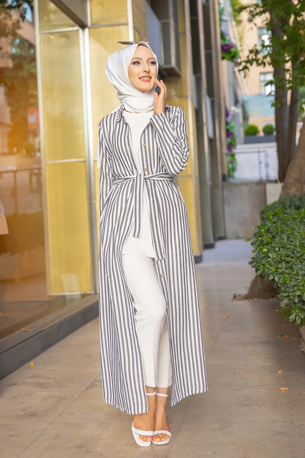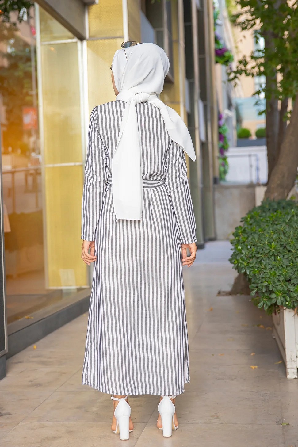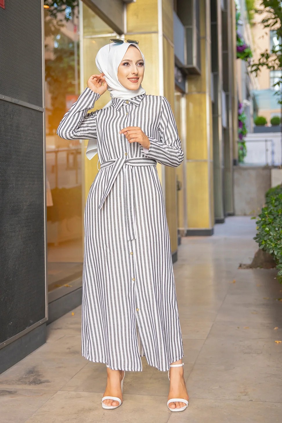 Robe chemise très longue boutonnée, coupe droit, avec un lien à nouer, col classique, manches longues, se porte avec légèreté. On aime son style chic décontracté. Tendance et flatteuse, cette version à rayures a tout pour nous plaire.