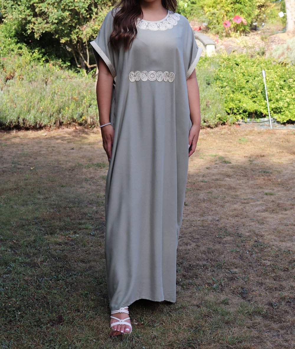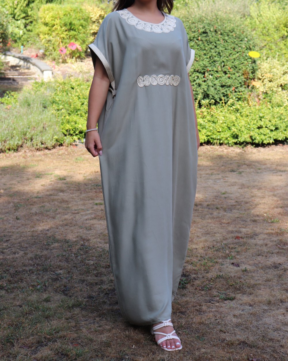 Coupe droite qui lui donne une allure chic. Broderies au niveau du col, des manches et du ventre. Couleur sobre qui donne le ton à la tenue.