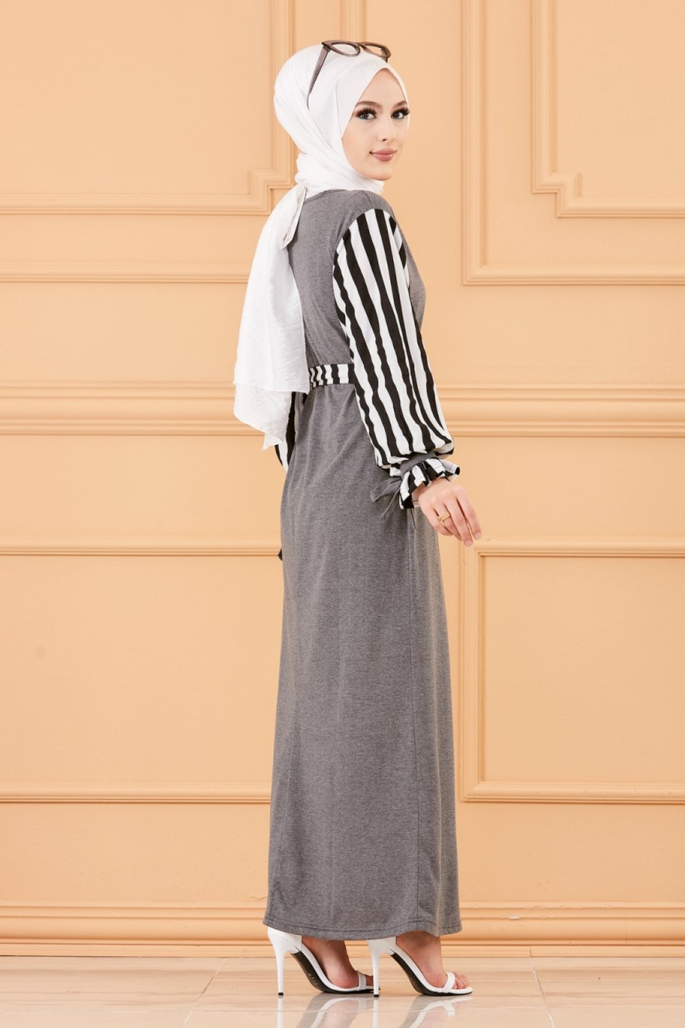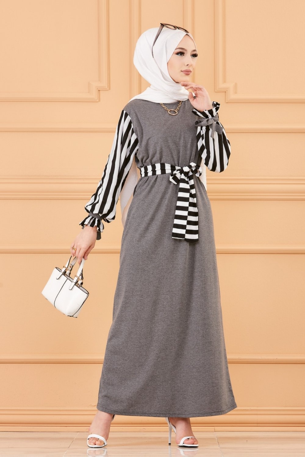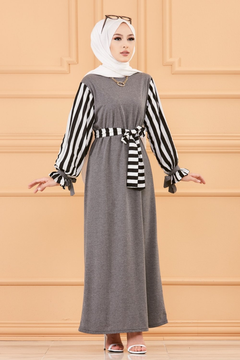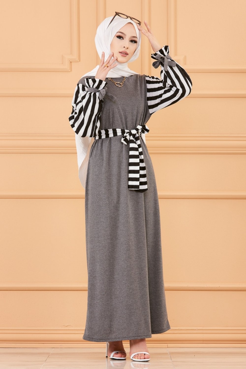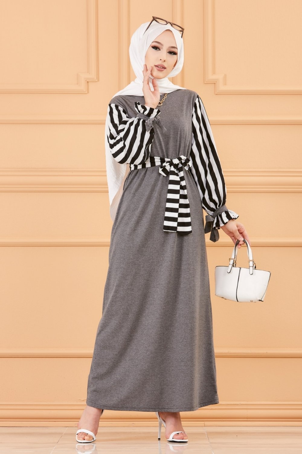 Robe longue ample style moderne avec un lien à la taille pour femme - Couleur gris - REF. 37684 (19.90 €)
