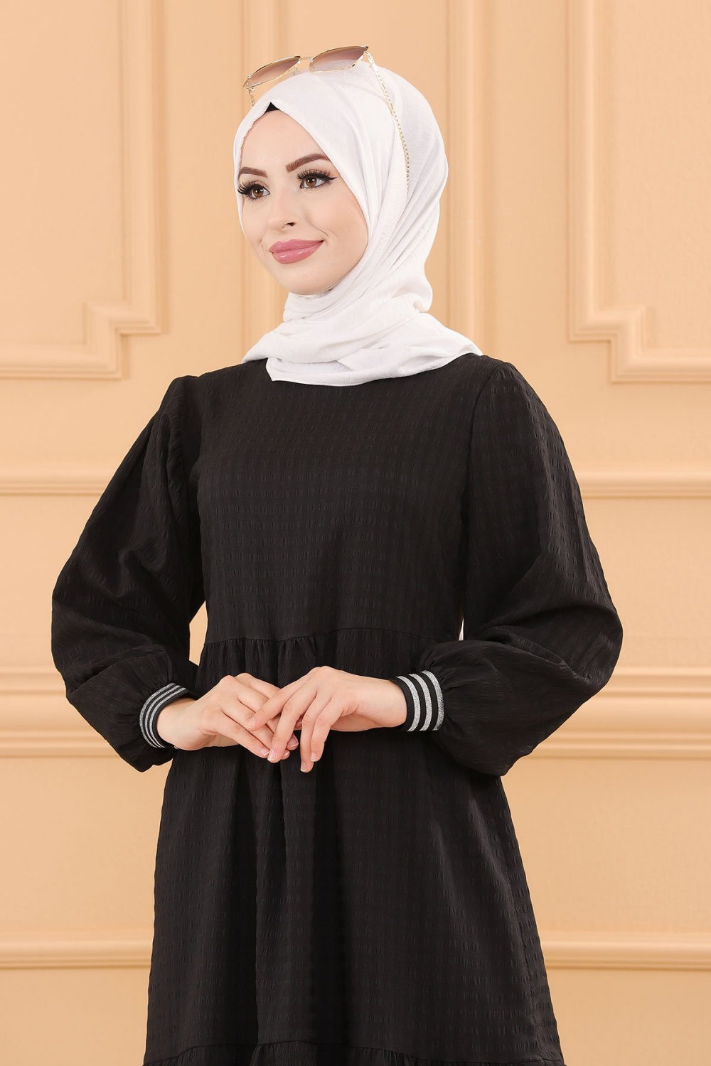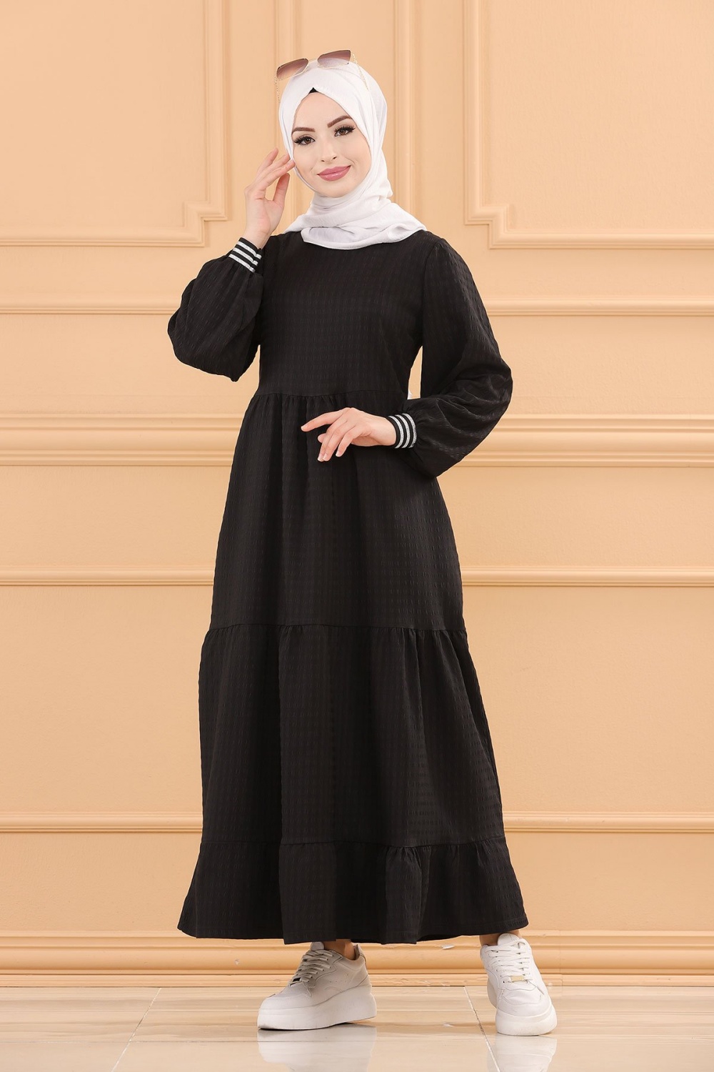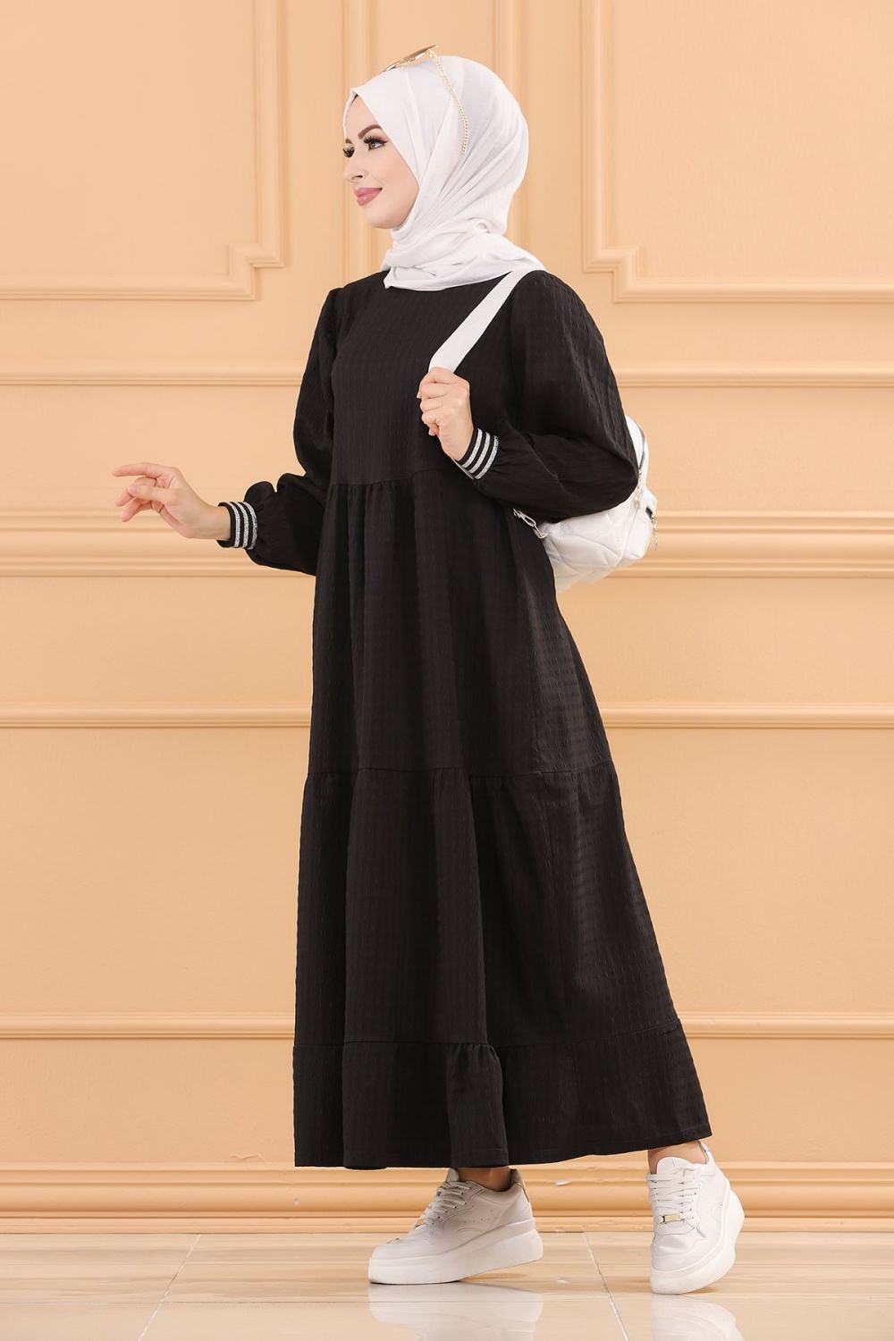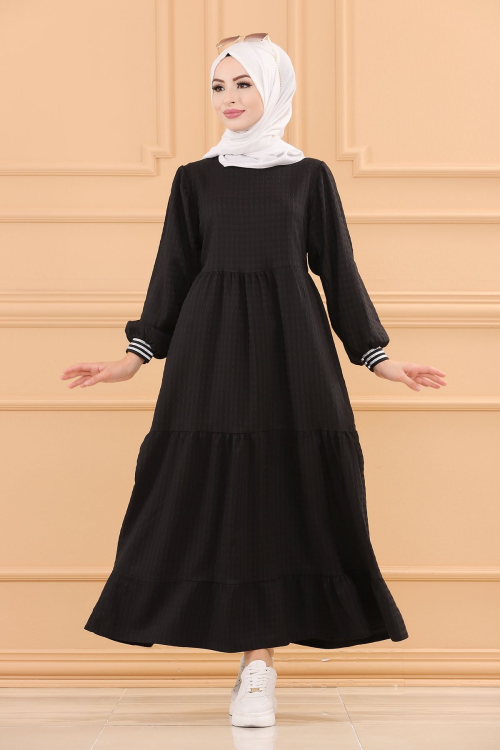 Robe casual longue ample et évasée (Vêtement hijab moderne) - Couleur noir Vetement & Accessoire