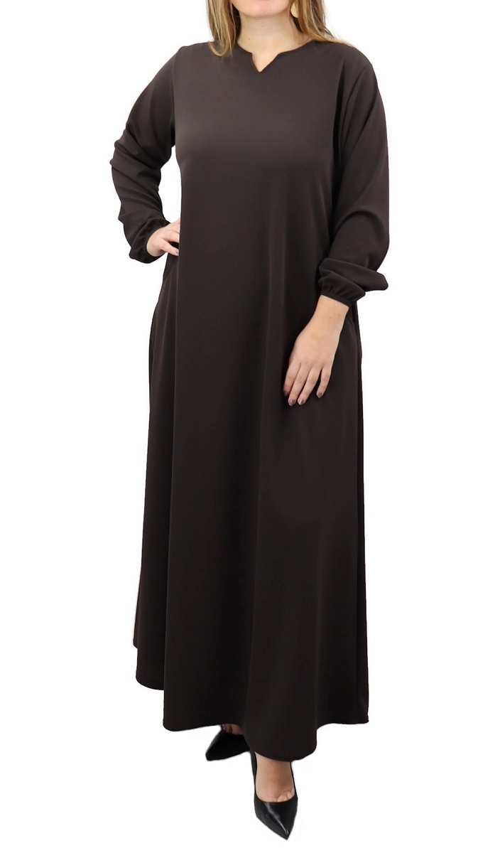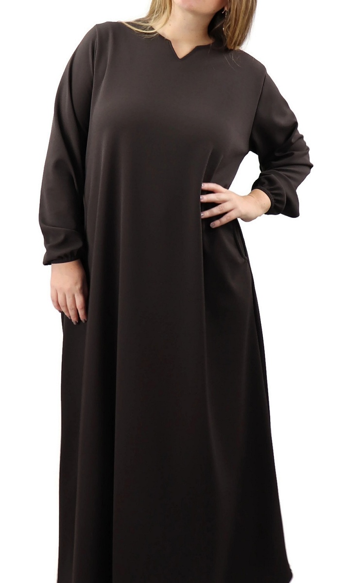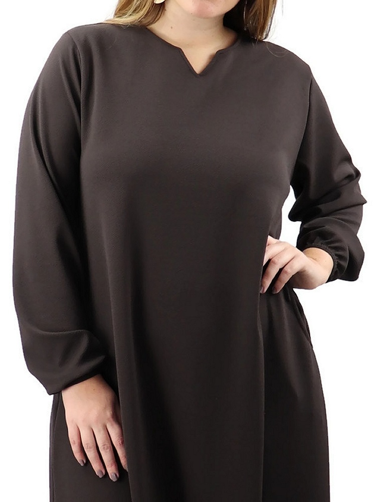 Robe casual longue evasee - Grande Taille - Couleur Marron fonce