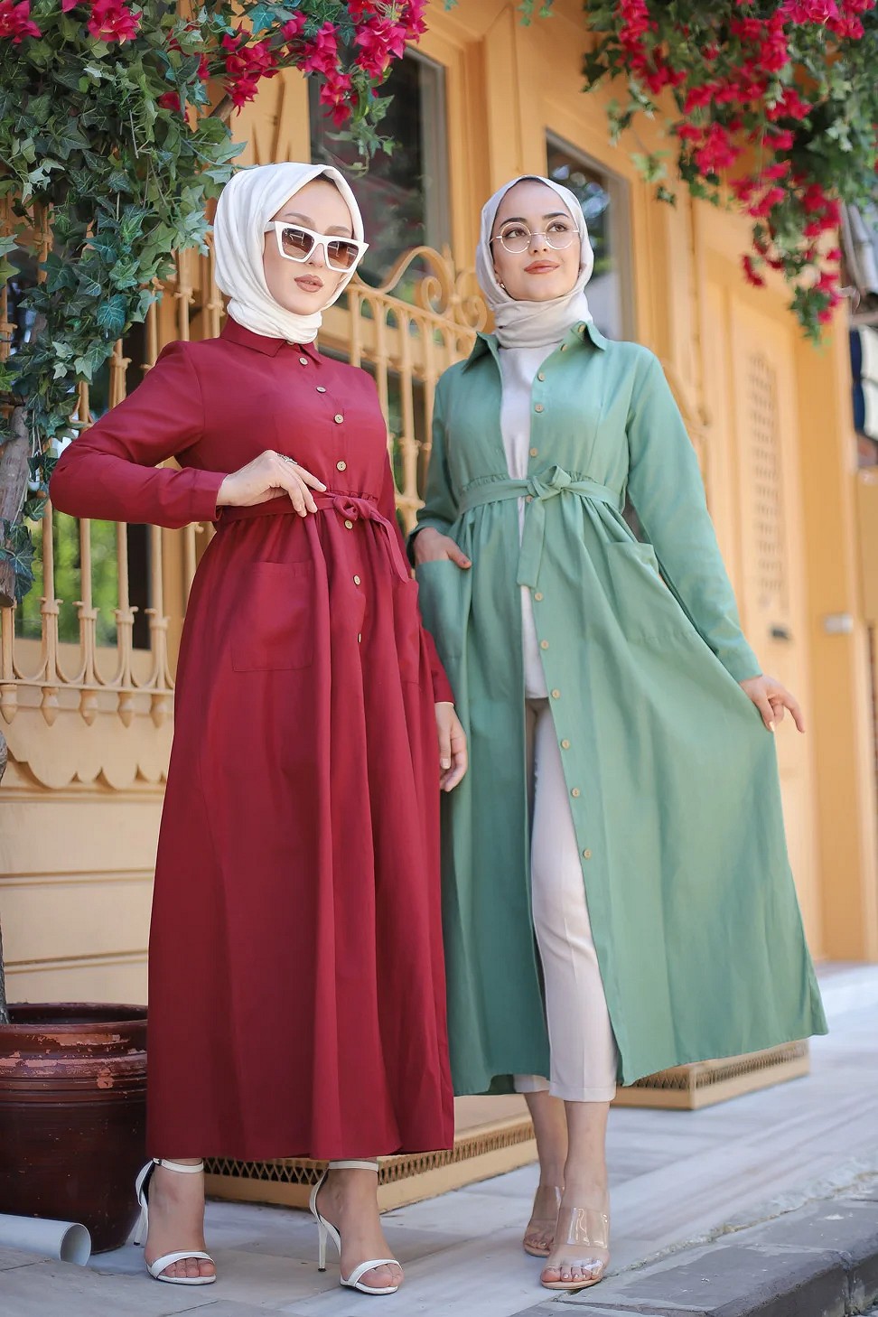 Veste longue classique boutonnée élégante (Tenue Hijab) - Couleur menthe - REF. 33251 (24.90 €)