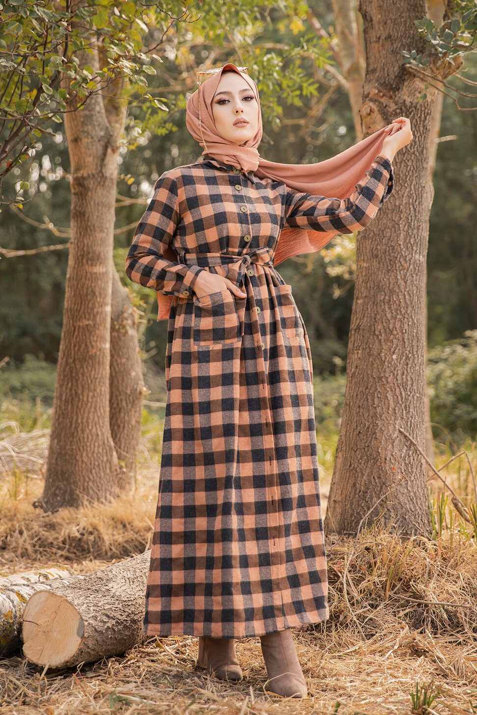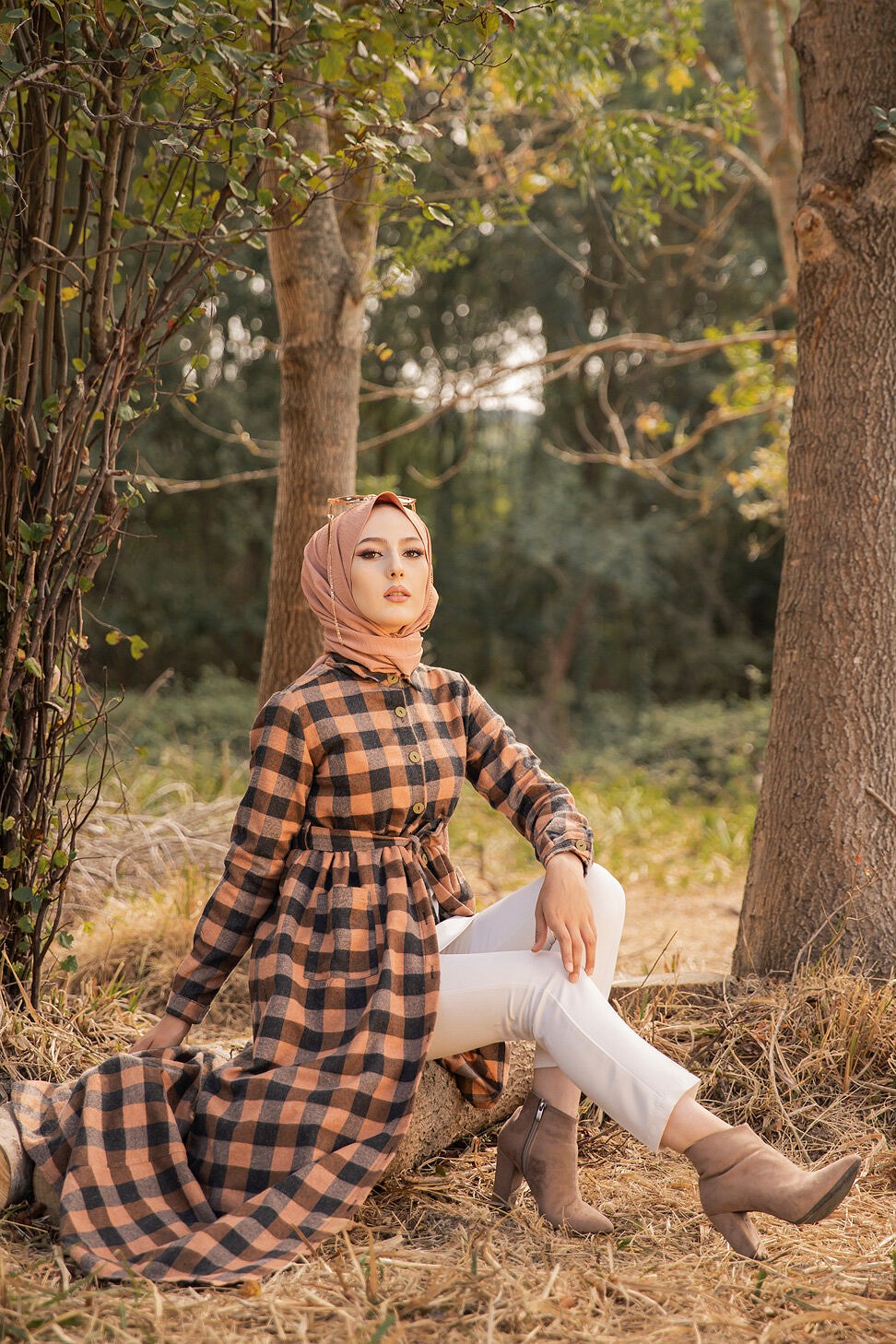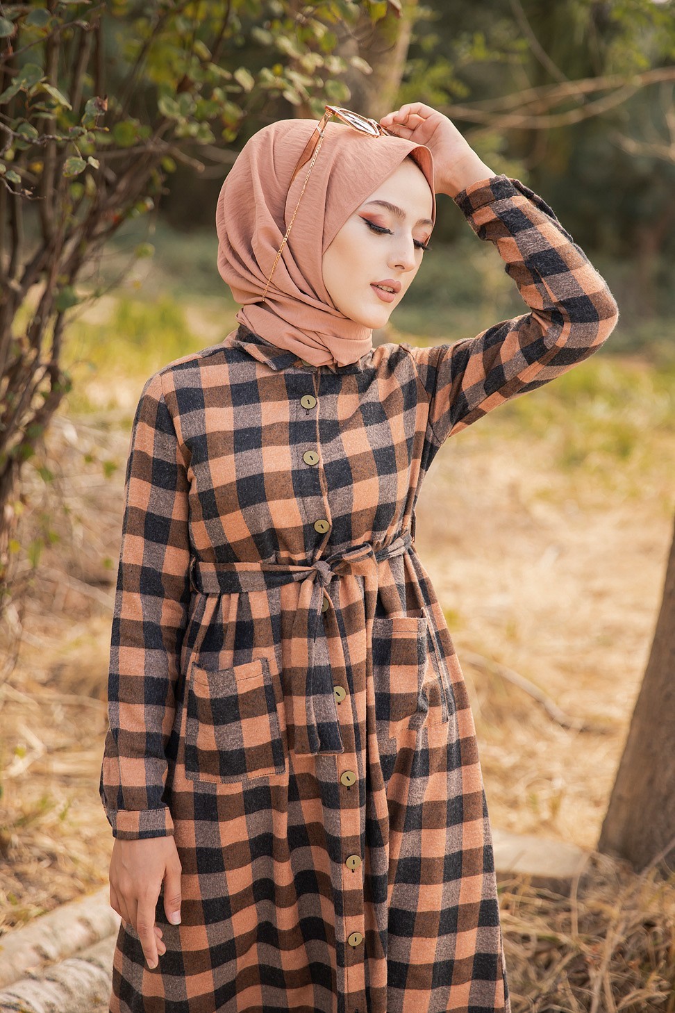 Robe longue, col chemise, manches droites finition bouton, taille cintrée, ceinture assortie à passants, 2 poches plaquées, fermeture sur toute la longueur a boutons. Optez pour cette robe originale et ses carreaux indémodables. Son tissu doux et chaud conviendra parfaitement pour la saison automne hiver.