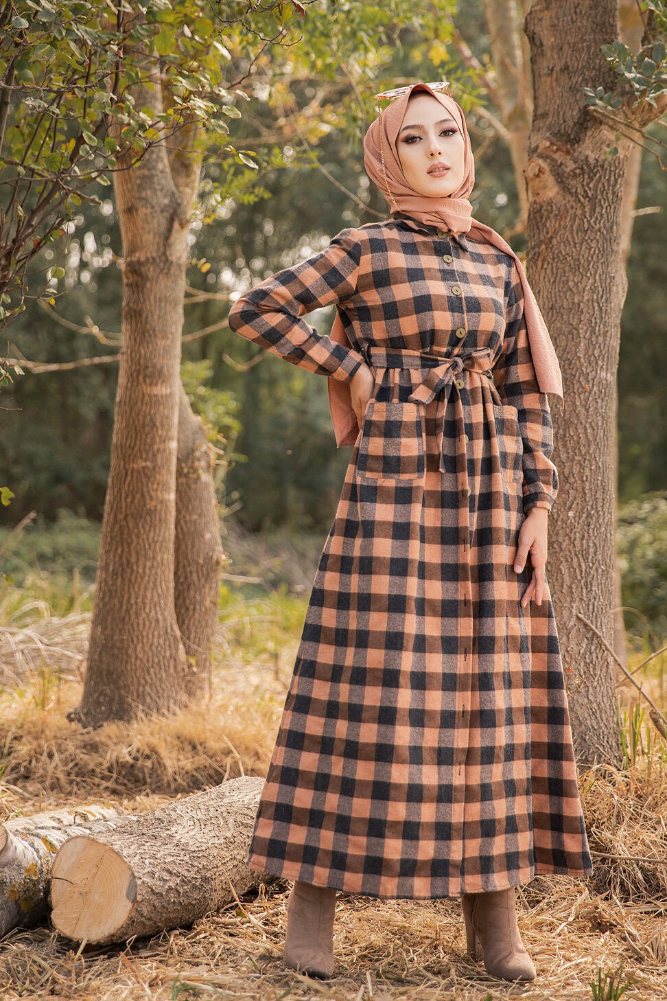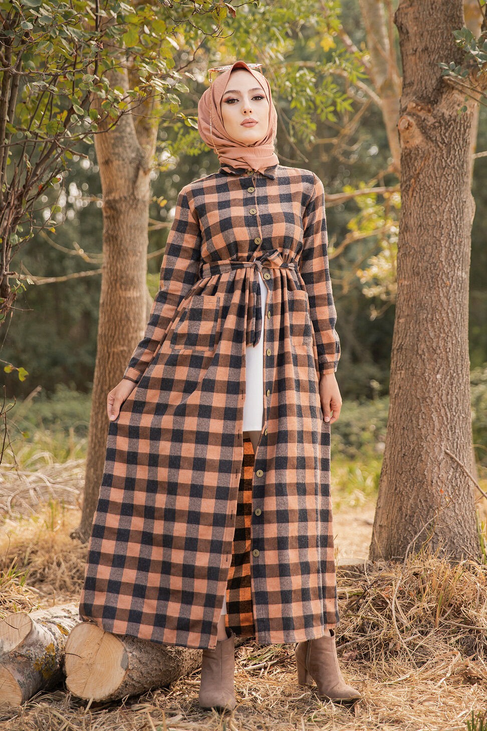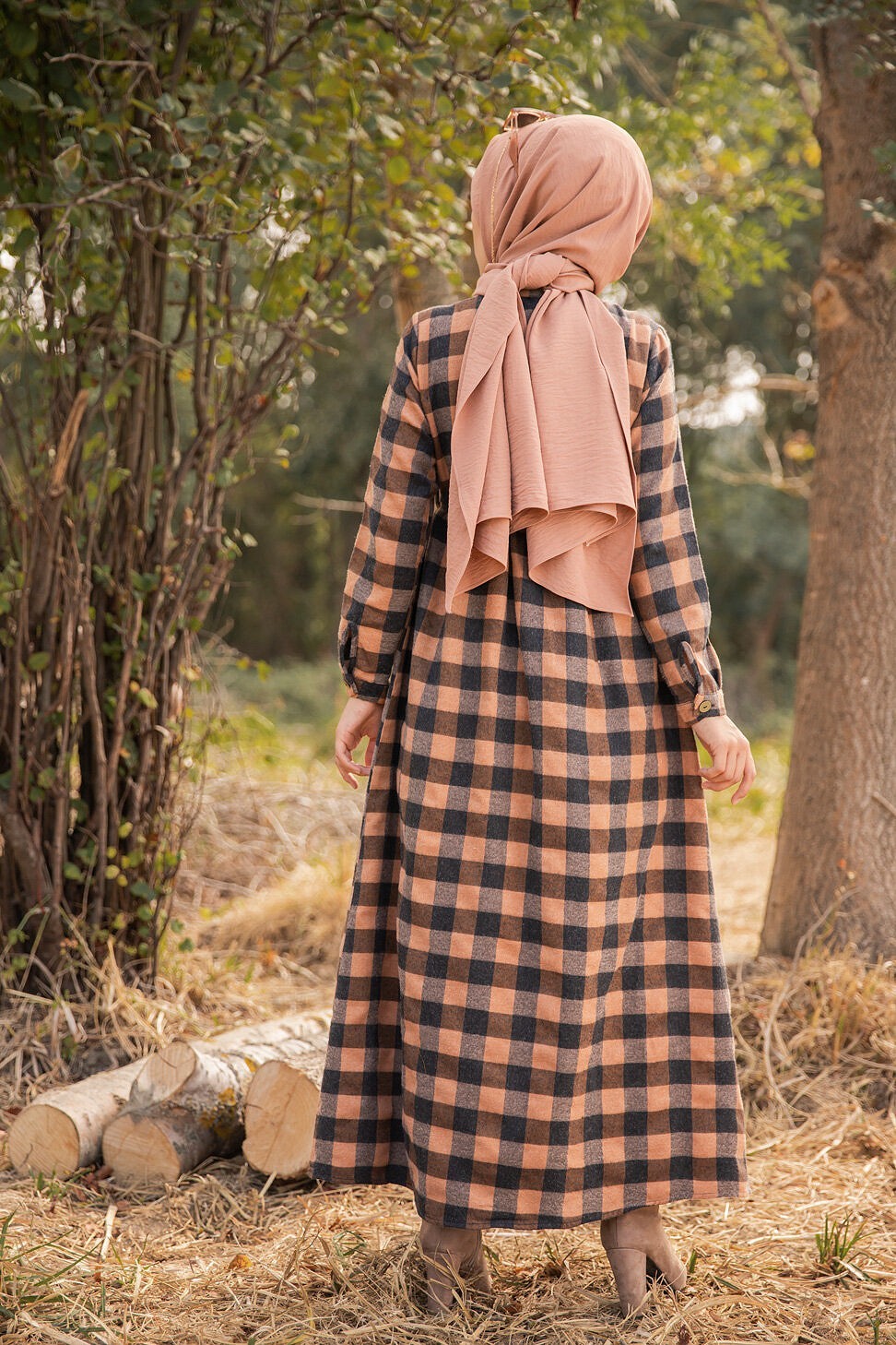 Robe longue, col chemise, manches droites finition bouton, taille cintrée, ceinture assortie à passants, 2 poches plaquées, fermeture sur toute la longueur a boutons. Optez pour cette robe originale et ses carreaux indémodables. Son tissu doux et chaud conviendra parfaitement pour la saison automne hiver.