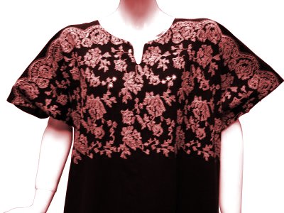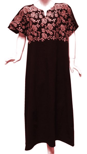 Robe d'intérieur couleur marron foncé, manches courtes, devant et dos brodés. Tissu doux très agréable à porter. Fabrication syrienne. Taille Standard du M au XL. Composition : 65% coton et 35% polyester.
