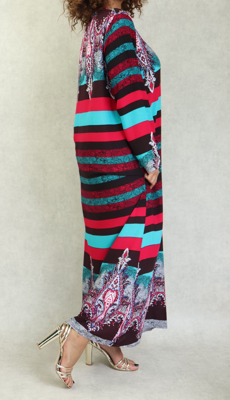 Robe maxi-longue avec motif moderne - Couleur prune - REF. 36645 (24.90 €)