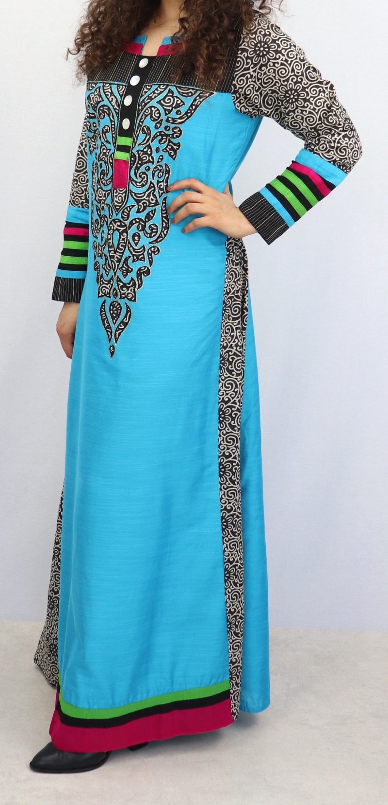 Robe de soiree bleue et noire - Robe orientale maxi-longue pour femme