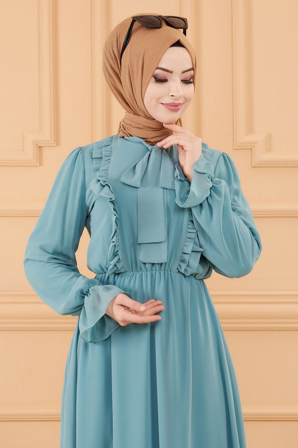 Robe de soiree chic pour femme (Tenue style habille pour hijab) - Couleur indigo clair