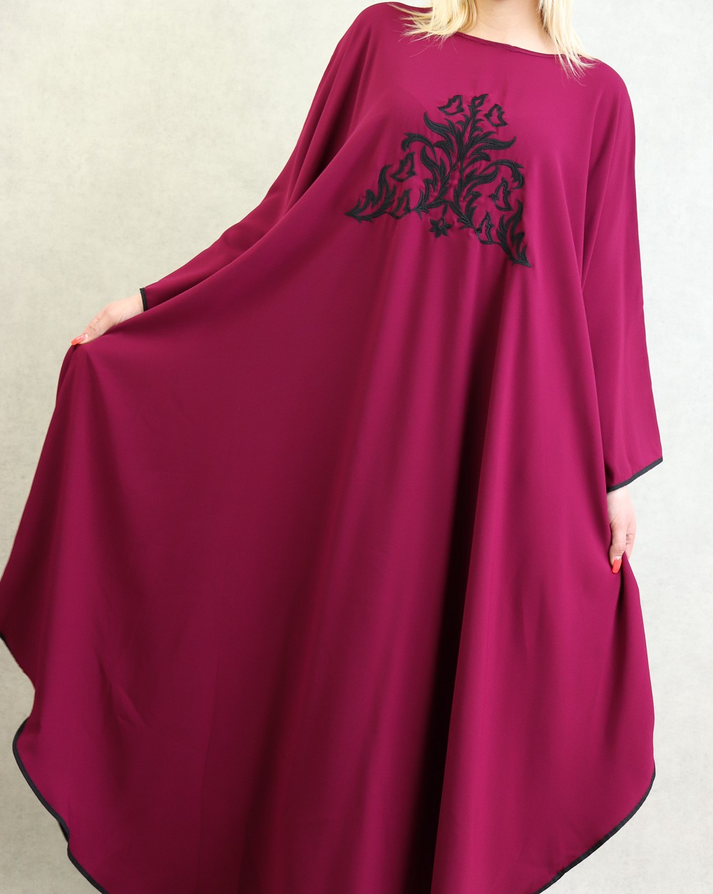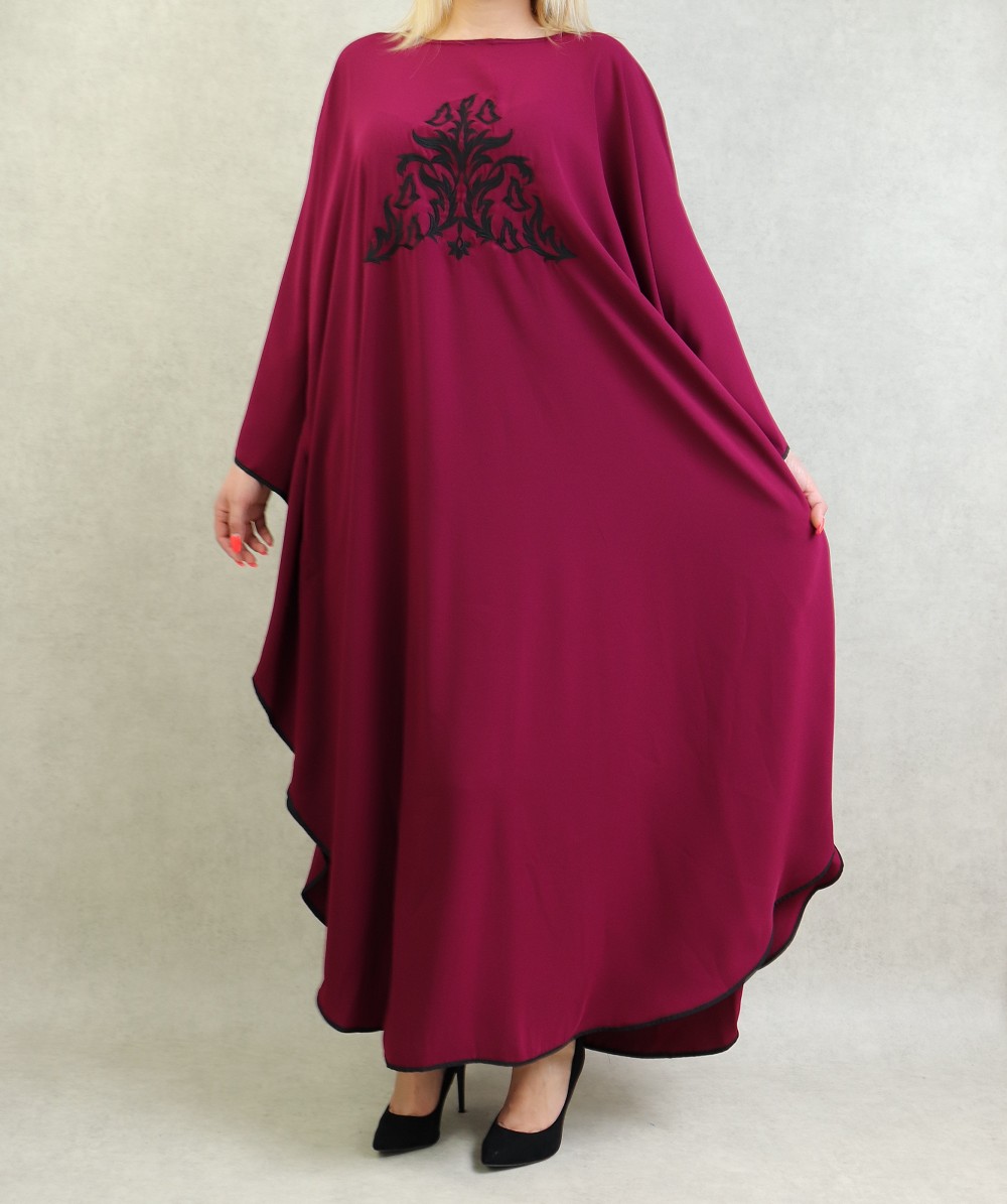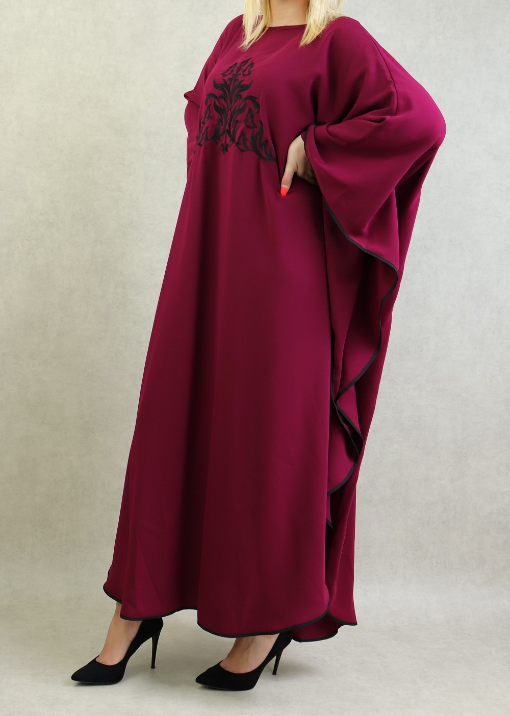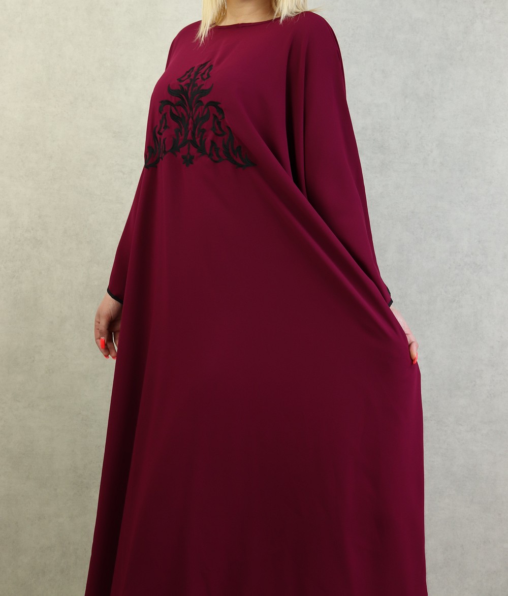 Robe en coton ample et évasée devant et dos brodés pour femme (Vêtement mastour et habillé pour hijab) - Couleur bordeaux - REF. 36668 (39.90 €)