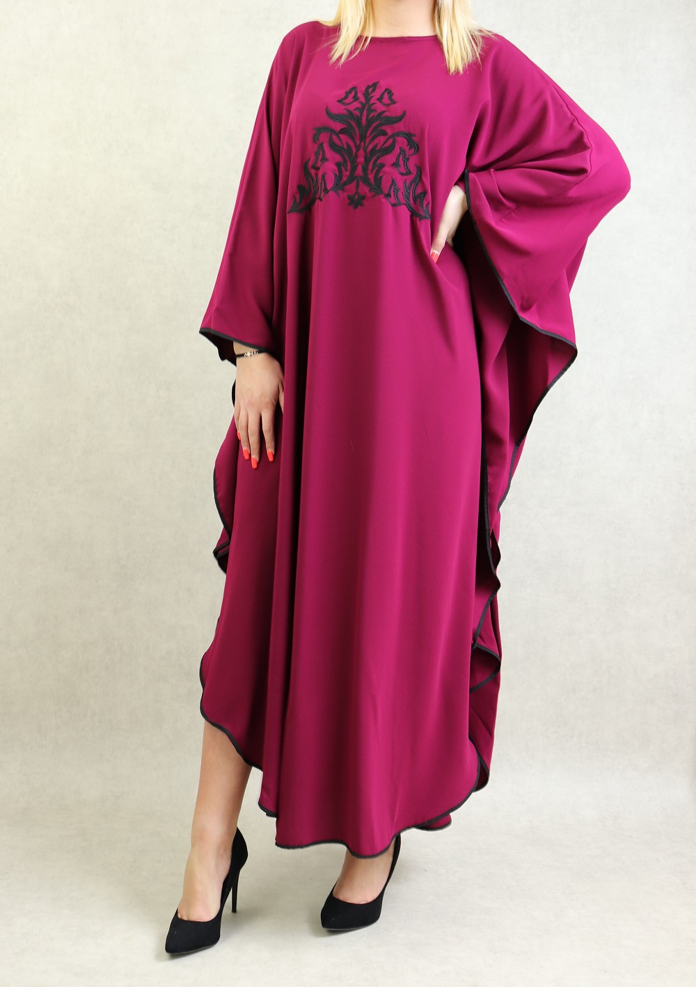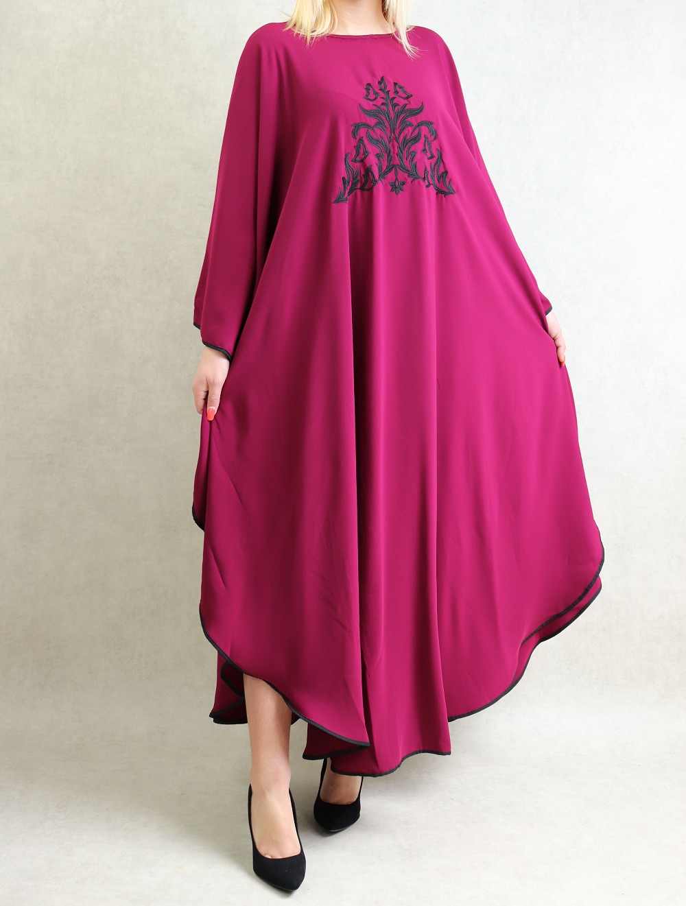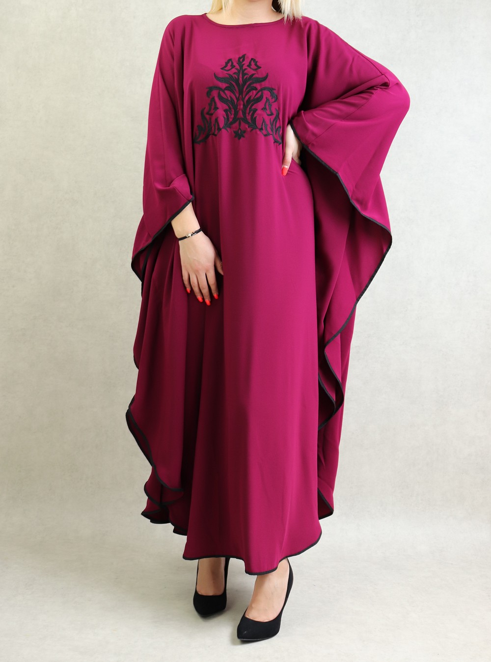 Robe en coton ample et évasée devant et dos brodés pour femme (Vêtement mastour et habillé pour hijab) - Couleur bordeaux - REF. 36668 (39.90 €)