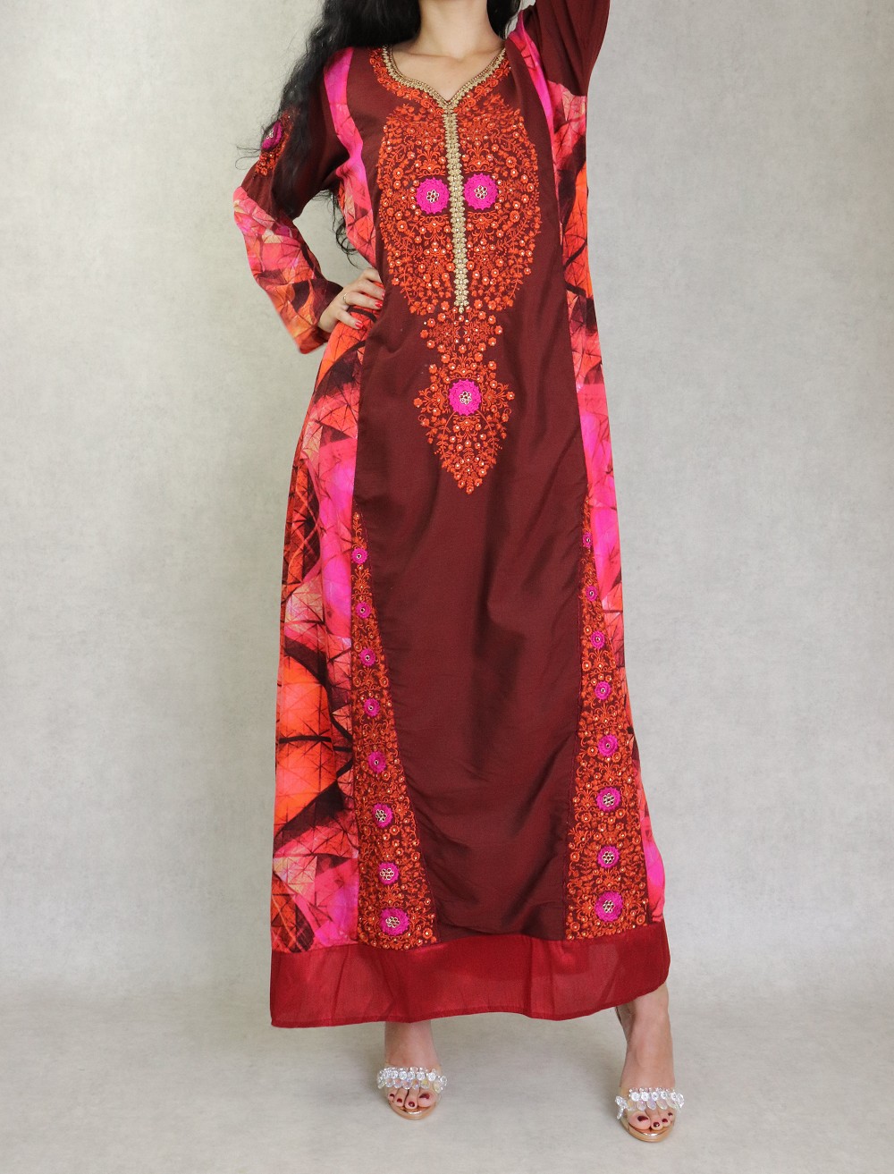 Robe de soiree longue pour femme avec broderies style oriental