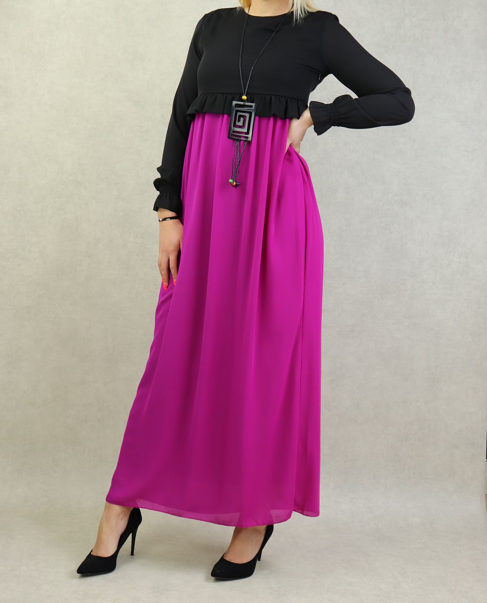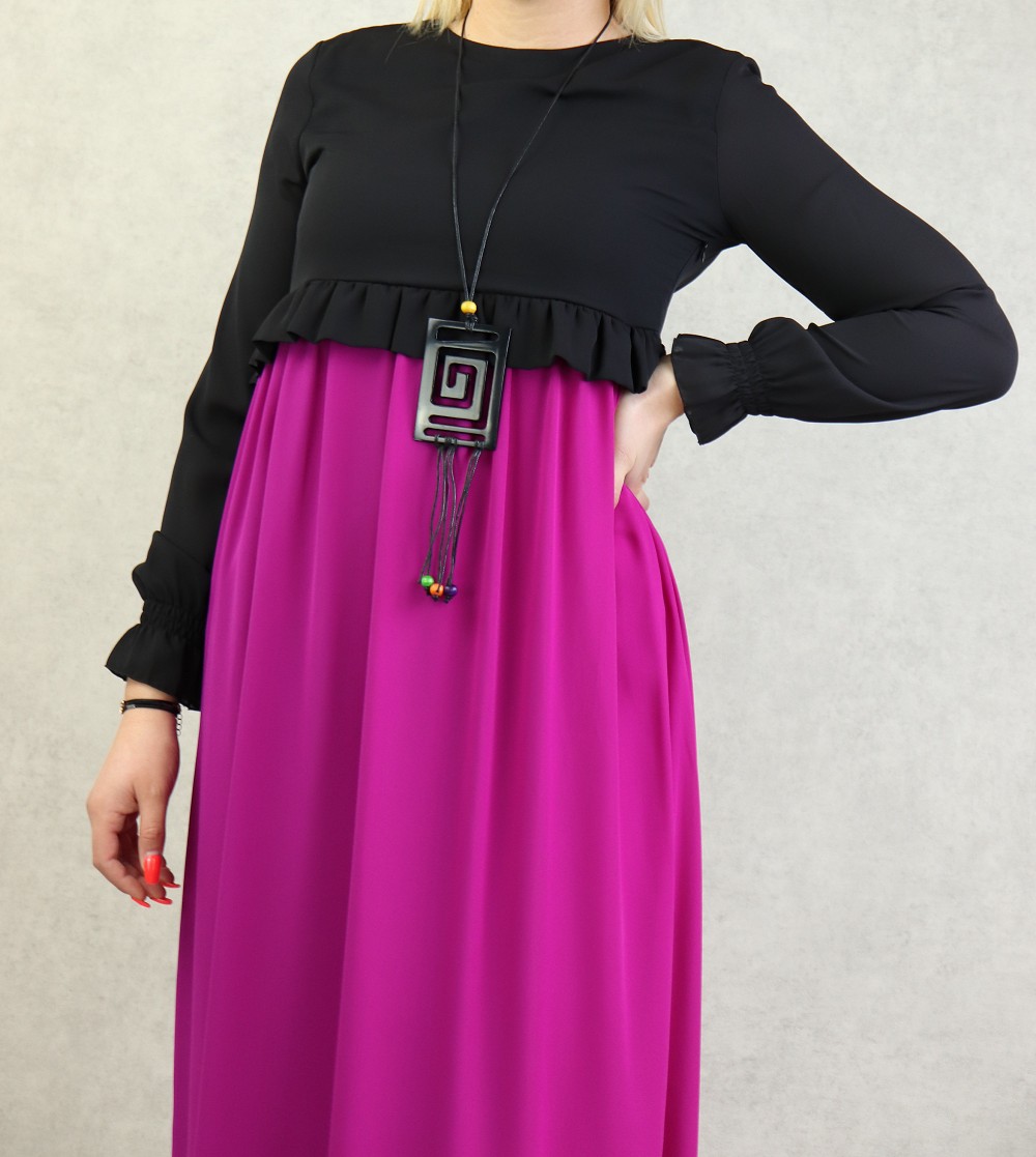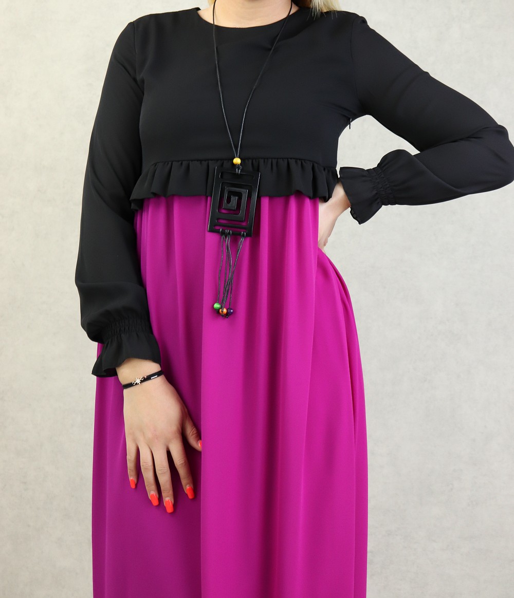 Robe de soiree maxi-longue bicolore assortie d'un collier pour femme - Couleur Noir et Violet
