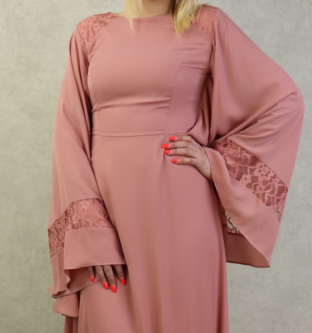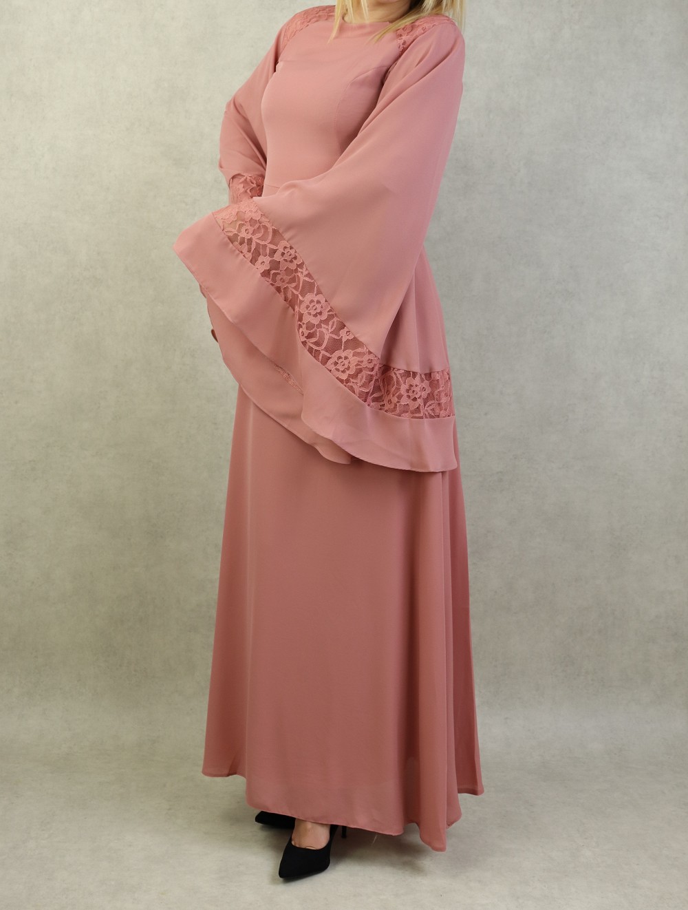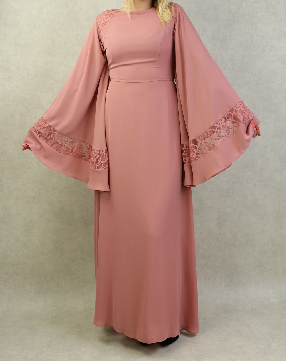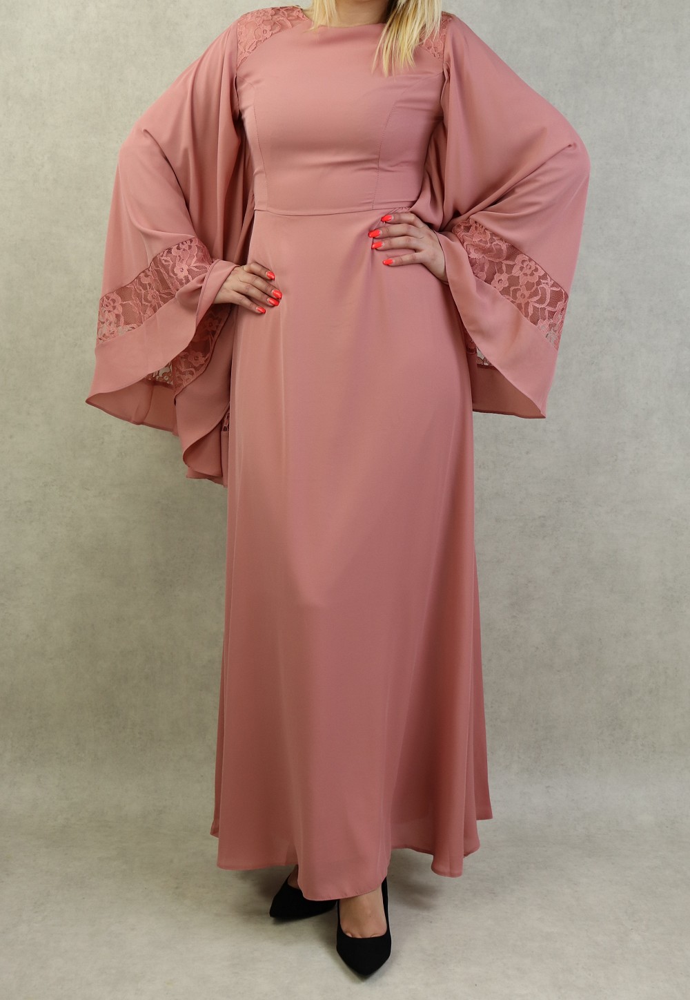 Robe de soirée maxi-longue élégante et raffinée manches kimono pour femme - Couleur Rose Vetement & Accessoire