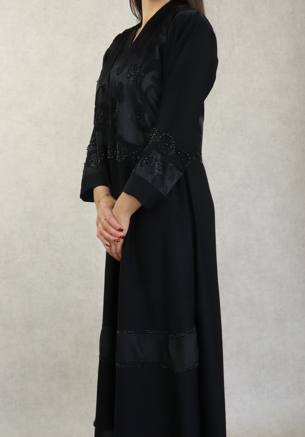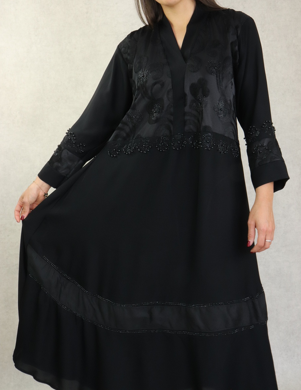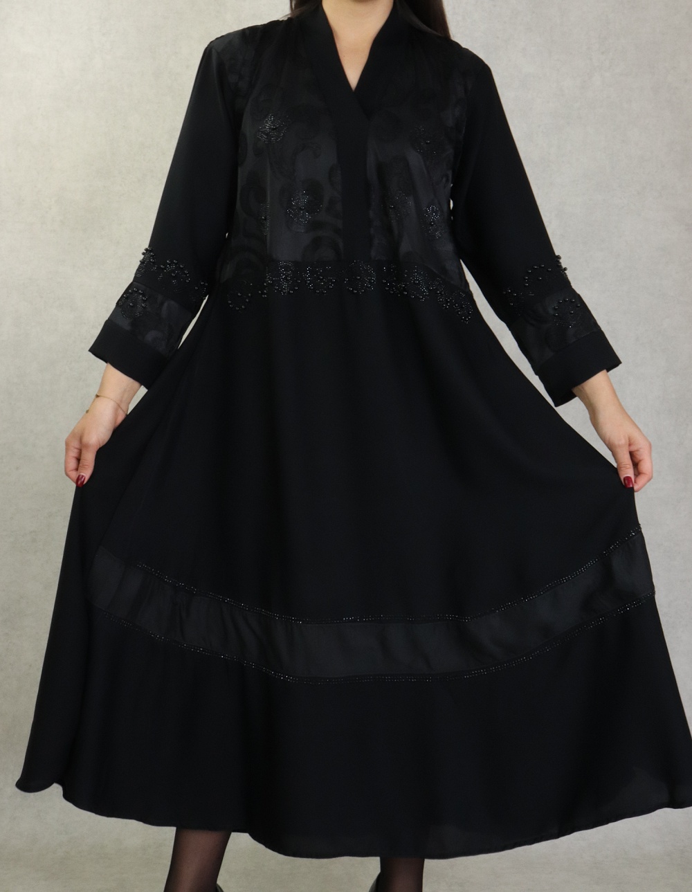Robe Abaya Dubaï noire de qualité avec nombreuses perles noires et strass - REF. 38118 (45.00 €)