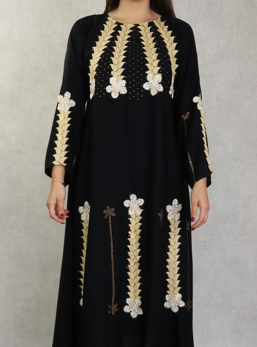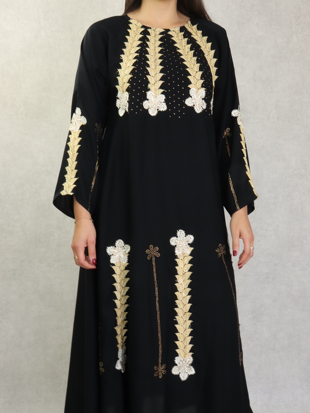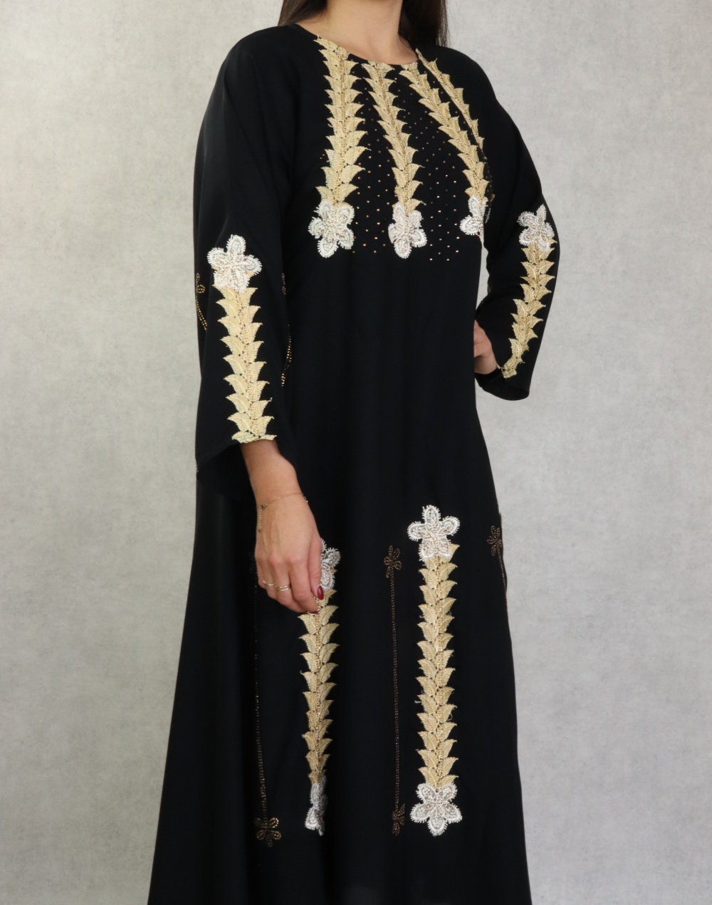 Robe Abaya Dubaï noire de qualité avec motifs strass dorés - REF. 38120 (45.00 €)
