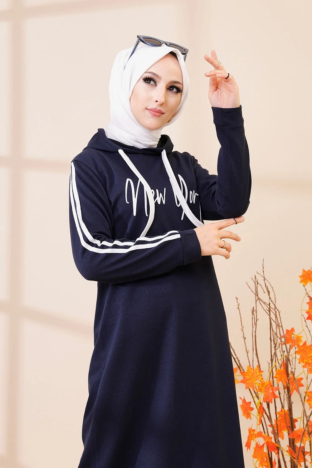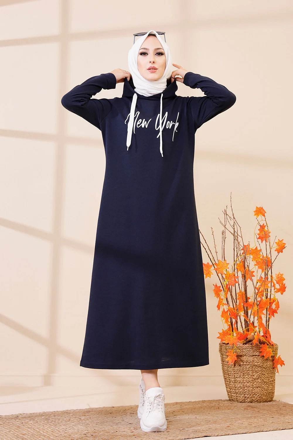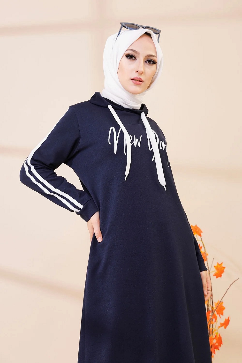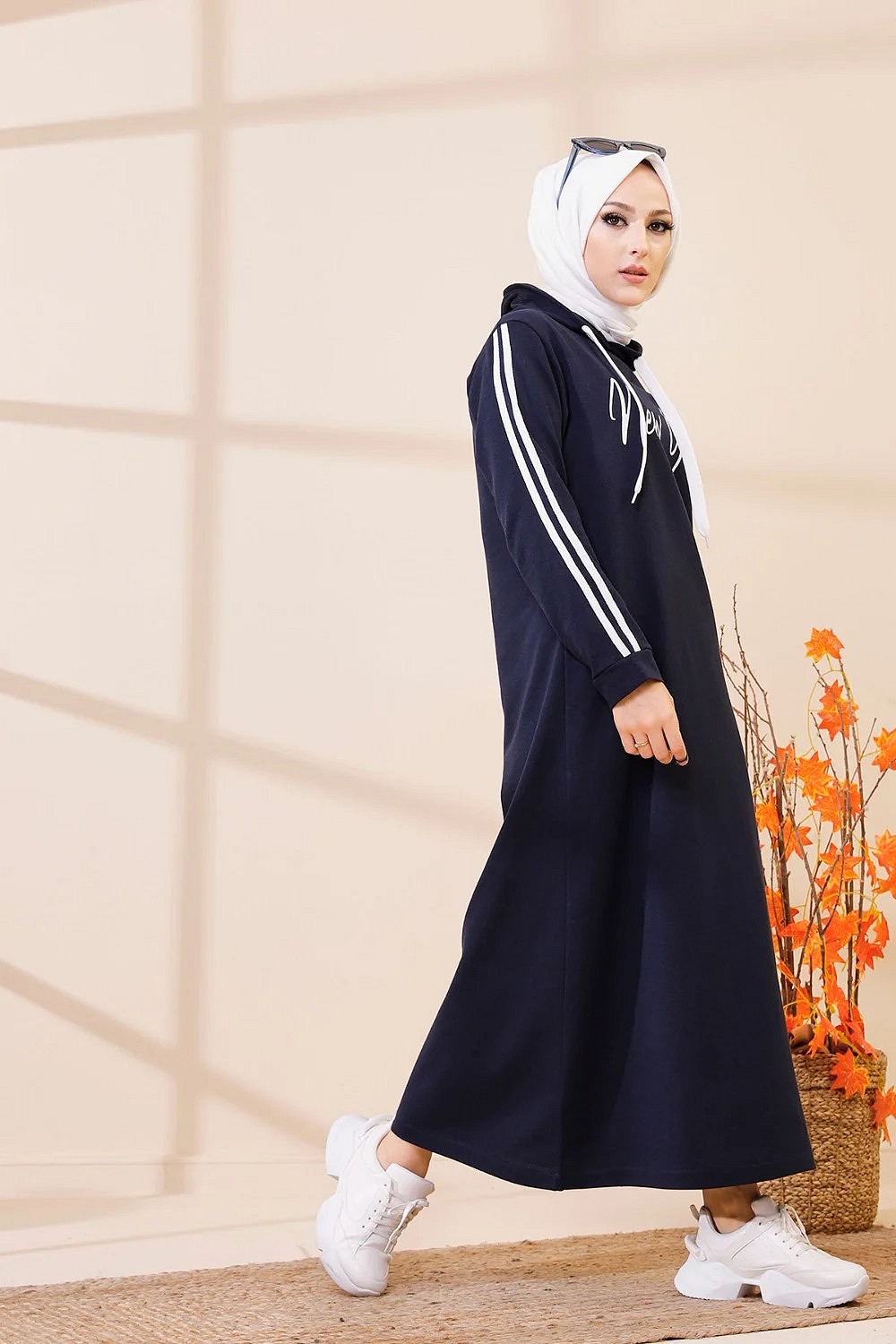 Robe décontractée avec capuche style moderne et sport (Hijab mode) - Couleur bleu marine Vetement & Accessoire