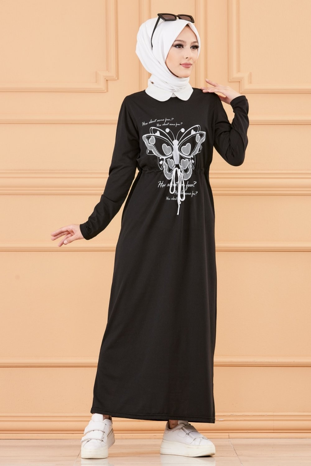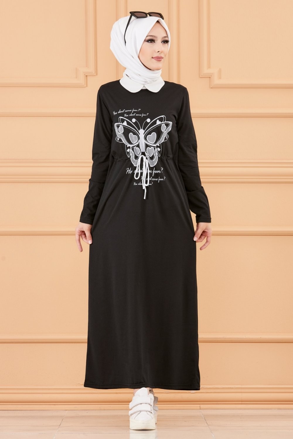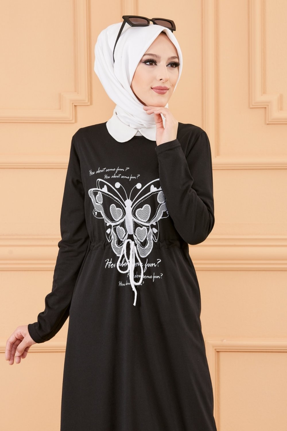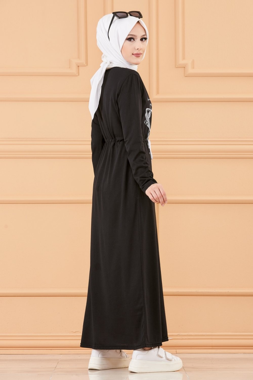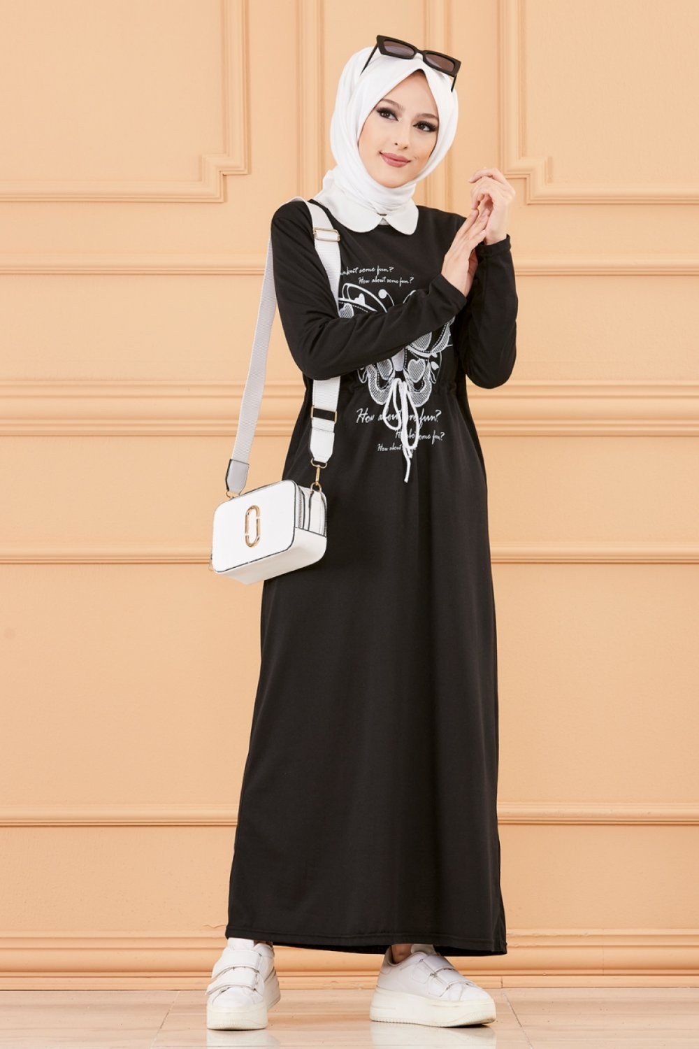 Robe decontractee imprimee pour femme (Mode Musulmane) - Couleur noir