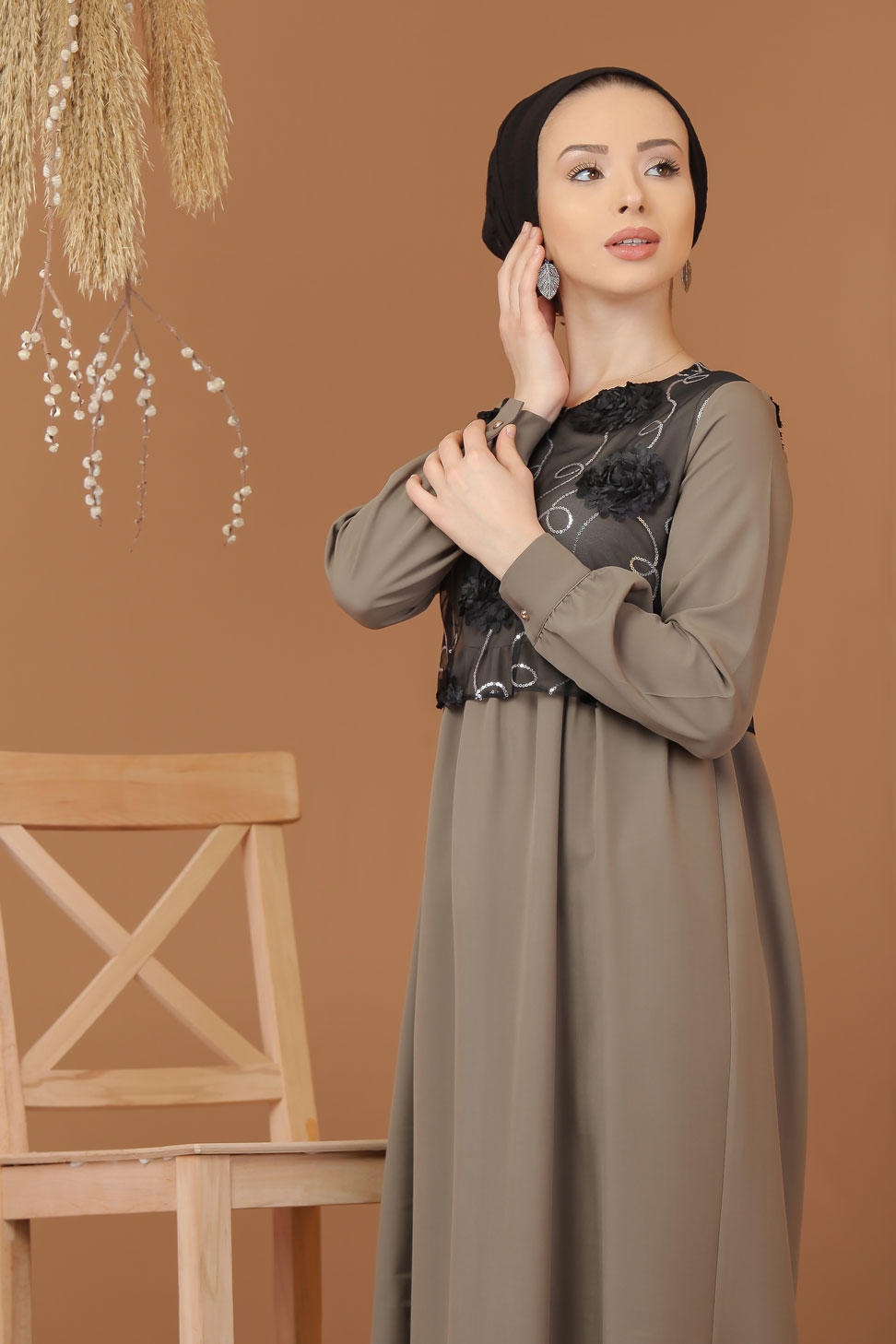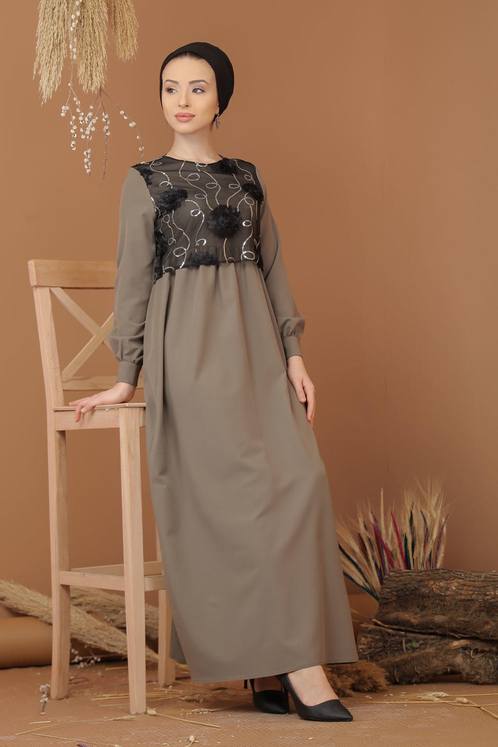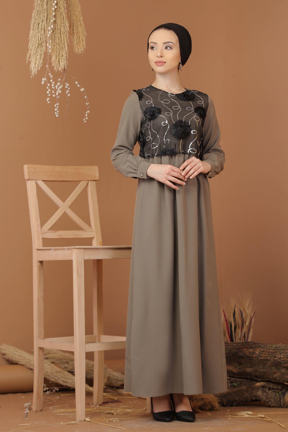 Robe maxi-longue évasée avec poches et broderies - Couleur Vert kaki - REF. 31014 (28.00 €)