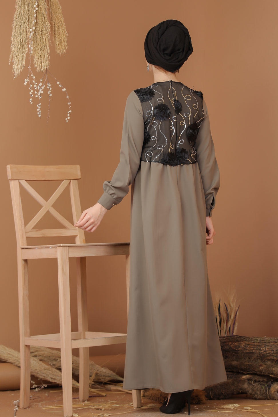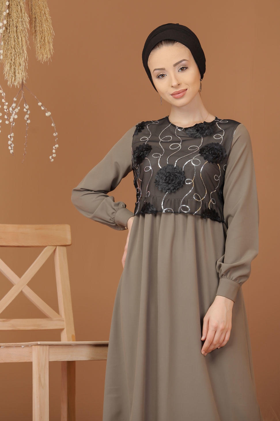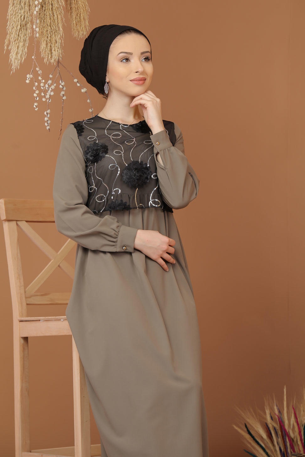 Robe maxi-longue évasée avec poches et broderies - Couleur Vert kaki - REF. 31014 (28.00 €)