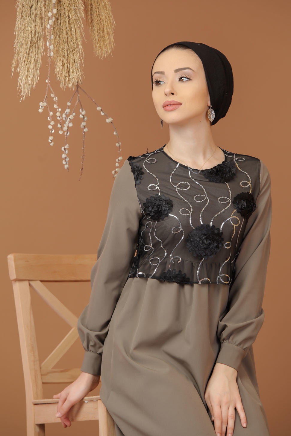 Robe hiver longue de couleur marron, noir et kaki - REF. 31229 (28.00 €)