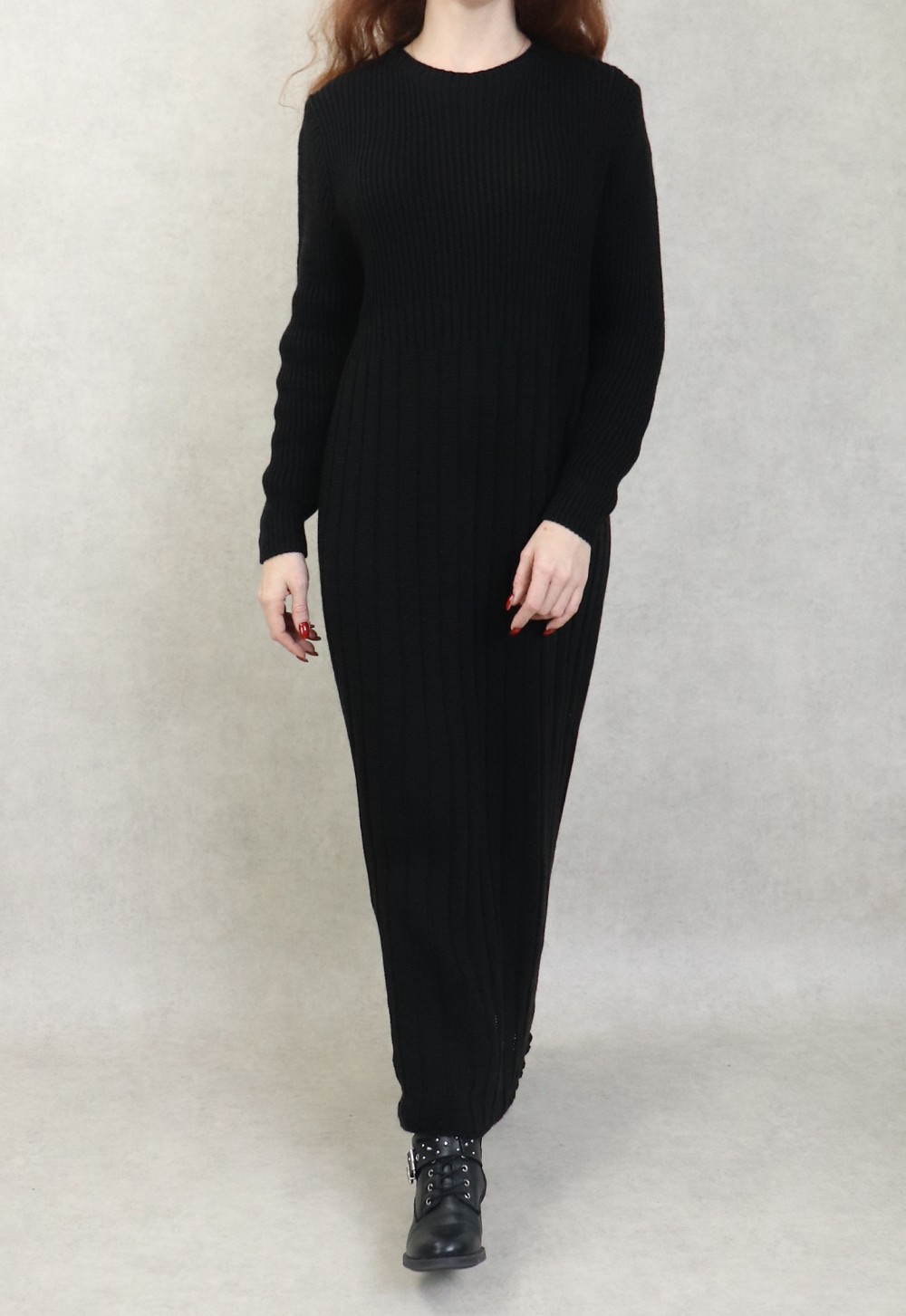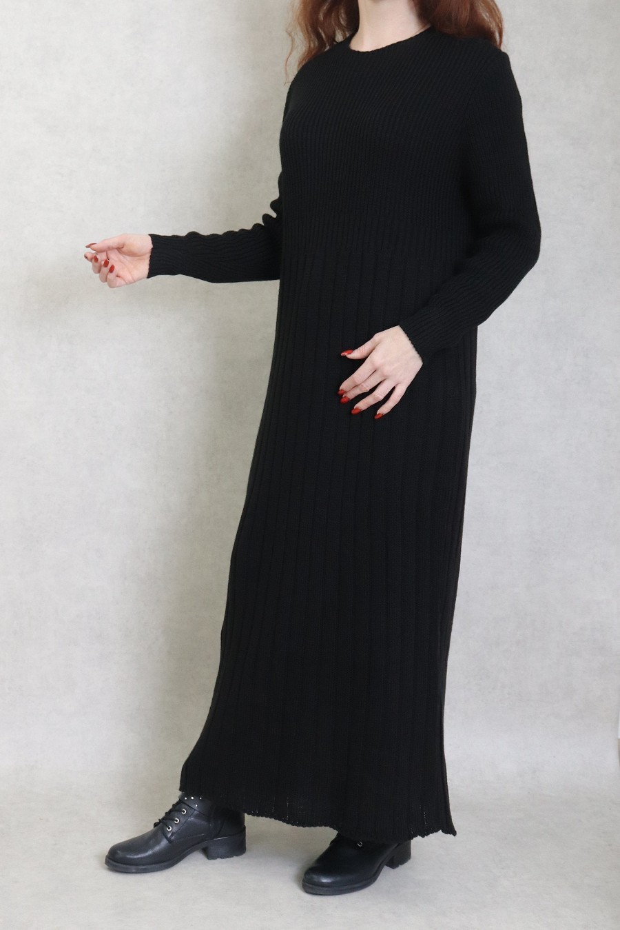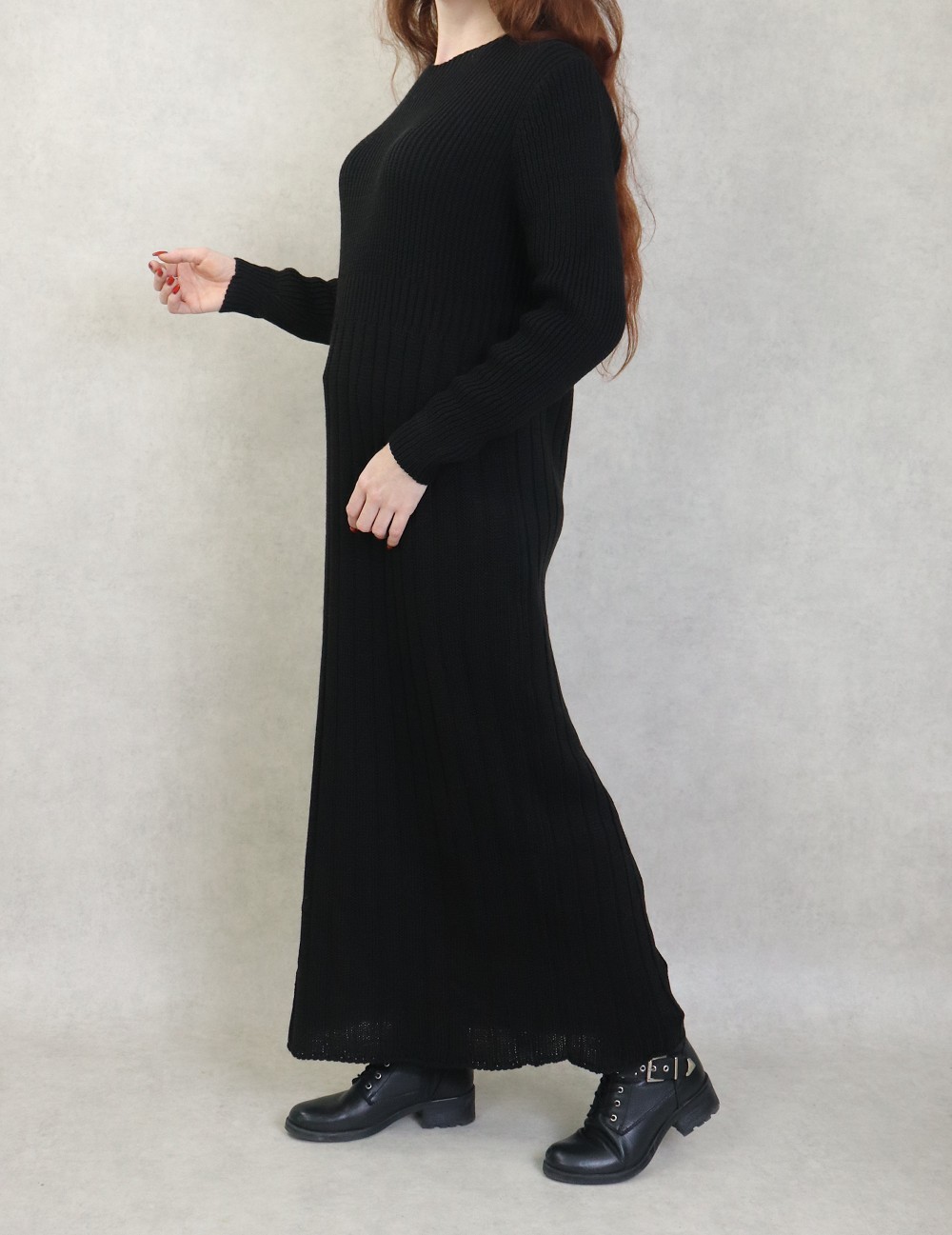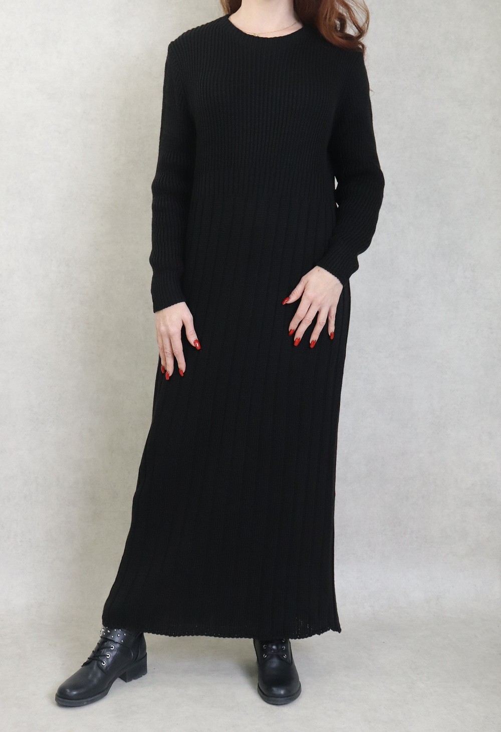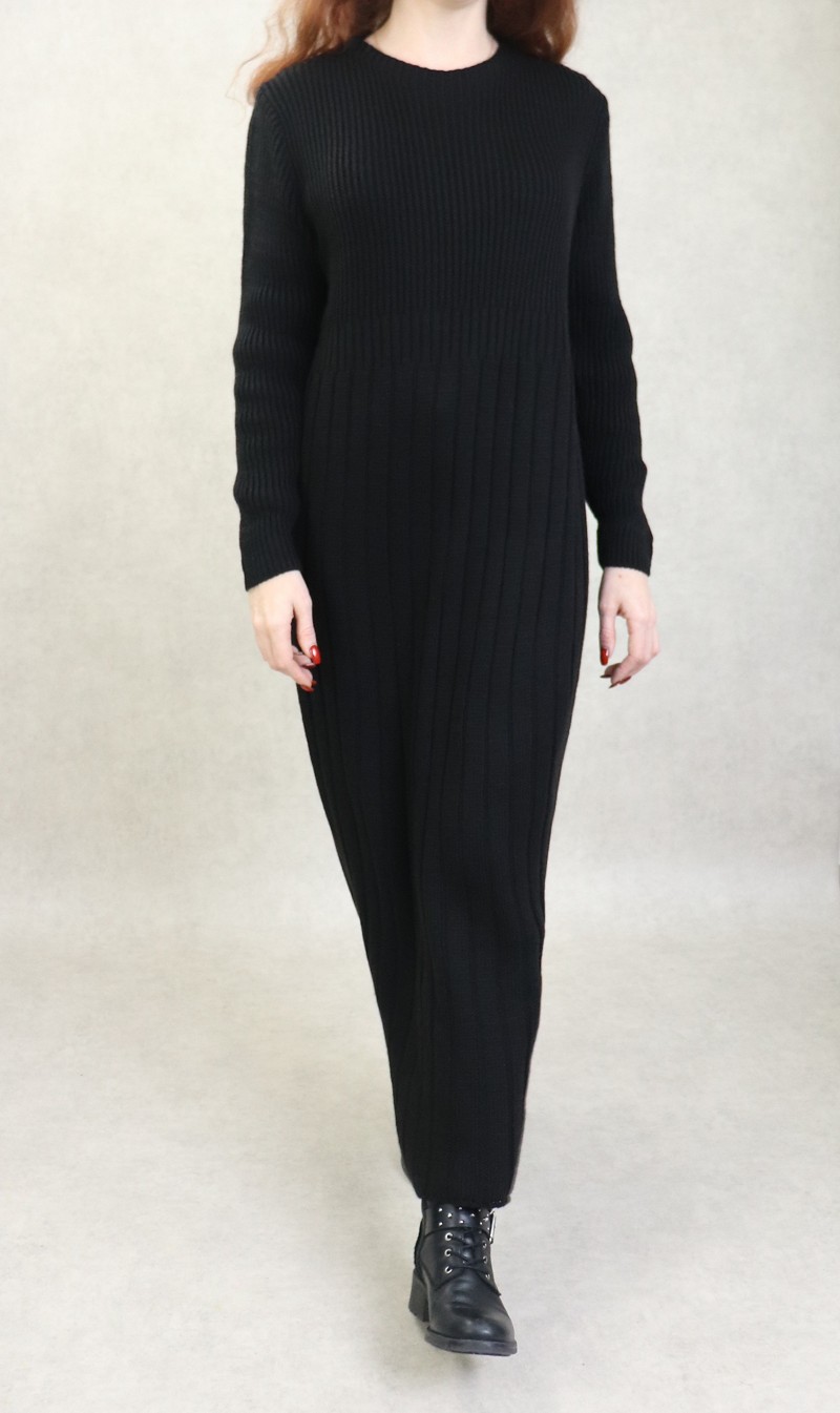 Robe en grosse maille pour femme (Saison Automne Hiver) - Couleur Noir