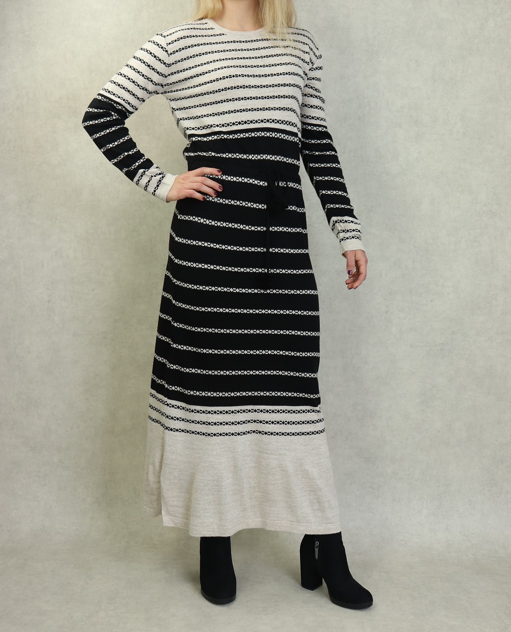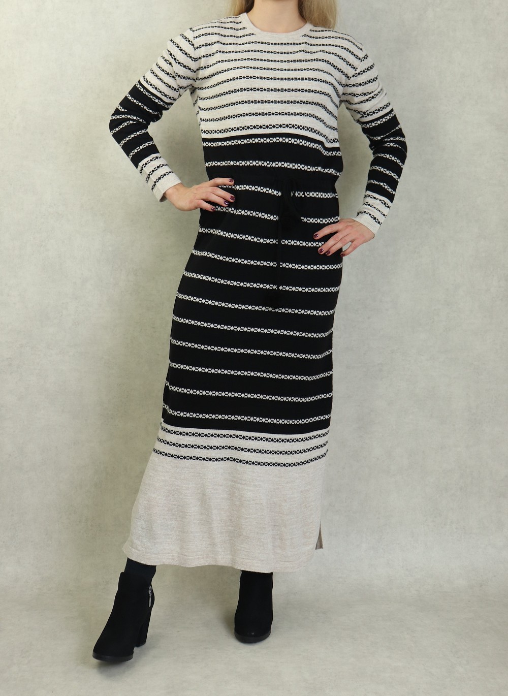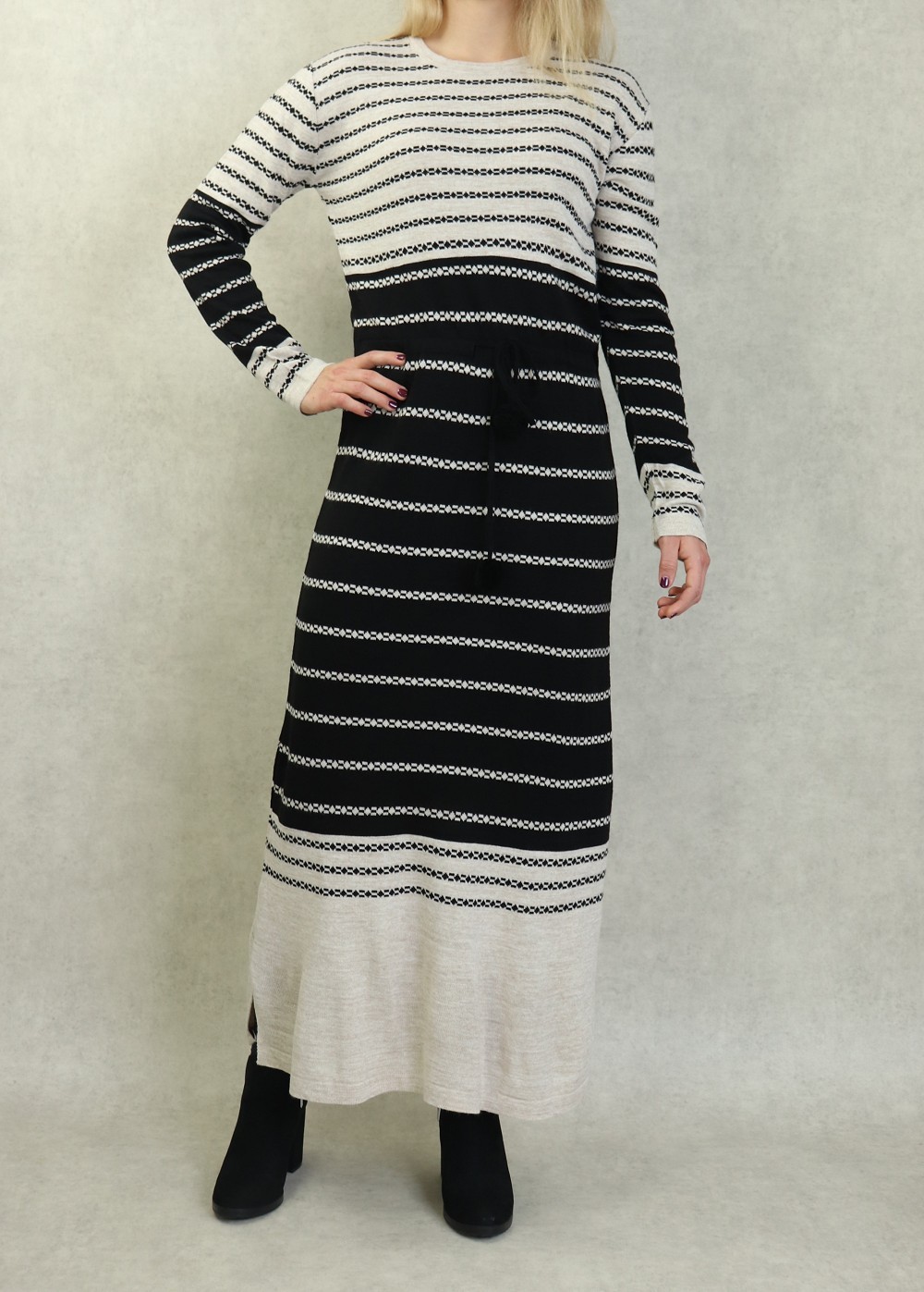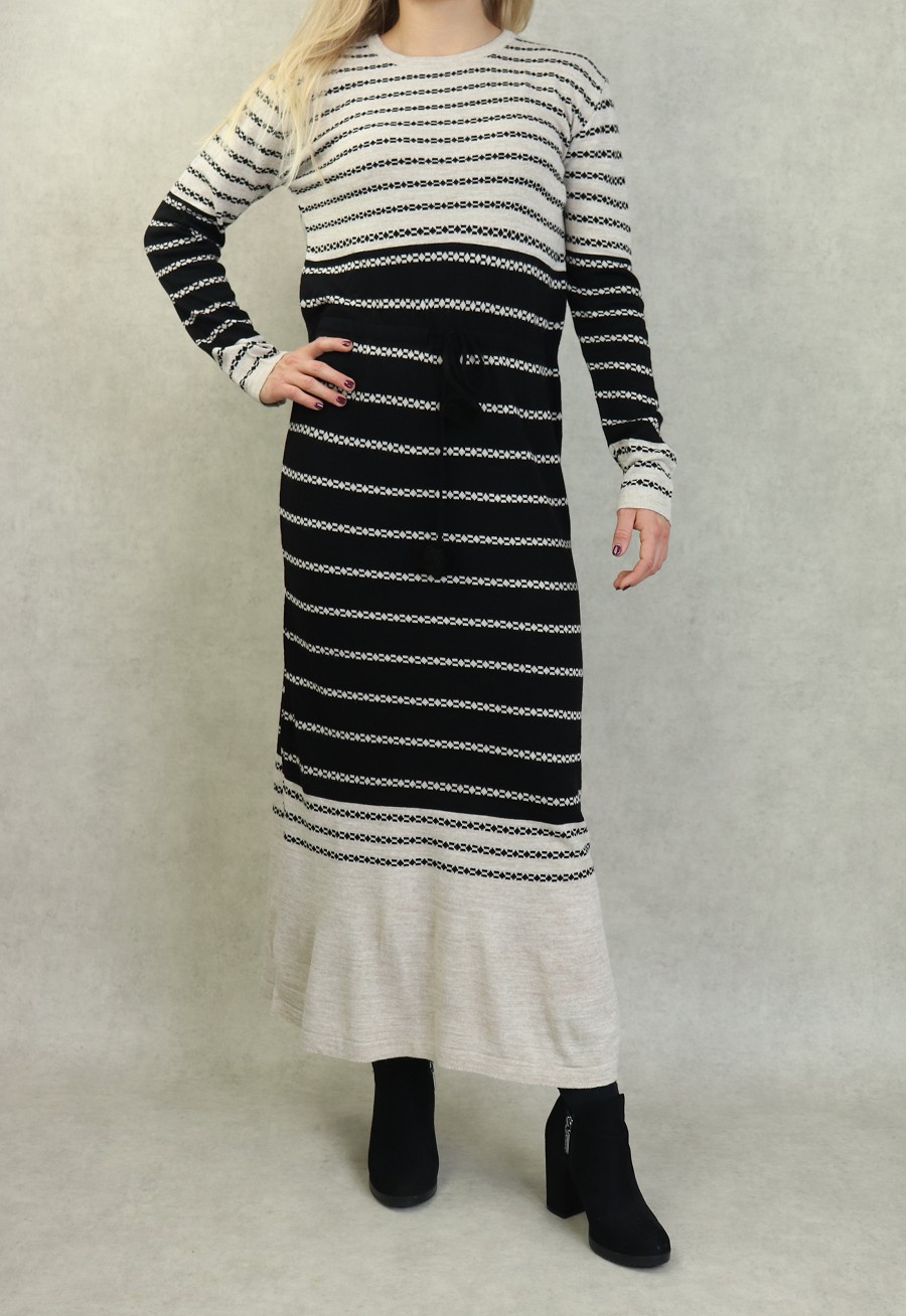 Cette robe en maille s'invite en hiver dans notre dressing... Coupe droite, encolure arrondie, manches longues. Lien de serrage à la taille. On aime sa coupe simplifiée, facile à porter. Confortable et douillette, elle s'adapte à tous les looks. Associez-lui par exemple des accessoires unie ou colorés pour parfaire votre tenue.