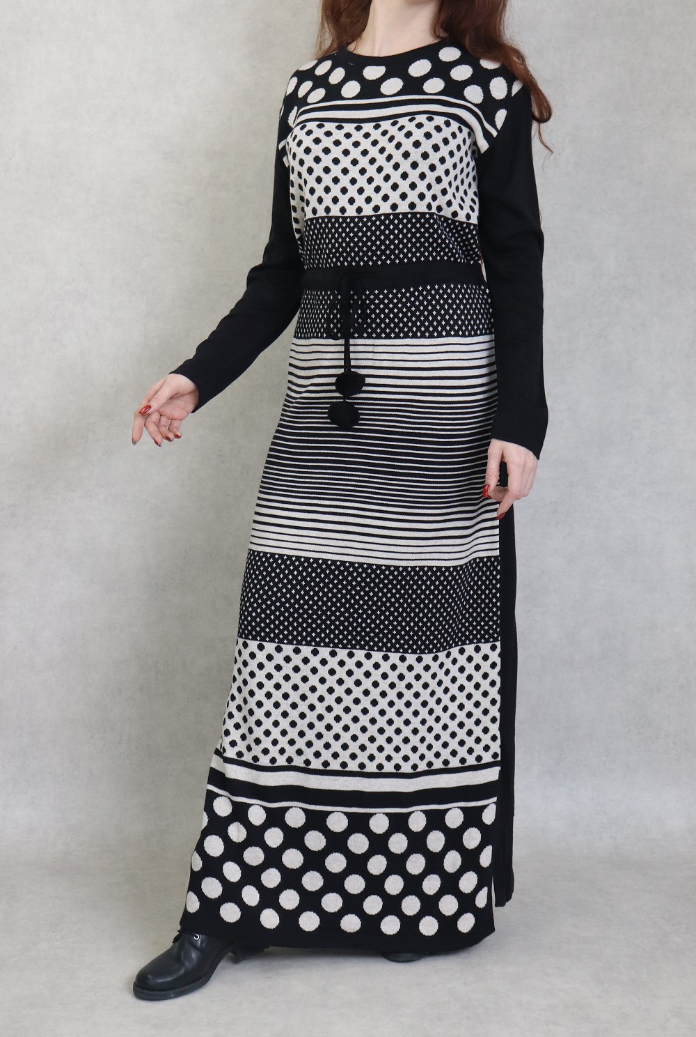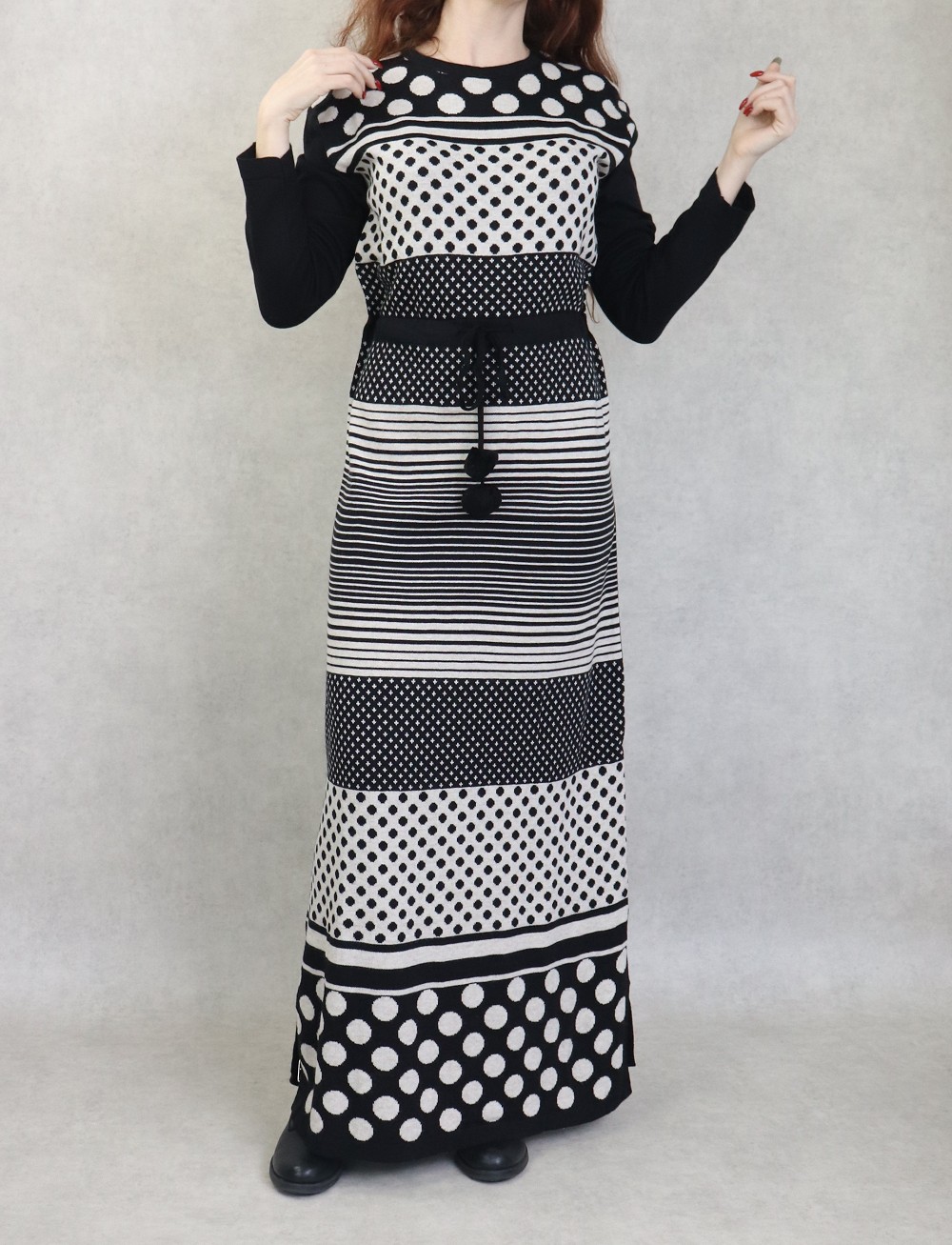 Robe en maille maxi-longue à motifs bicolore pour femme (Collection Automne-Hiver) - Couleur Noir et beige Vetement & Accessoire