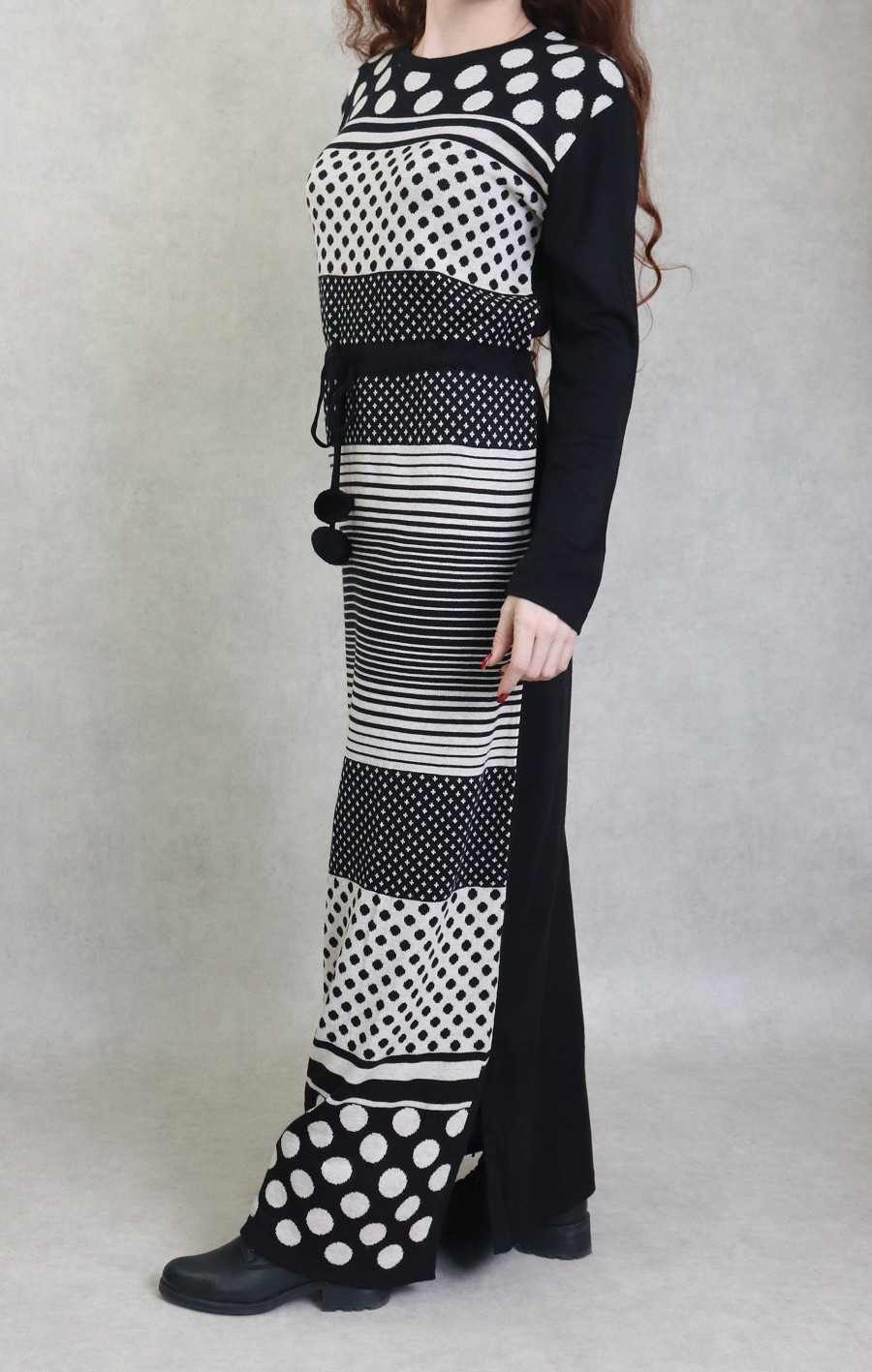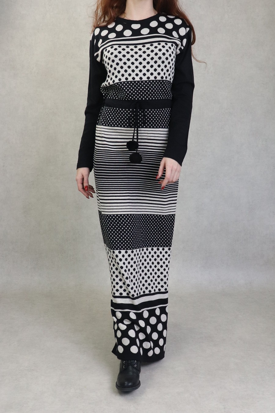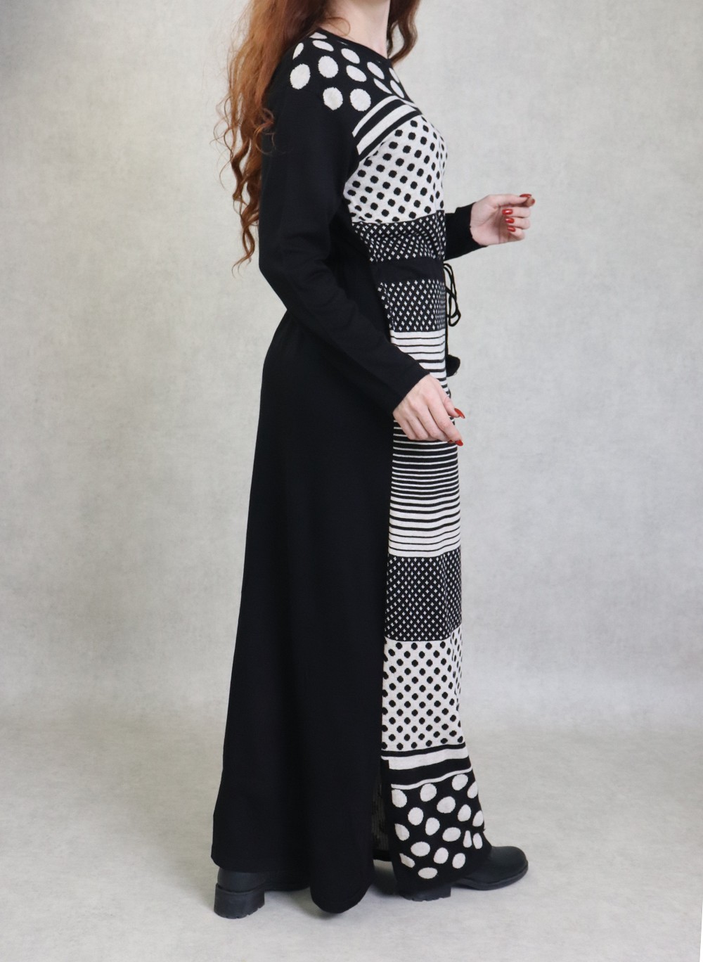Robe en maille maxi-longue a motifs bicolore pour femme (Collection Automne-Hiver) - Couleur Noir et beige