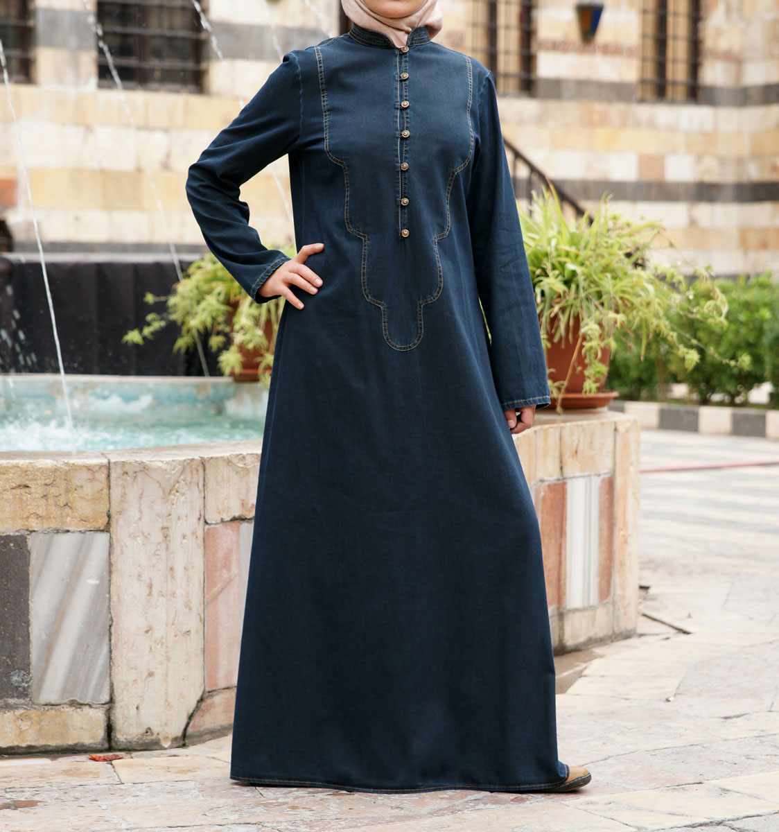 Robe mi longue style Trench (Vêtement hijab) pour femme voilée) - Couleur noir - REF. 33199 (32.00 €) - En Promotion à 24.90 €