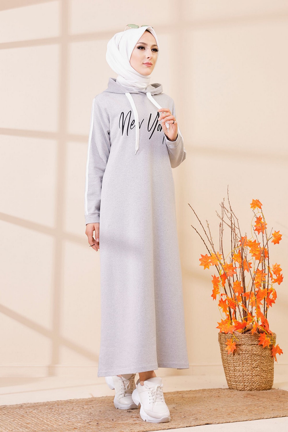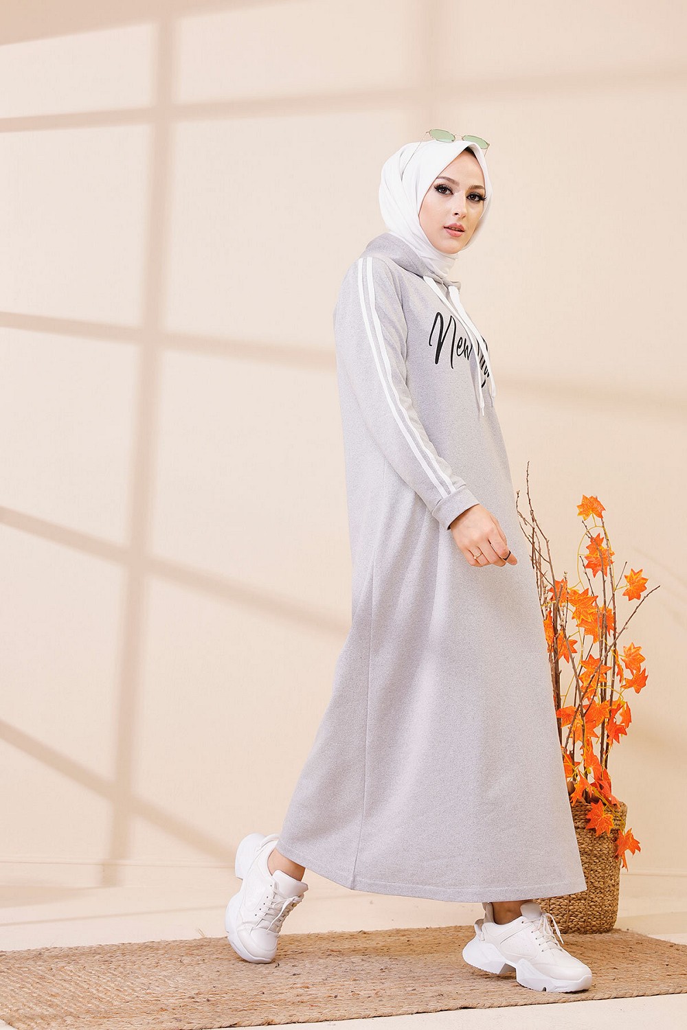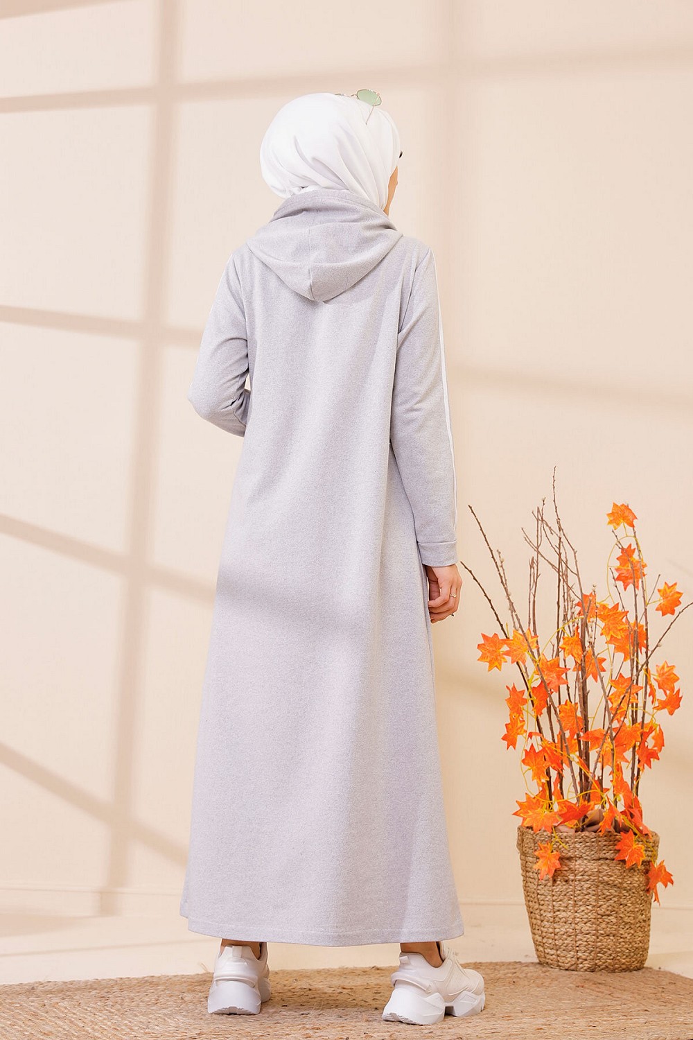 Robe évasée décontractée avec capuche style moderne et sport (Vetement moutahajiba) - Couleur gris clair Vetement & Accessoire