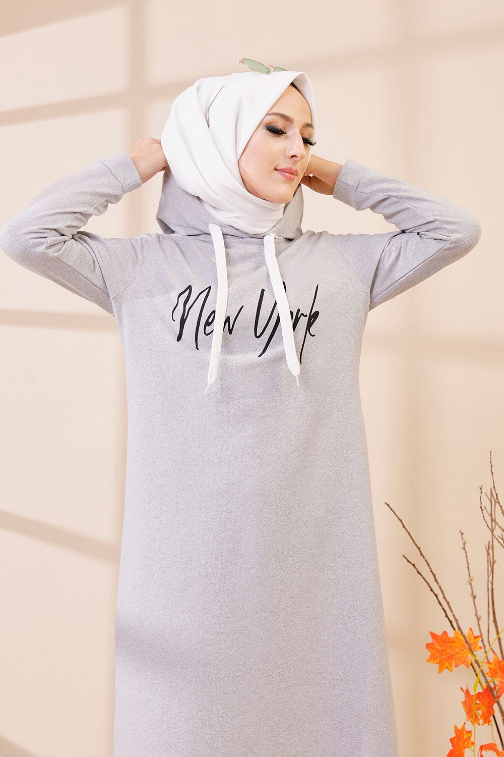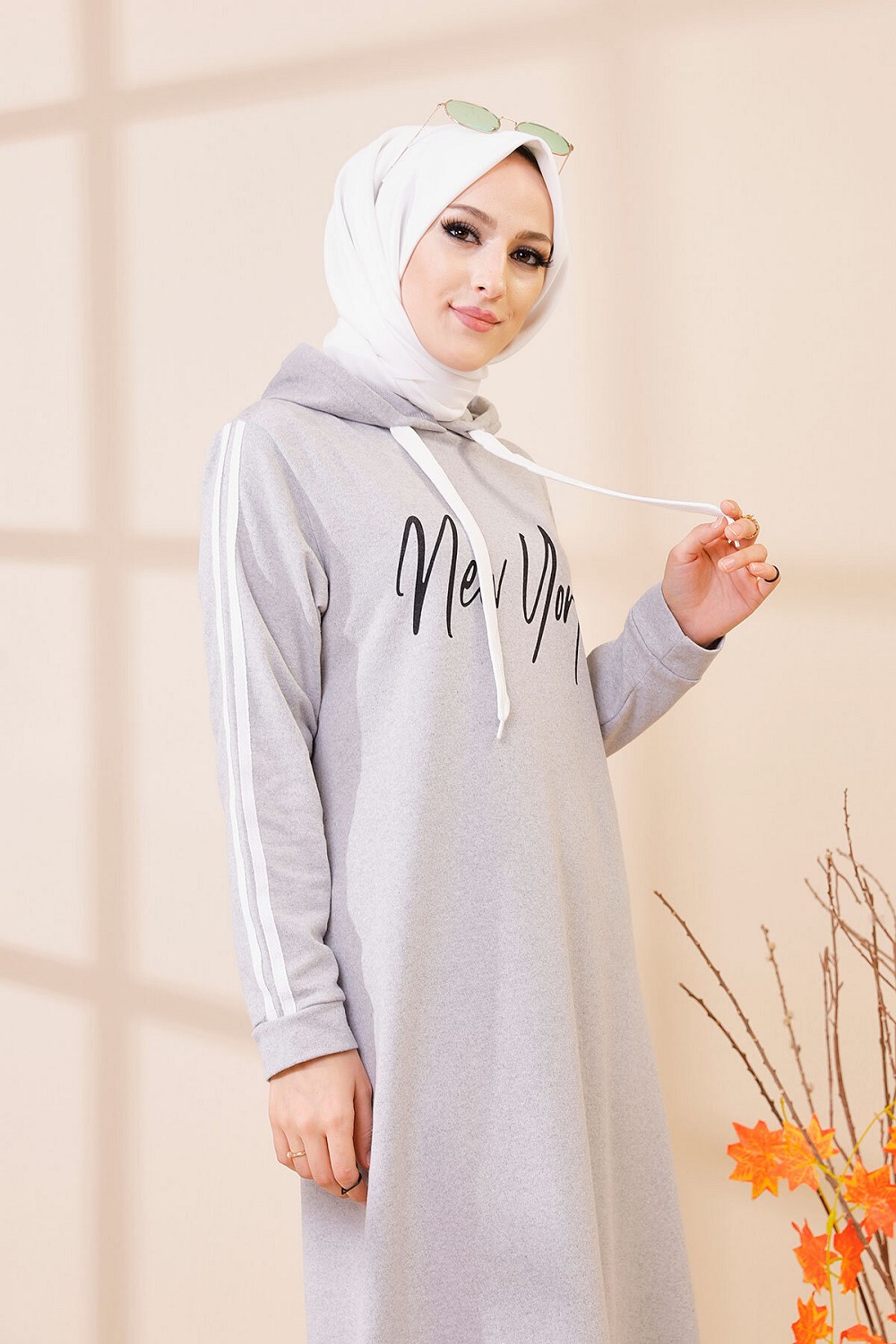 Robe evasee decontractee avec capuche style moderne et sport (Vetement moutahajiba) - Couleur gris clair