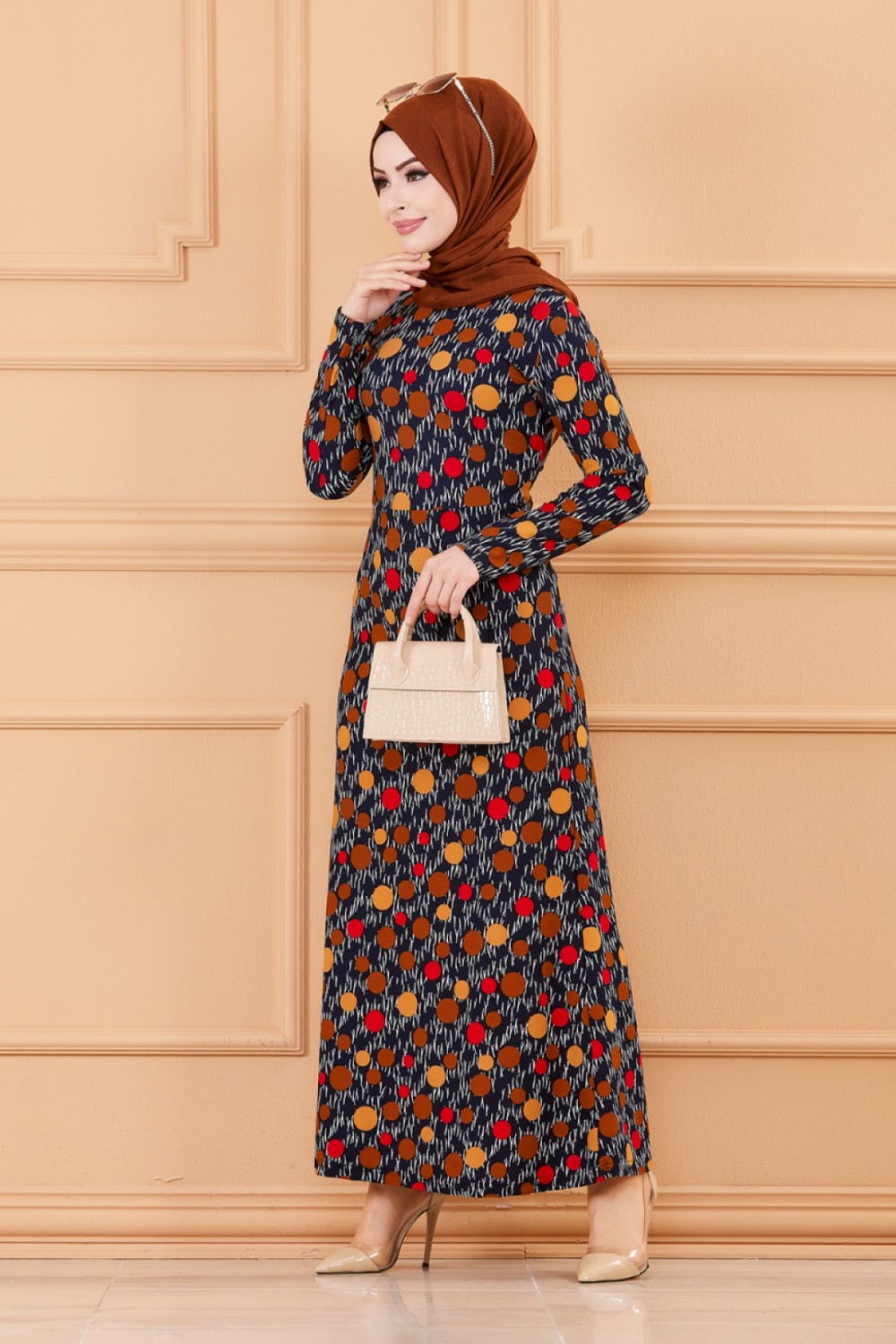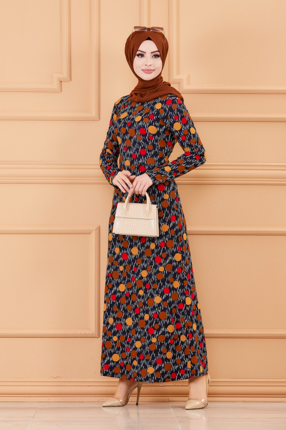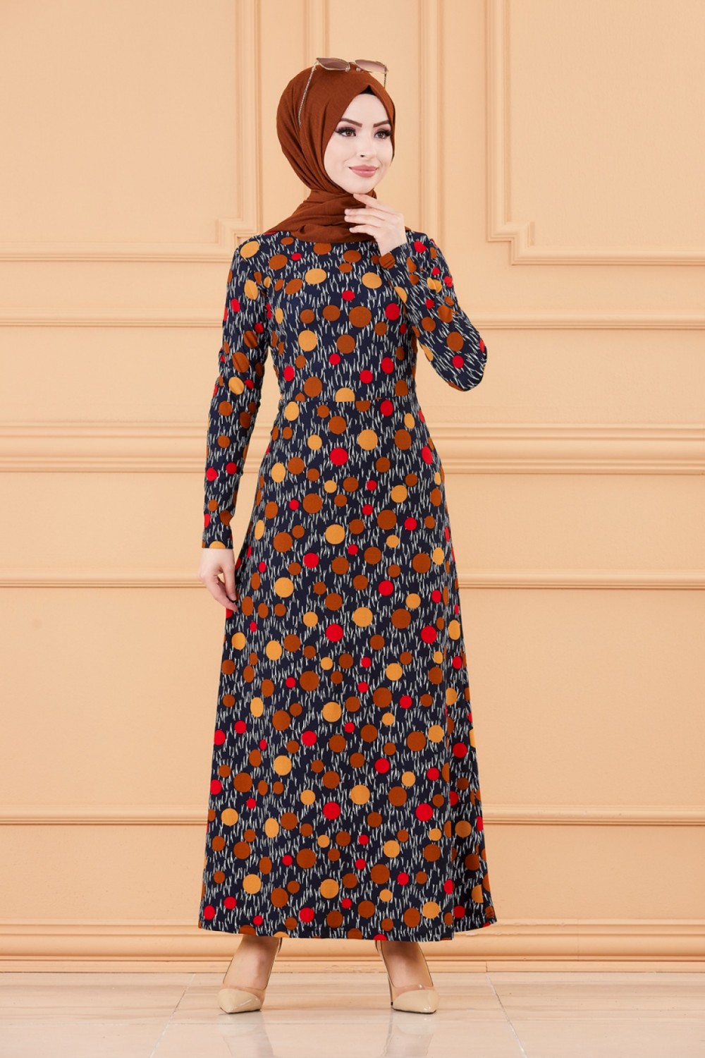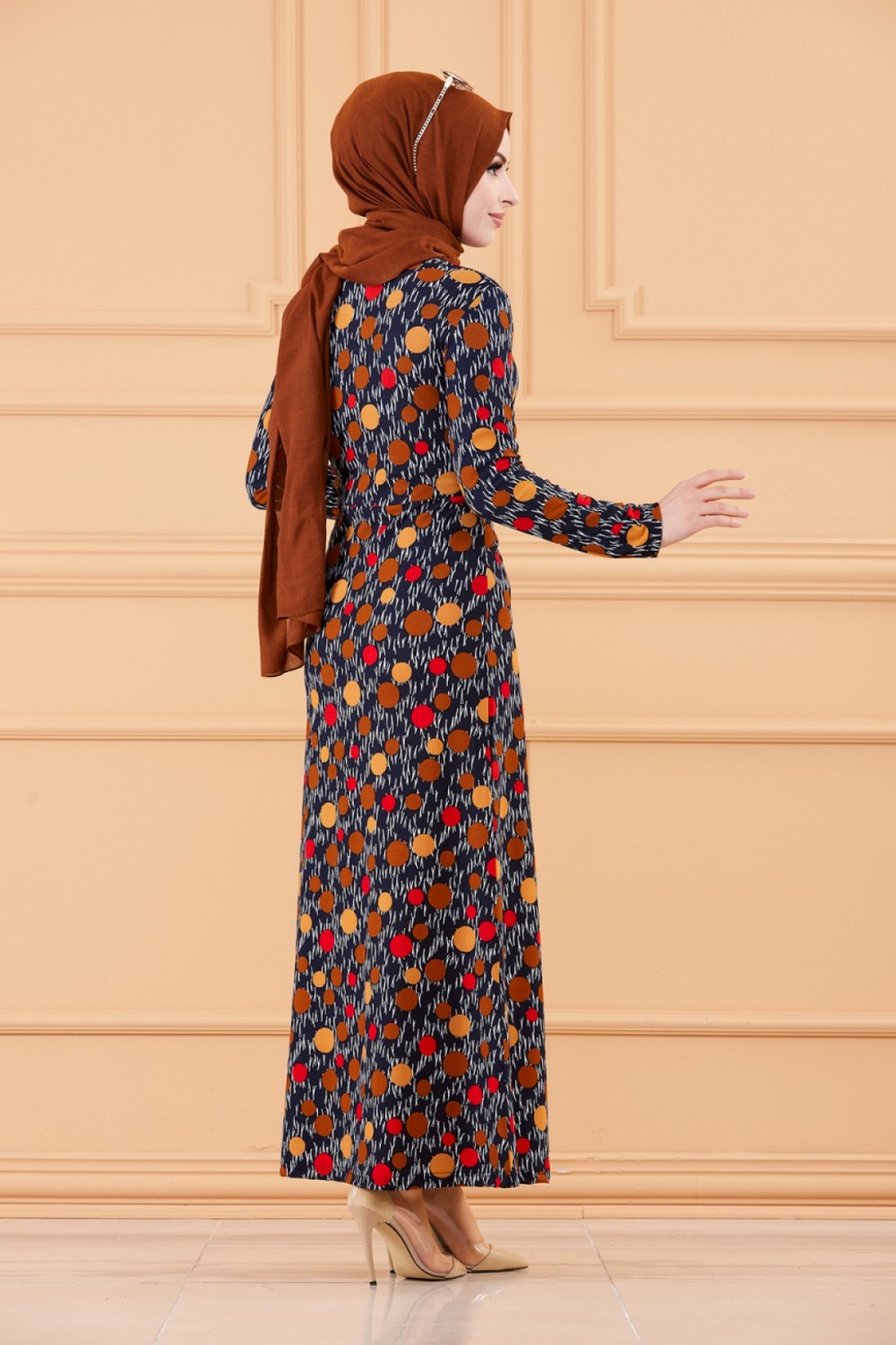 Robe longue en cachemire (Vetement hijab) - Couleur bleu marine et saumon - REF. 35602 (24.90 €)