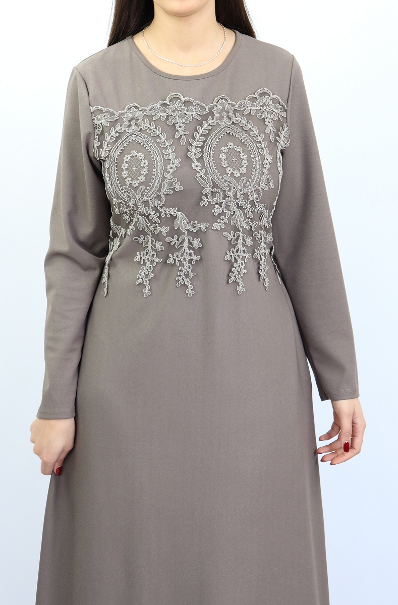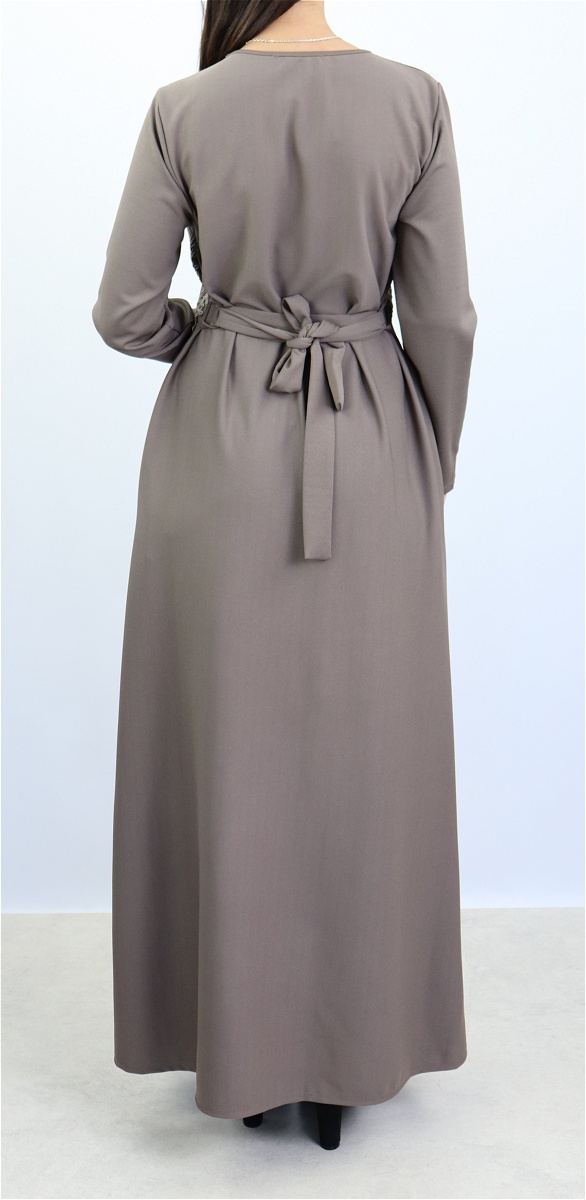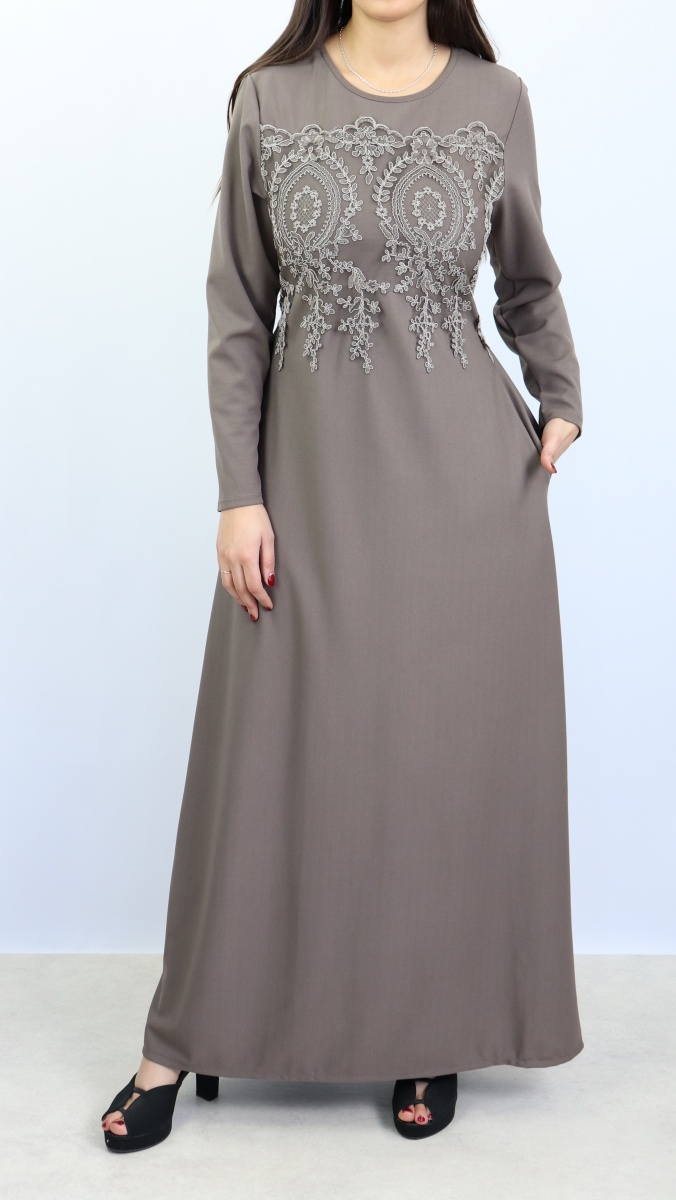 Remarquez la broderie qui orne la pièce au niveau de la poitrine. Vous pouvez aussi utiliser la ceinture assortie en l'attachant par devant ou par derrière pour en effet cintré (comme sur les photos).
