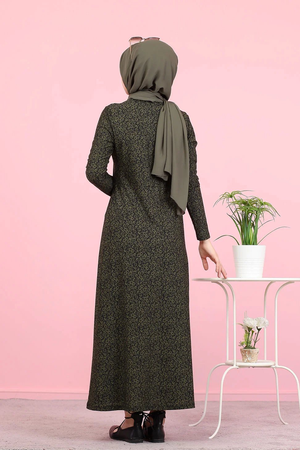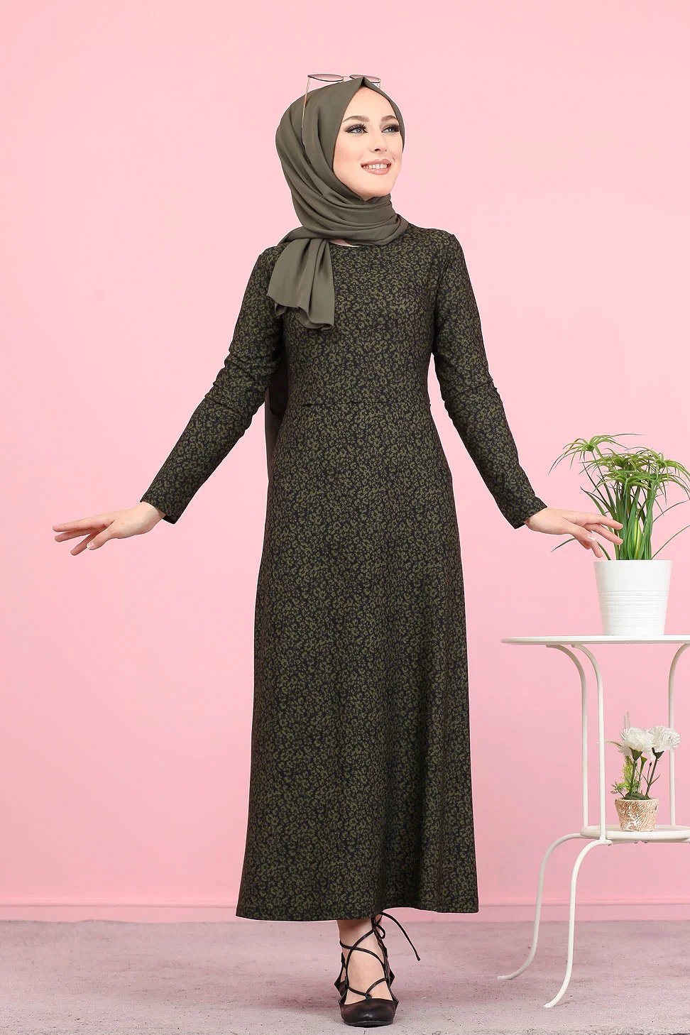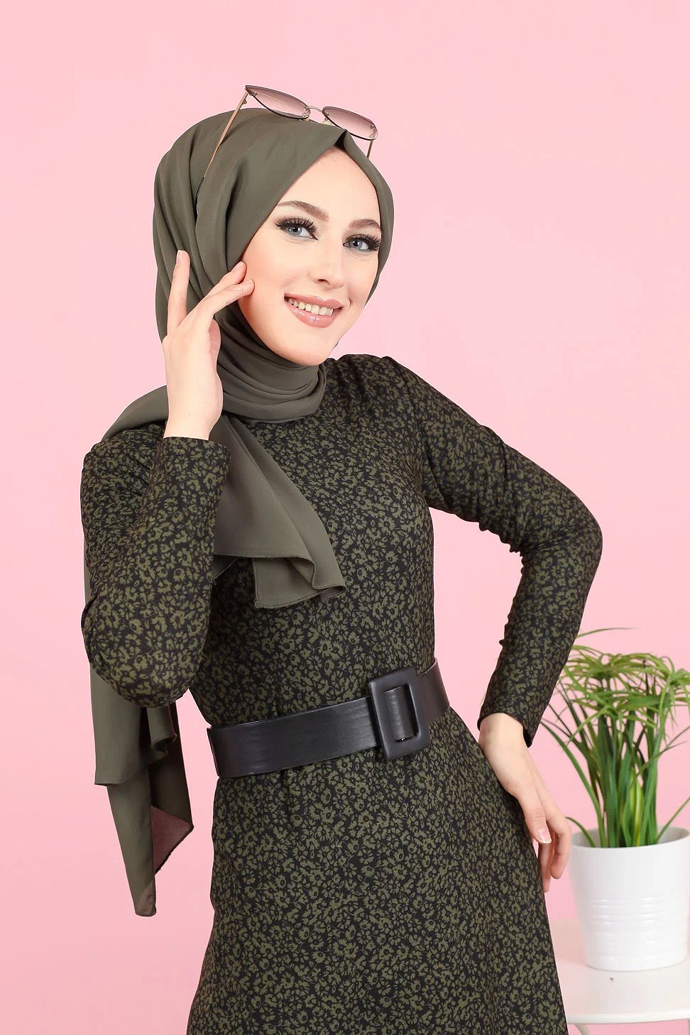 Robe longue légèrement cintrée à la taille, col rond, manches longues. (ceinture non fournie)