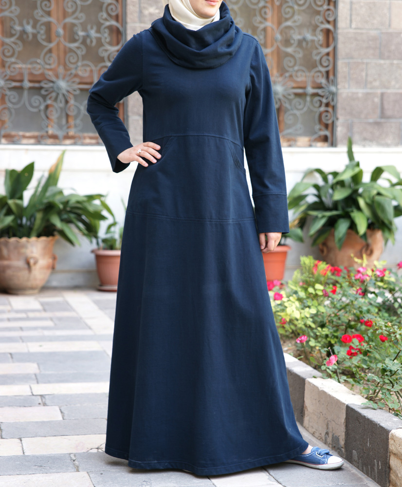 Description: full length; cowl neck; large front pouch pocket. Imported.