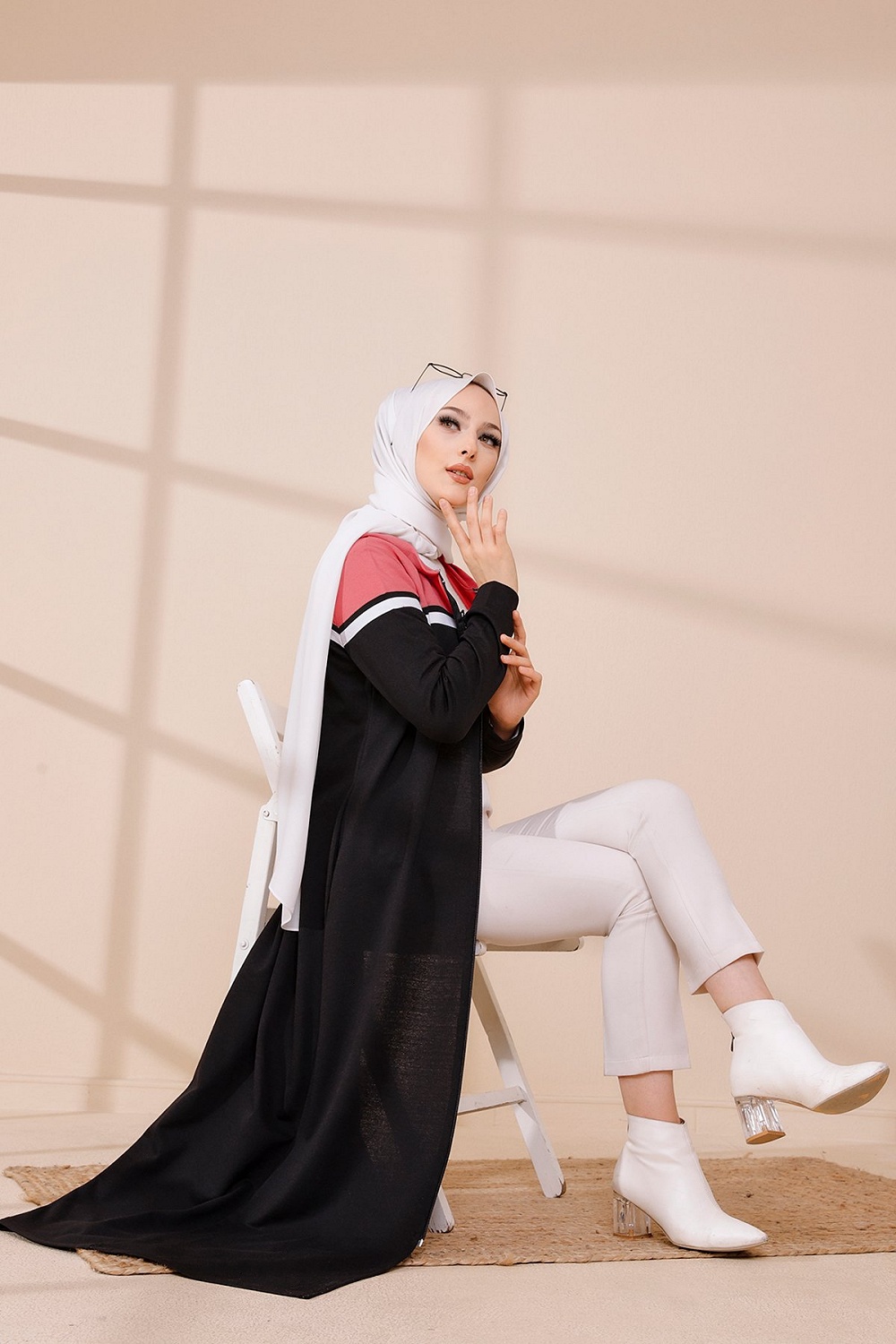 Veste longue (Vêtement Automne-Hiver pour Femme Voilée) - Couleur noir et blanc - REF. 38635 (24.90 €) - En Promotion à 19.90 €
