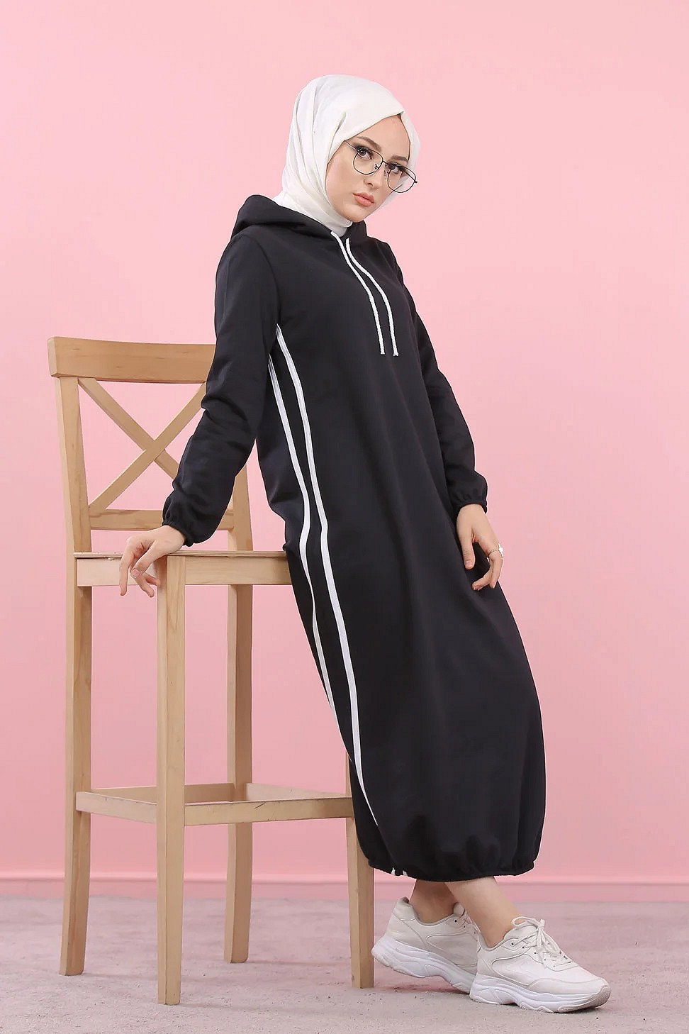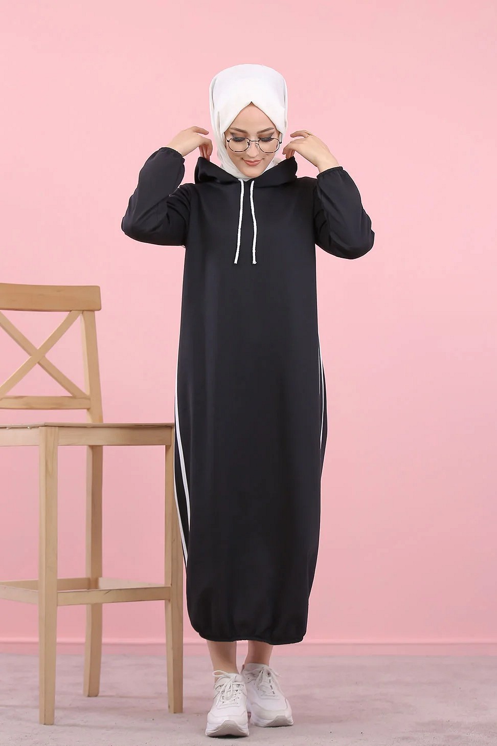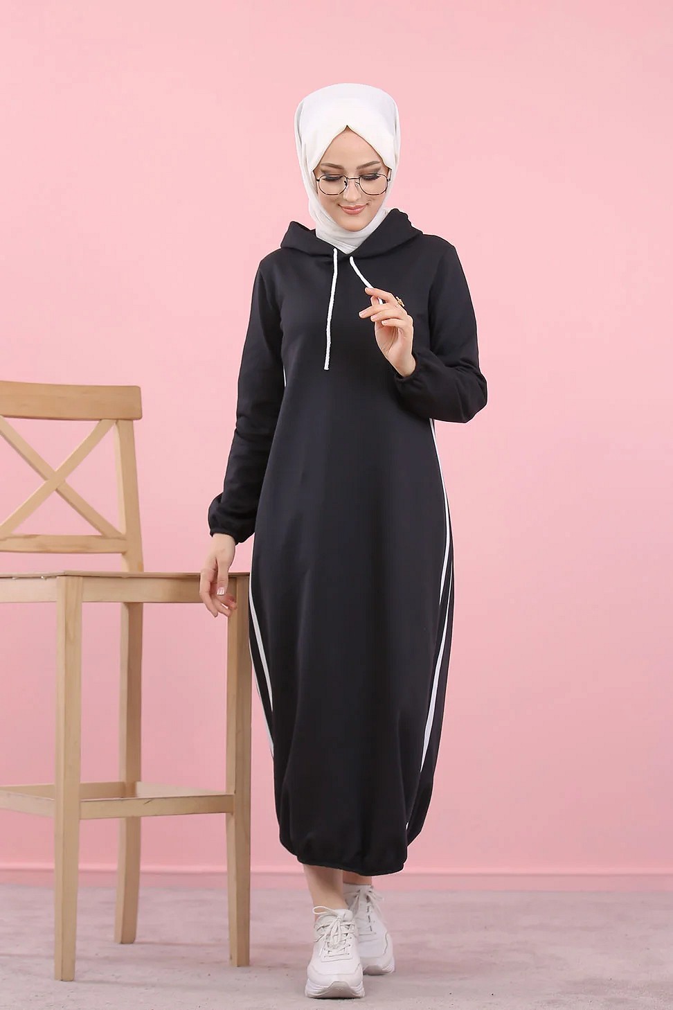 Robe longue a capuche style sweat shirt (Hijab sport pour femme musulmane) - Couleur Noir