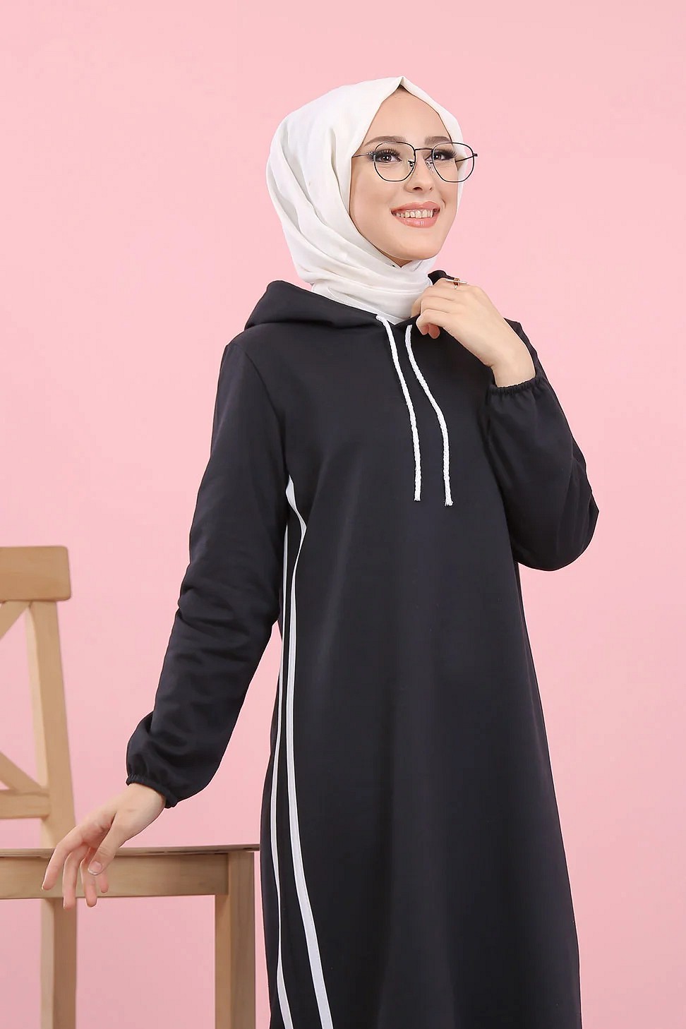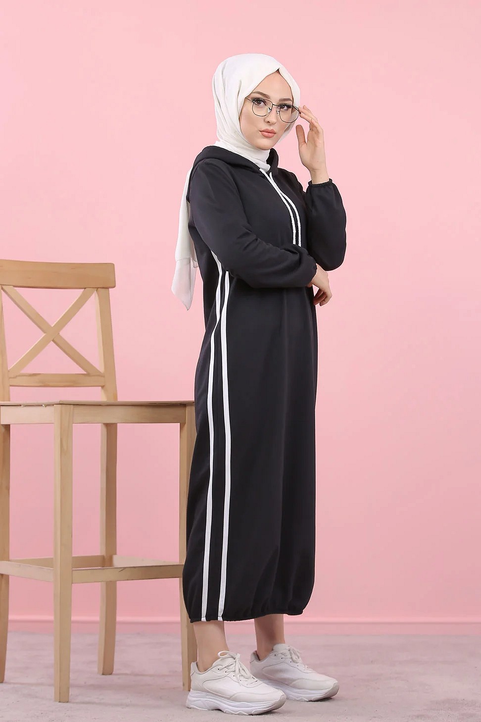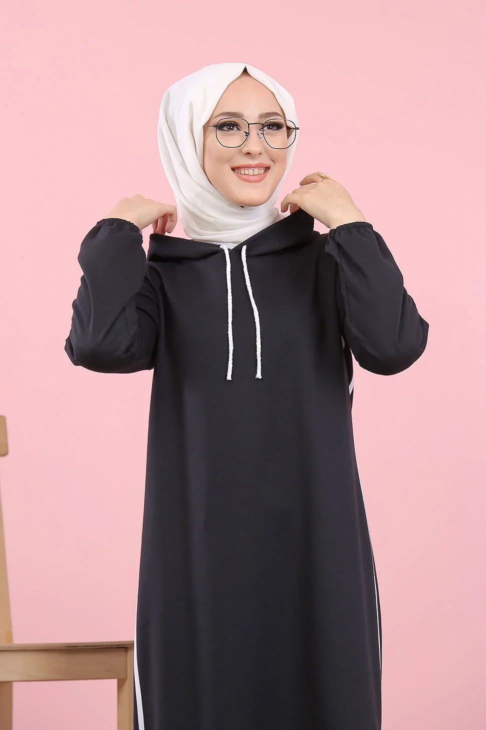 Robe longue a capuche style sweat shirt (Hijab sport pour femme musulmane) - Couleur Noir
