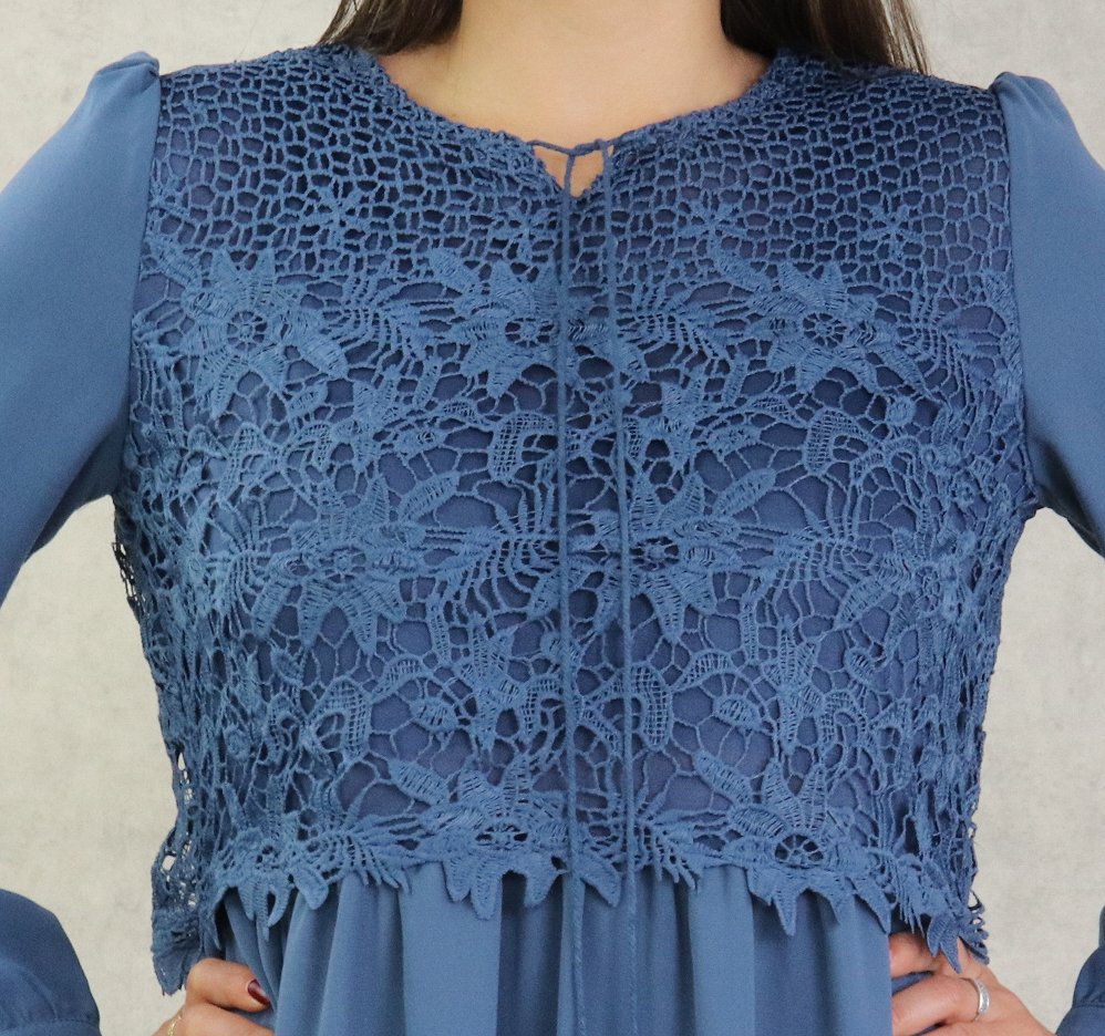Robe longue à dentelles doublée pour femme - Couleur bleu acier Vetement & Accessoire