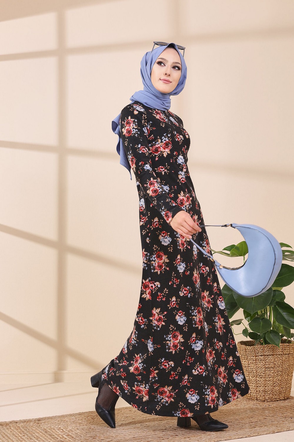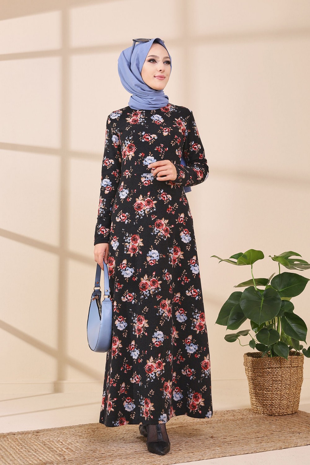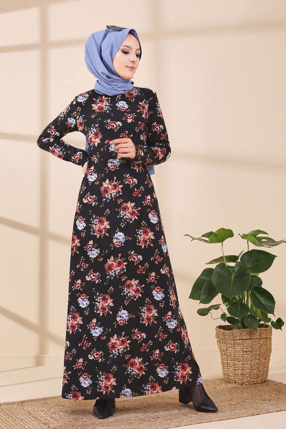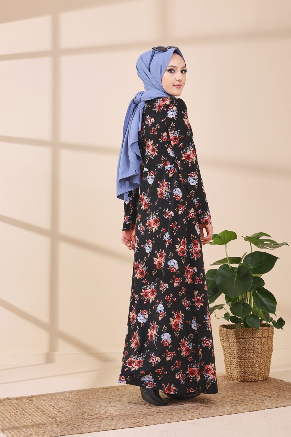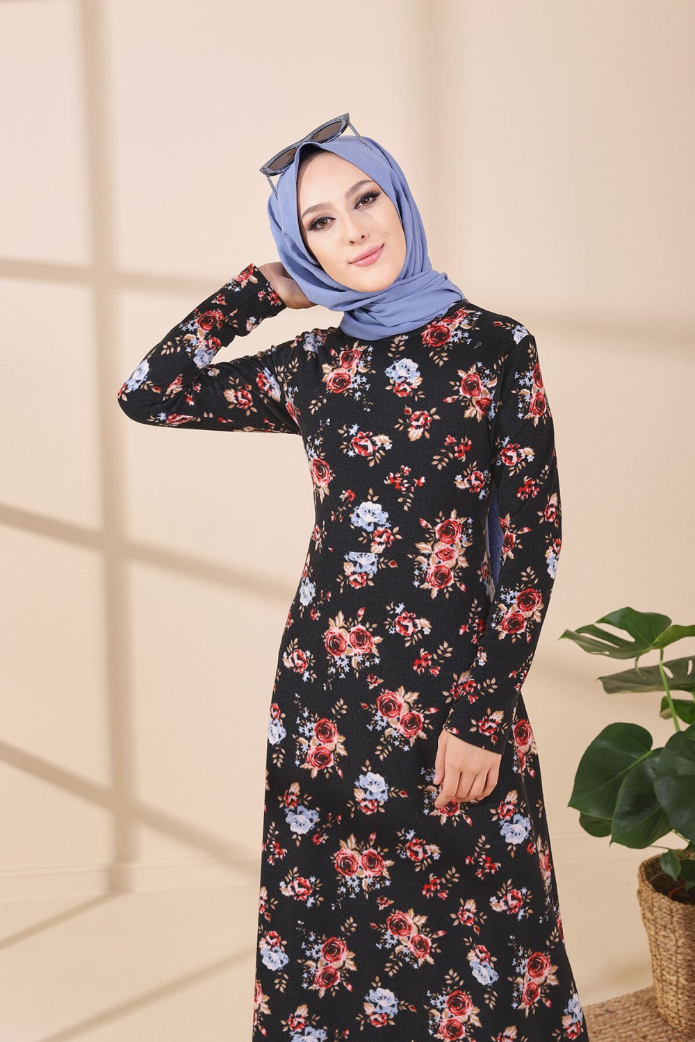 Robe longue à fleurs pour femme (Vêtements pour hijab) - Couleur rouge Vetement & Accessoire