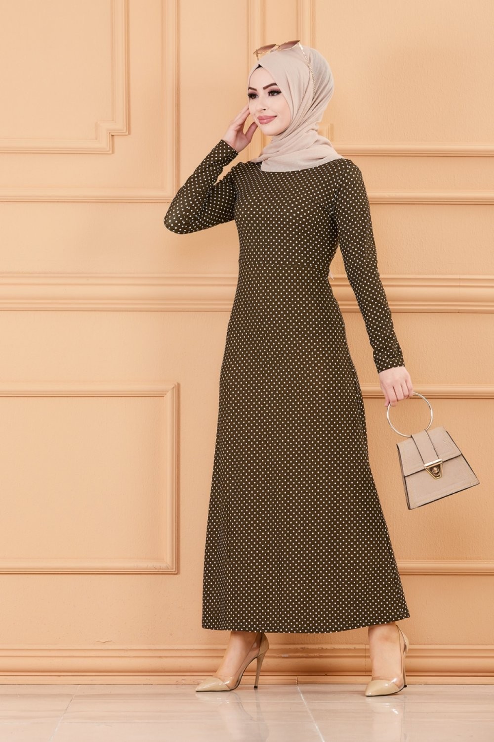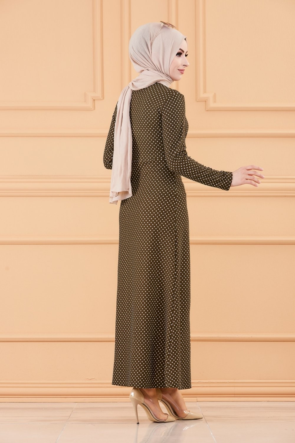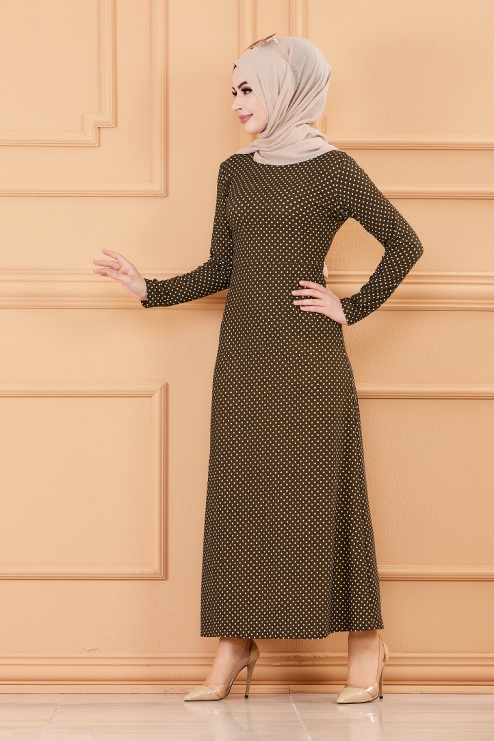Robe longue a pois pour femme (Vetement hijab France) - Couleur kaki