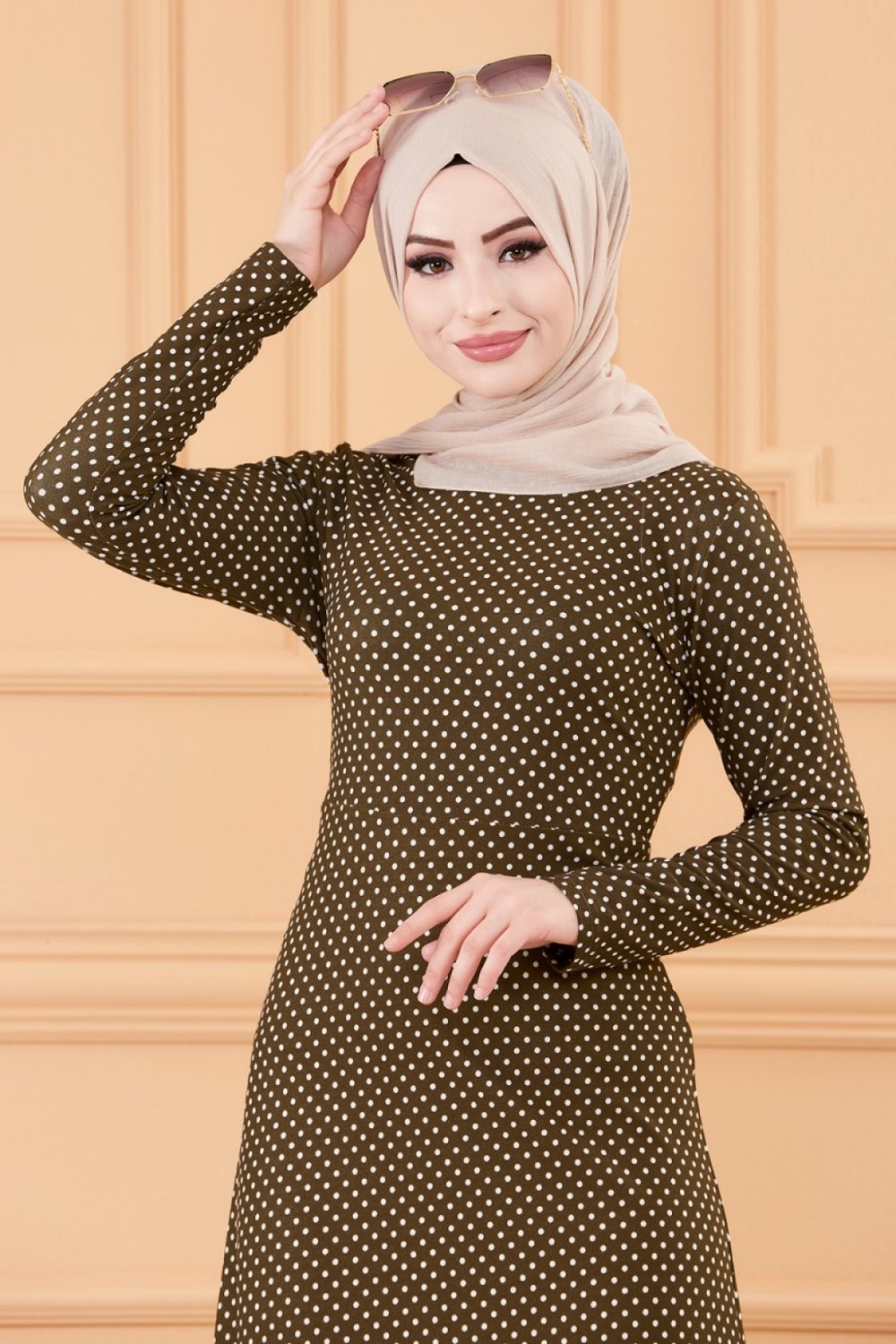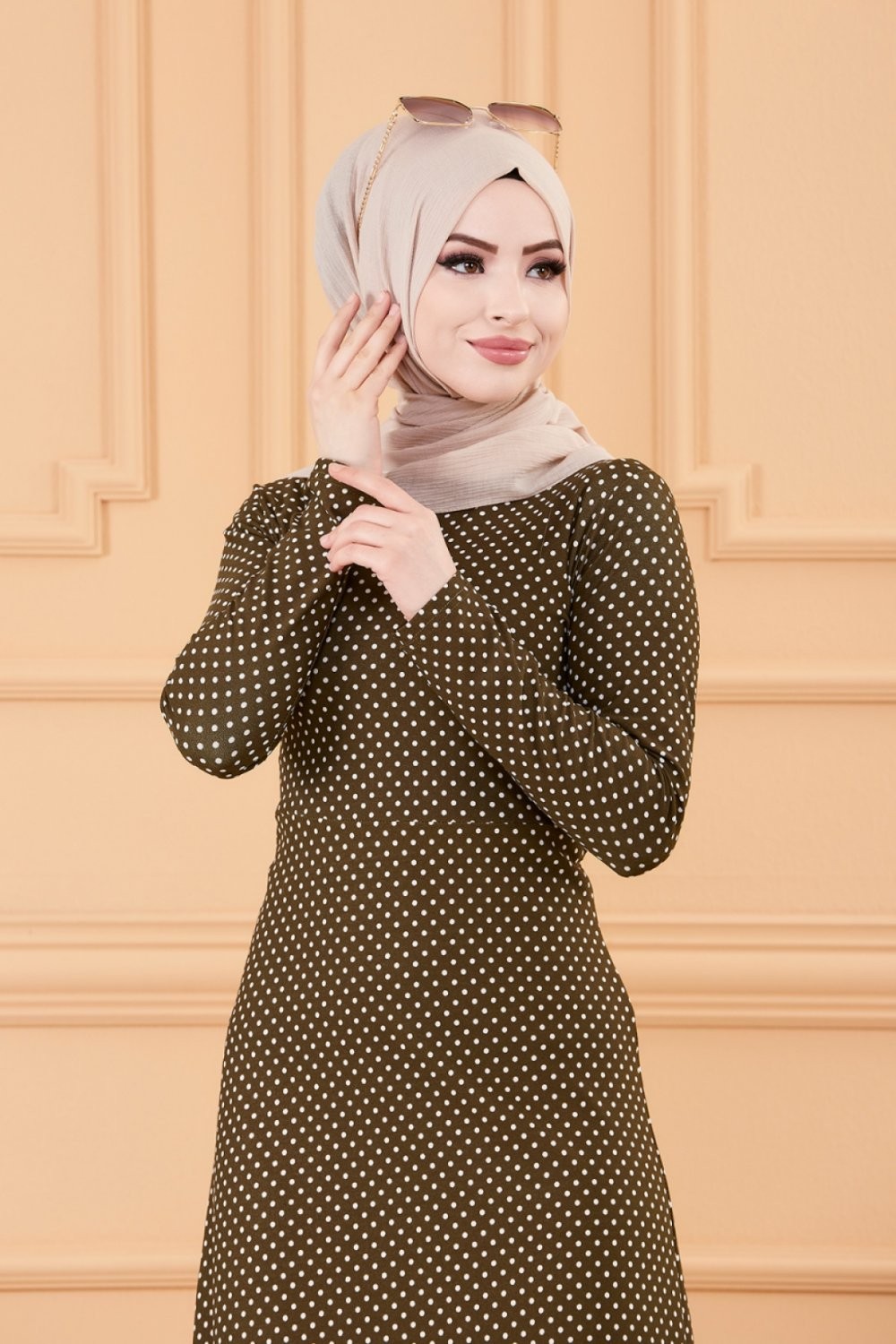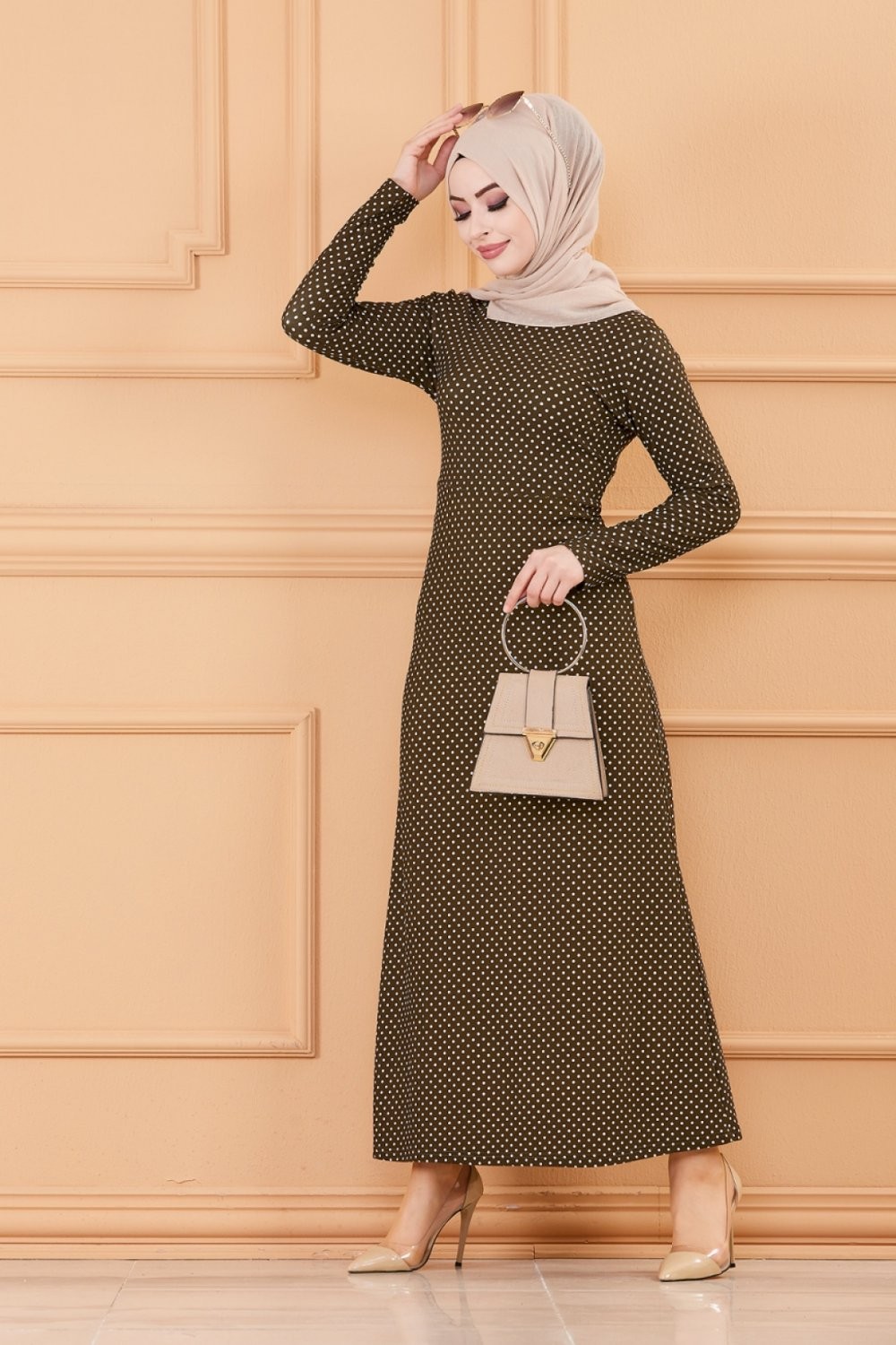 Robe longue a pois pour femme (Vetement hijab France) - Couleur kaki