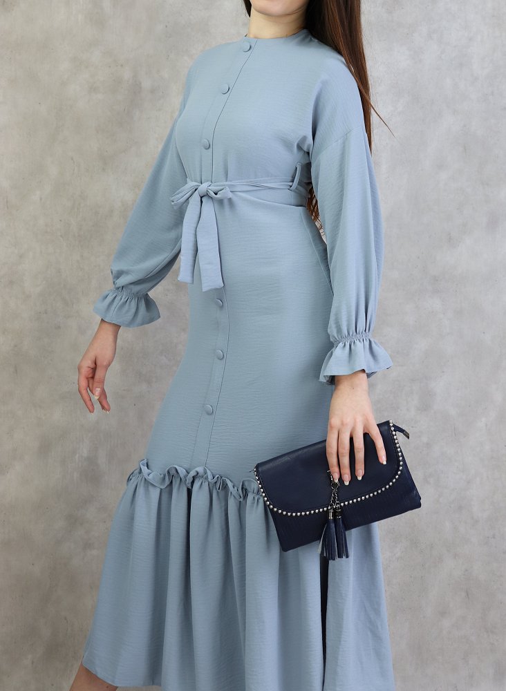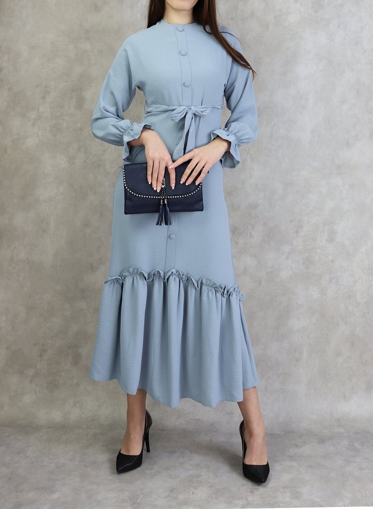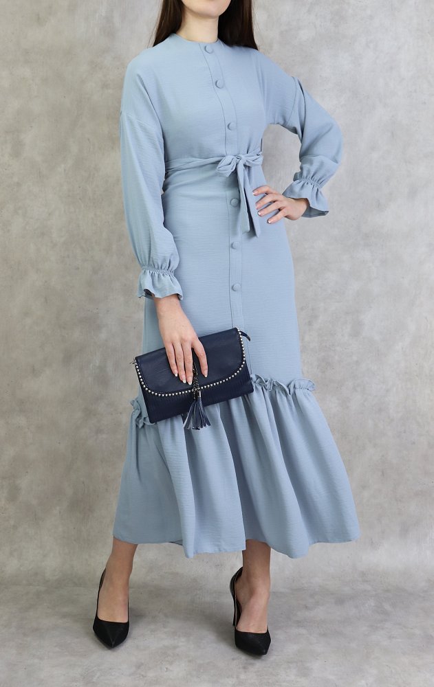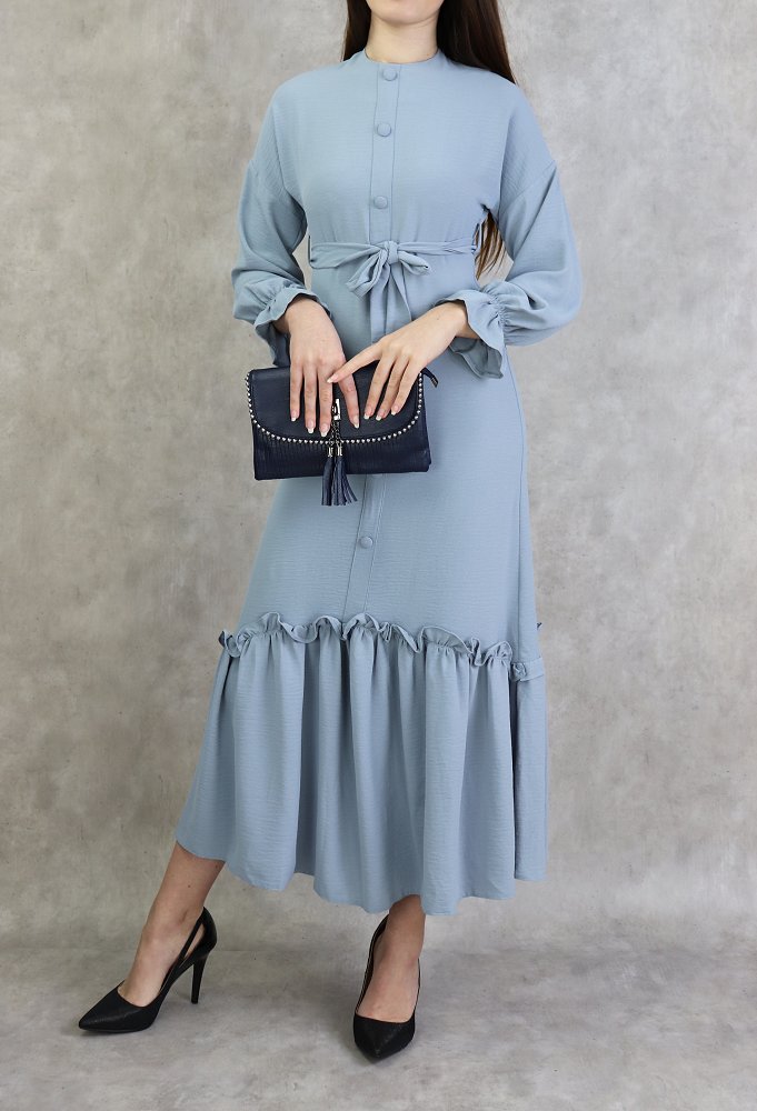 Robe longue à volants pour femme (Vetement Turque Paris) - Couleur Gris clair Vetement & Accessoire