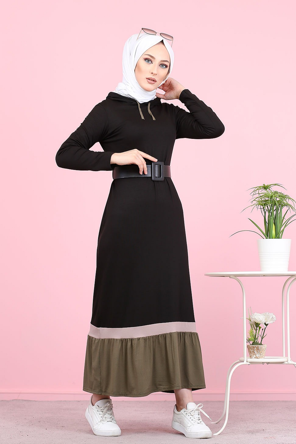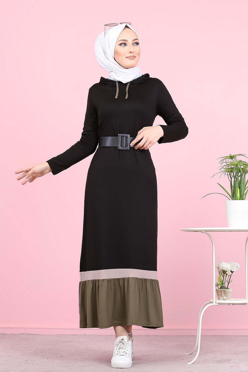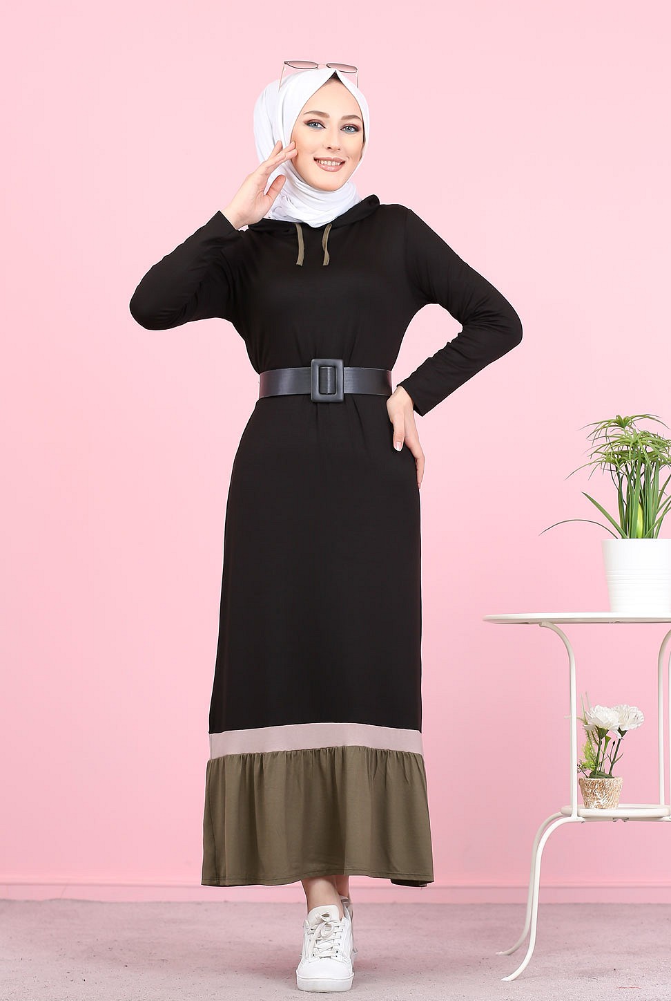 Robe longue avec capuche style Urban moderne (Vetement pour femme voilée) - Couleur noir et kaki Vetement & Accessoire