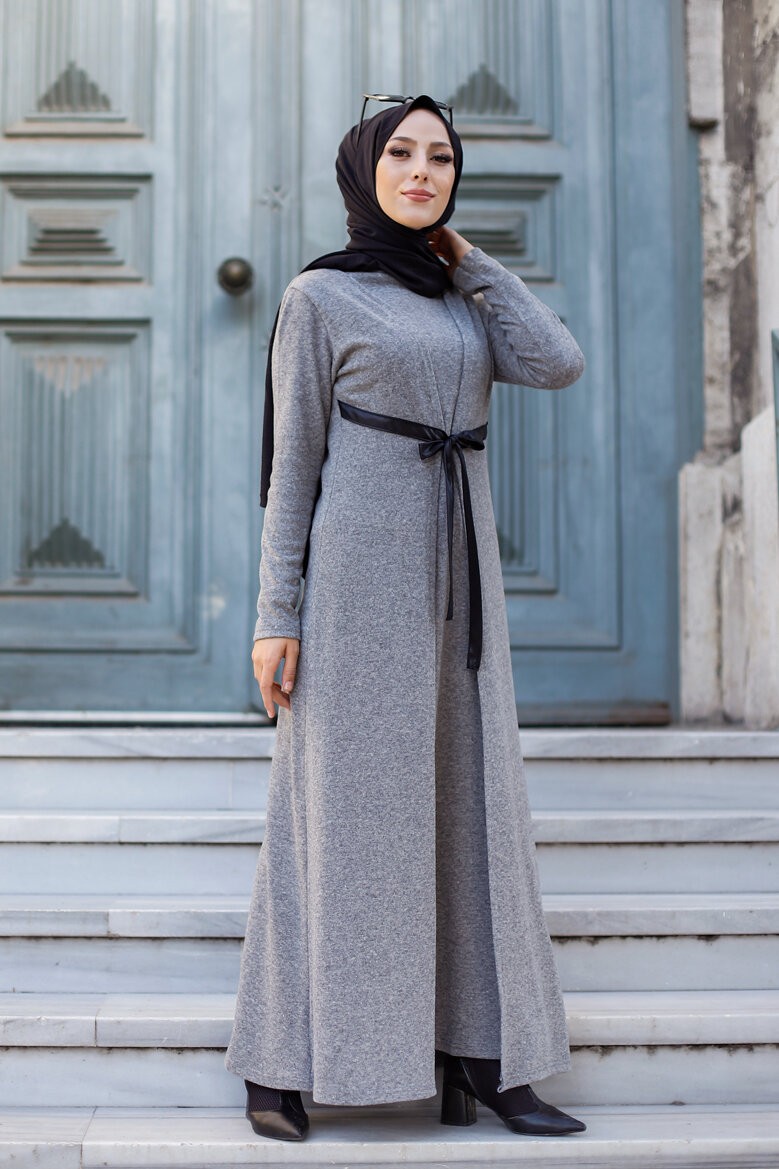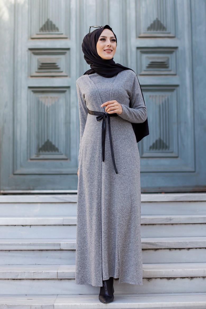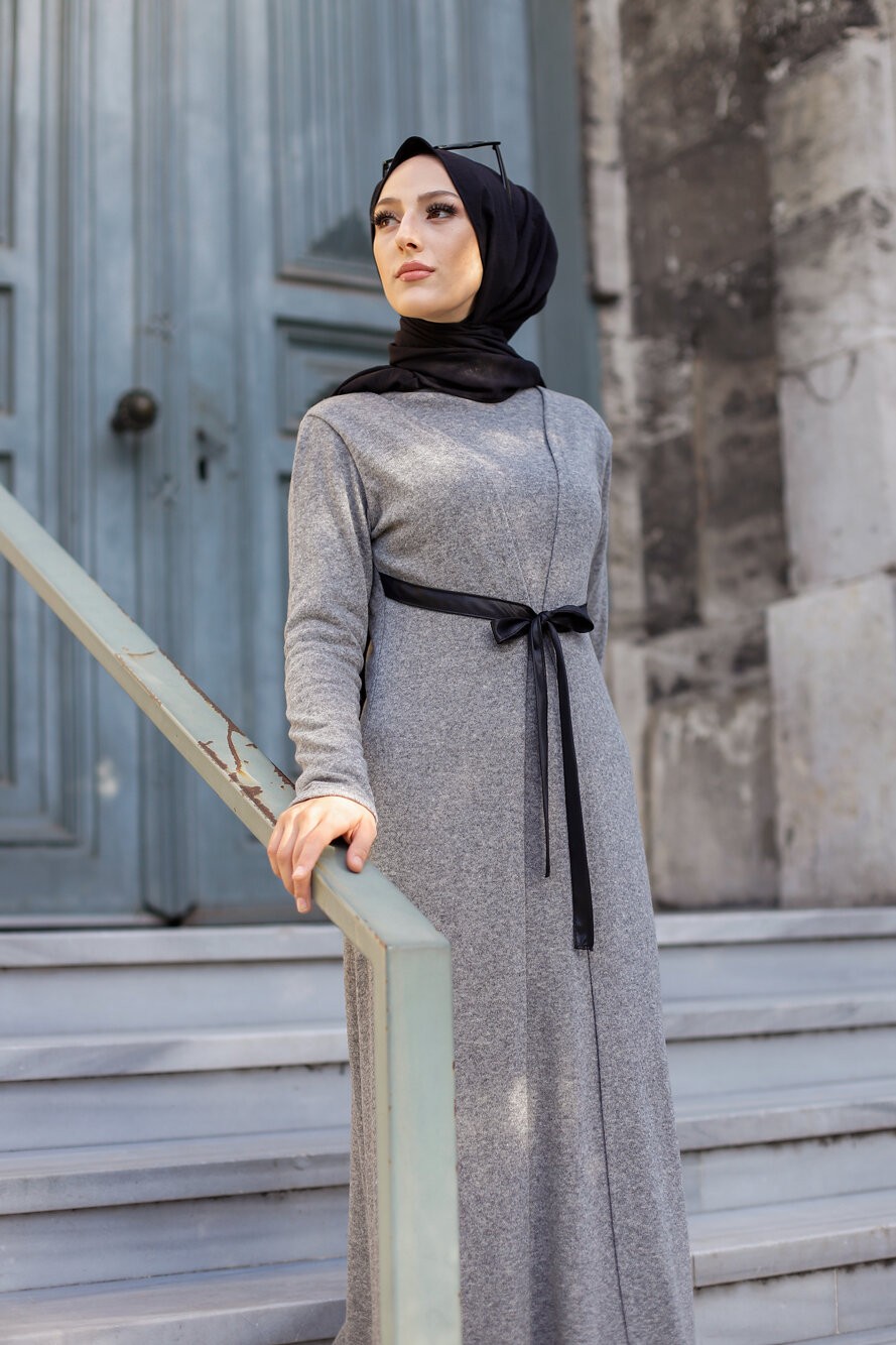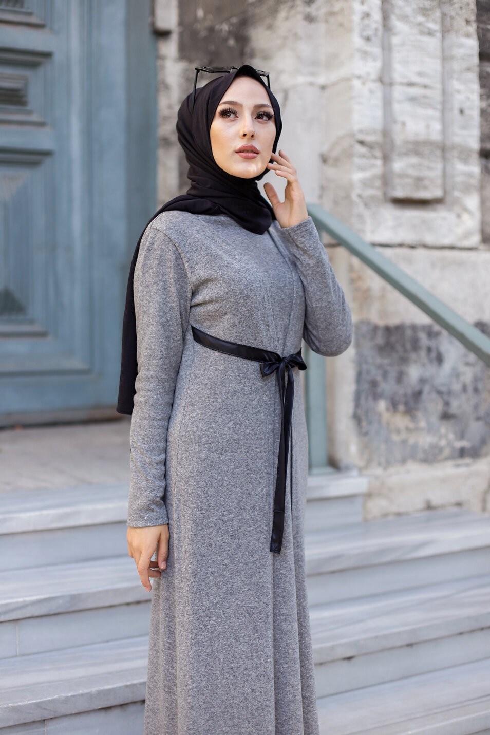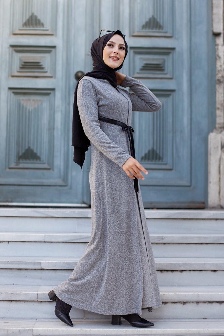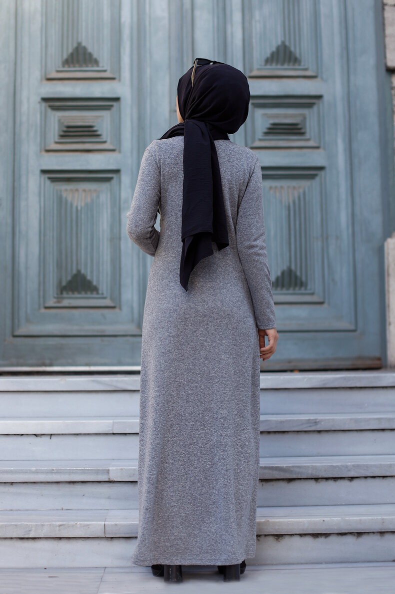 Robe longue look décontracté pour femme musulmane (Vetement hidjab pas cher) - Couleur gris clair - REF. 32528 (19.90 €) - En Promotion à 16.90 €
