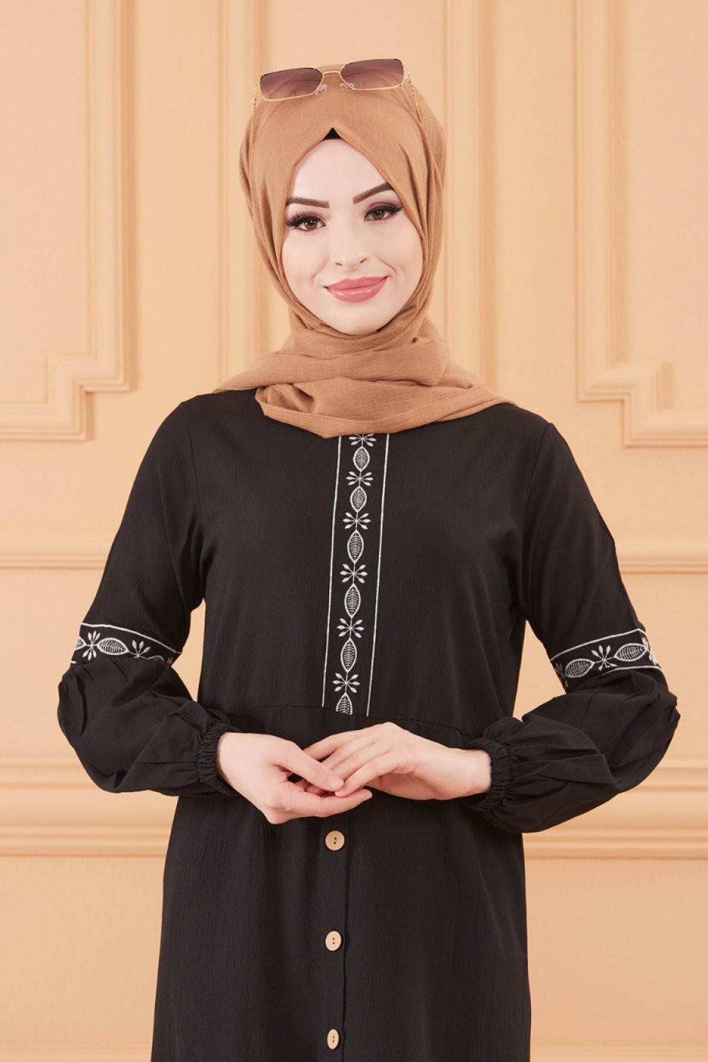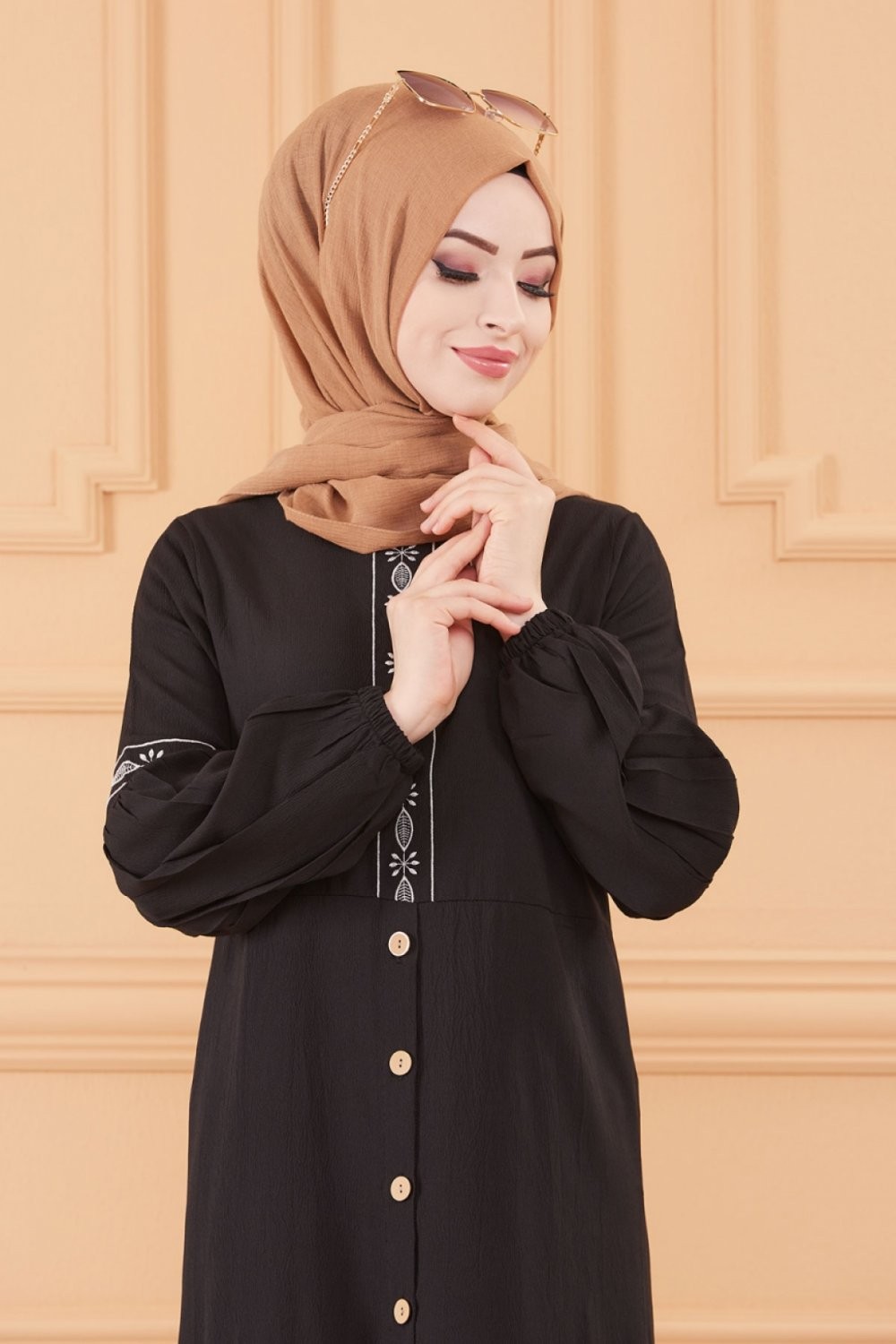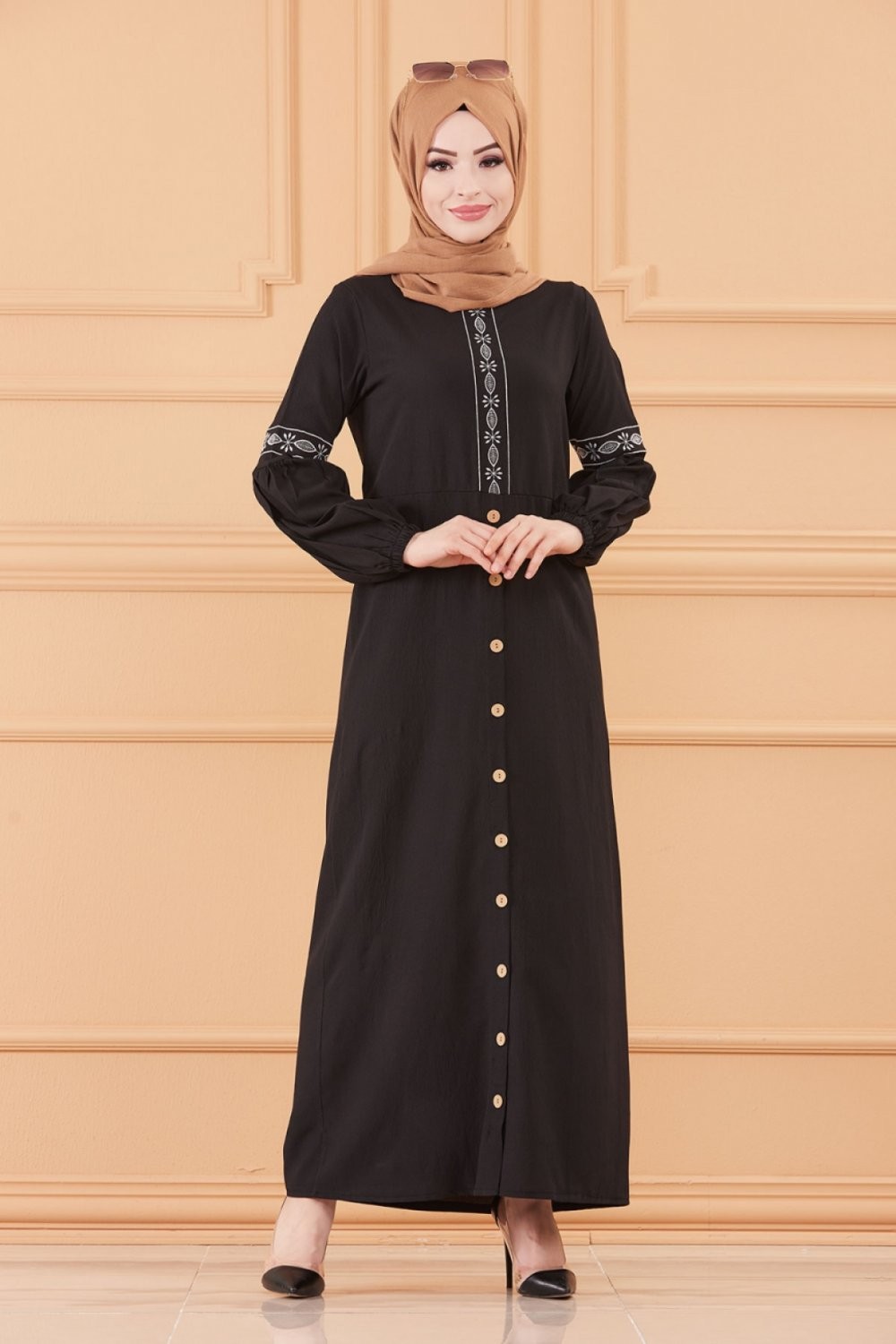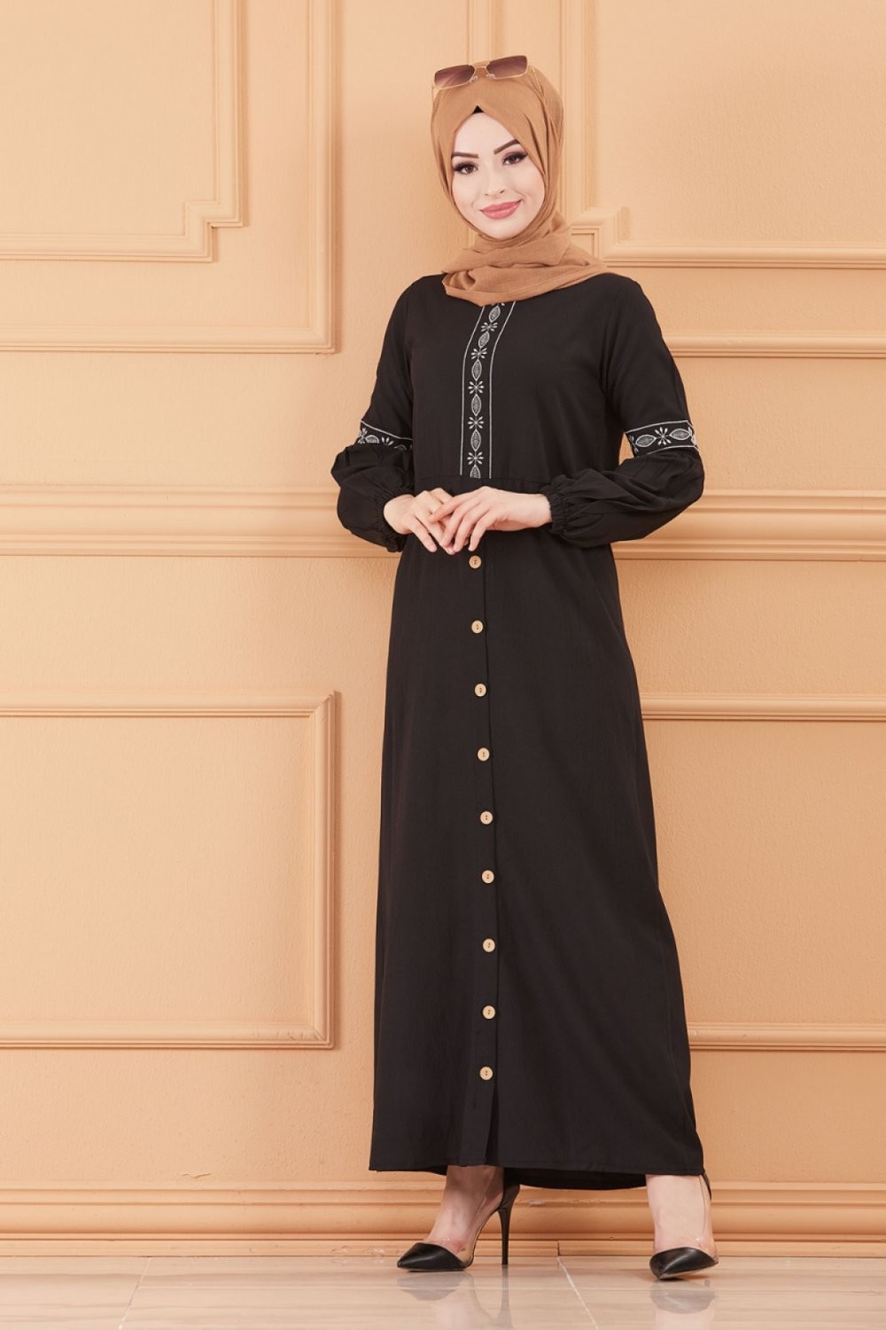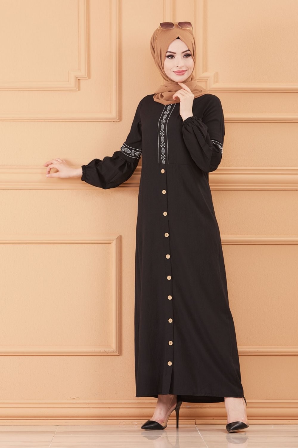 Robe longue brodee pour femme musulmane (Modeles de Robes Style Classique pour Hijab 2025) - Couleur noir